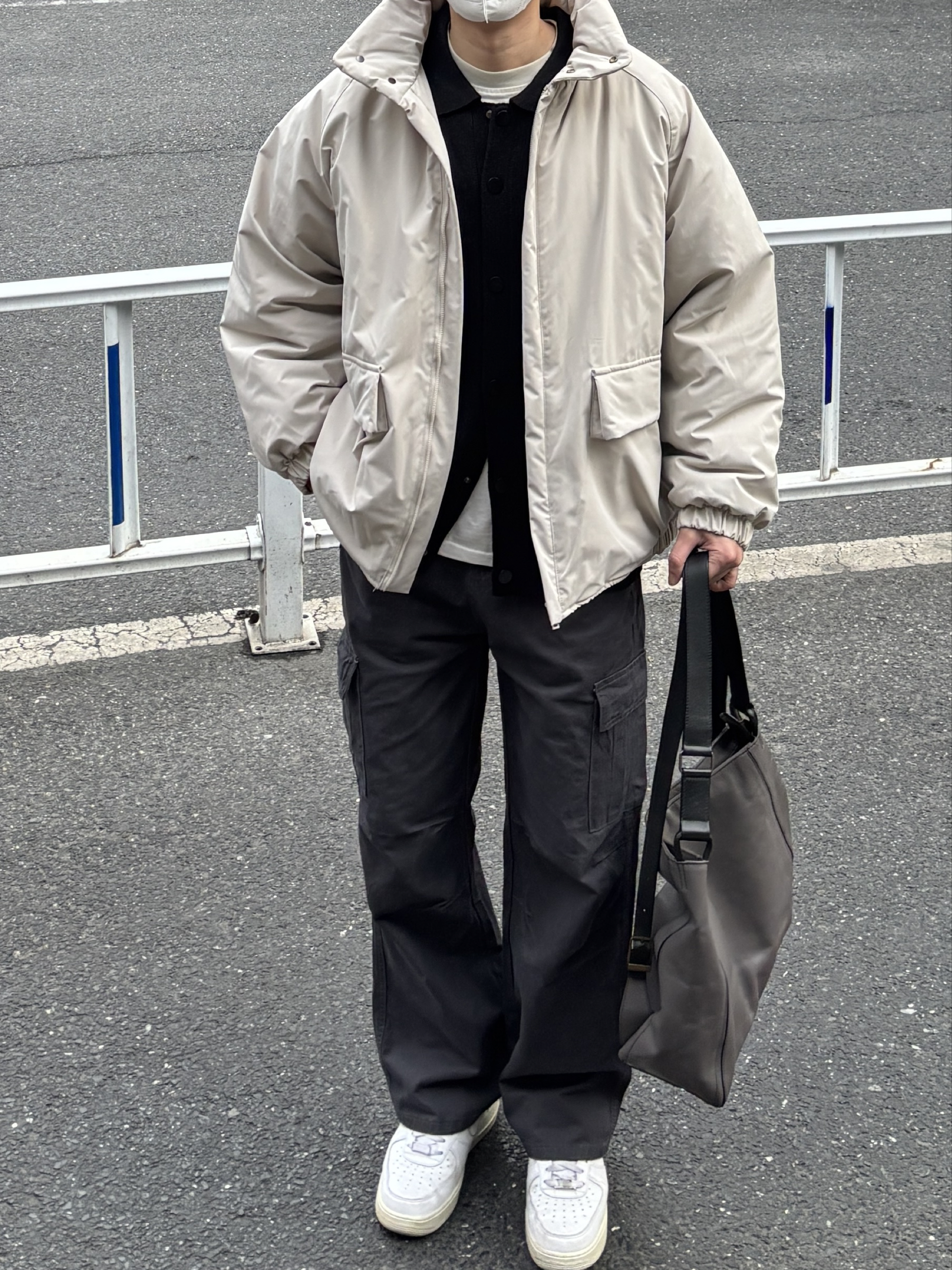 冬天只喜欢简简单单的黑白灰搭配,那今天这套look直接搬🙋♂️ 米白色立领棉服是冬季实用主义首选,宽松版型叠穿无压力。内搭黑色针织开衫+白色基础T恤,层次分明应对室内外温差,通勤上学随手一穿就很利落。 下装选深灰色水洗工装裤配白色板鞋提亮整体,灰调配色冬天穿不沉闷。 基础款叠穿+低饱和配色,不用费力思考搭配,简单一套出门就松弛感满满✌️ - 今日搭配 衣服裤子:NICE LILI 鞋子:AF1纯...