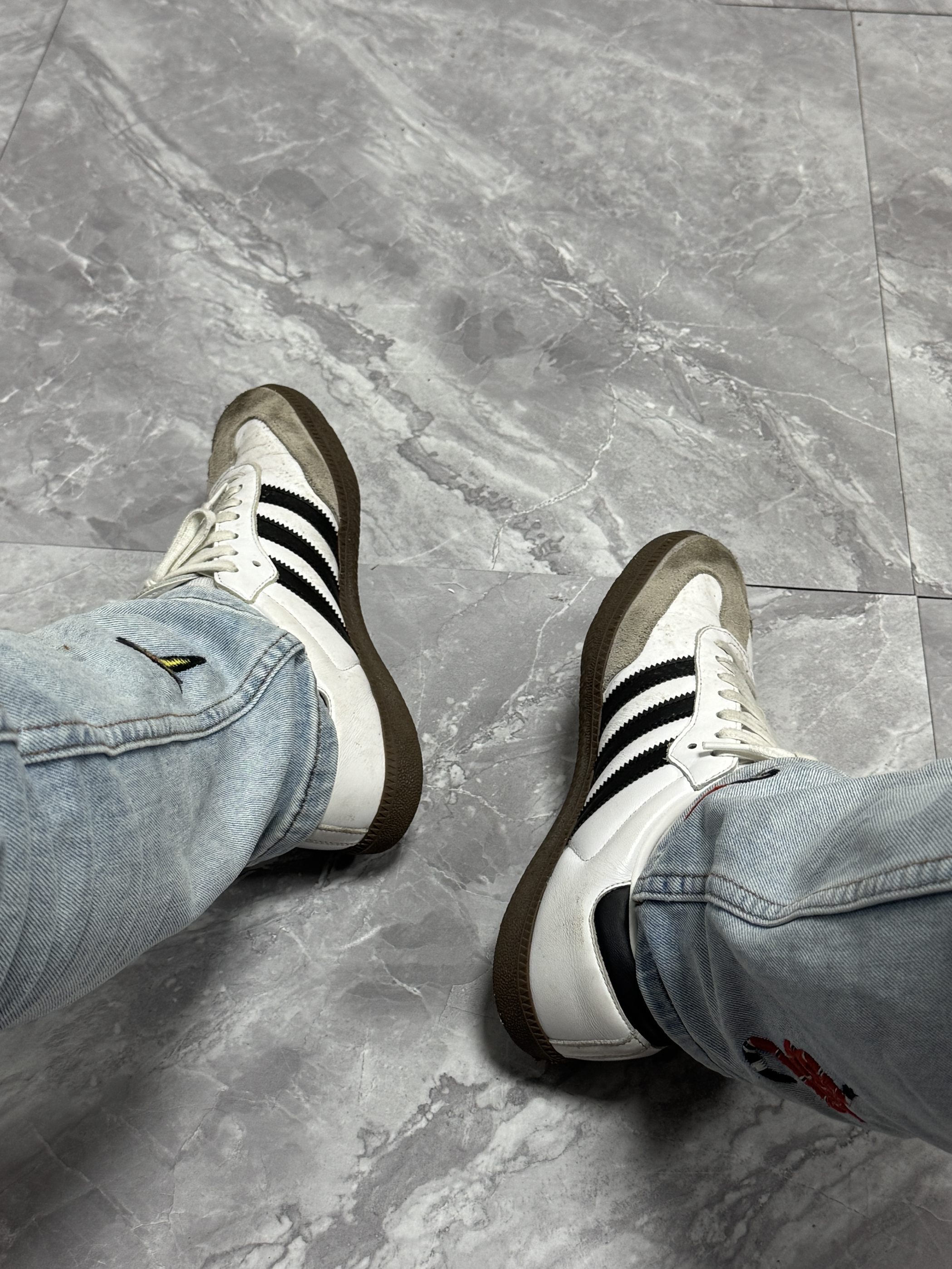 分享一款购入后穿了半年的一双“adidas SAMBA OG”,一双低调且奢华的鞋子,这半年来它大部分占据了我的通勤日常,我对于它最大的感觉就是“舒服”,这款鞋前面的麂皮虽然很贴,但是它不挤🦶,我属于是大脚掌的一个脚型,但这款鞋可以很恰当的包裹着,没有紧绷感,侧边还有一个金色“SAMBA”logo,非常恰当的一个点缀,这款鞋不管是日常搭配牛仔裤、直筒裤、宽松裤都非常的百搭,但我个人觉得!👉束脚裤...