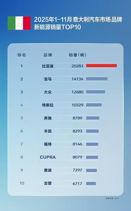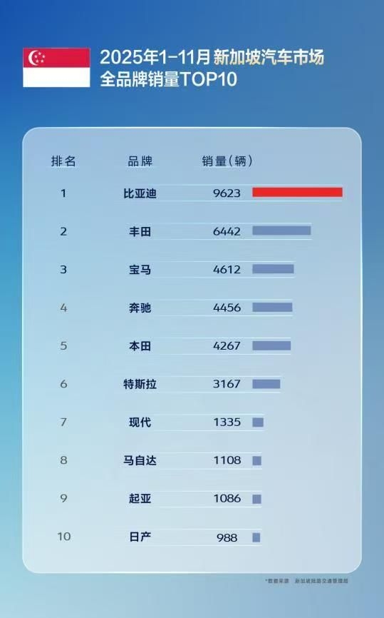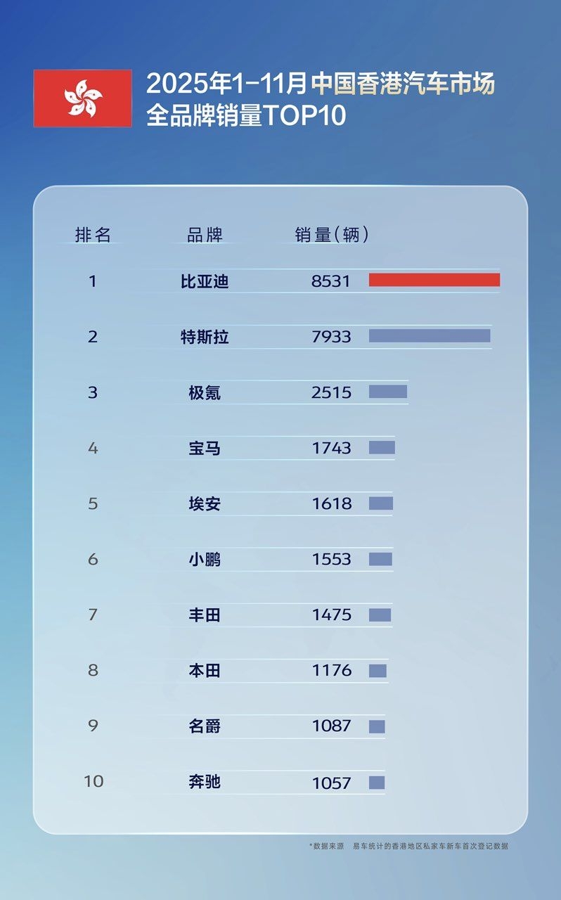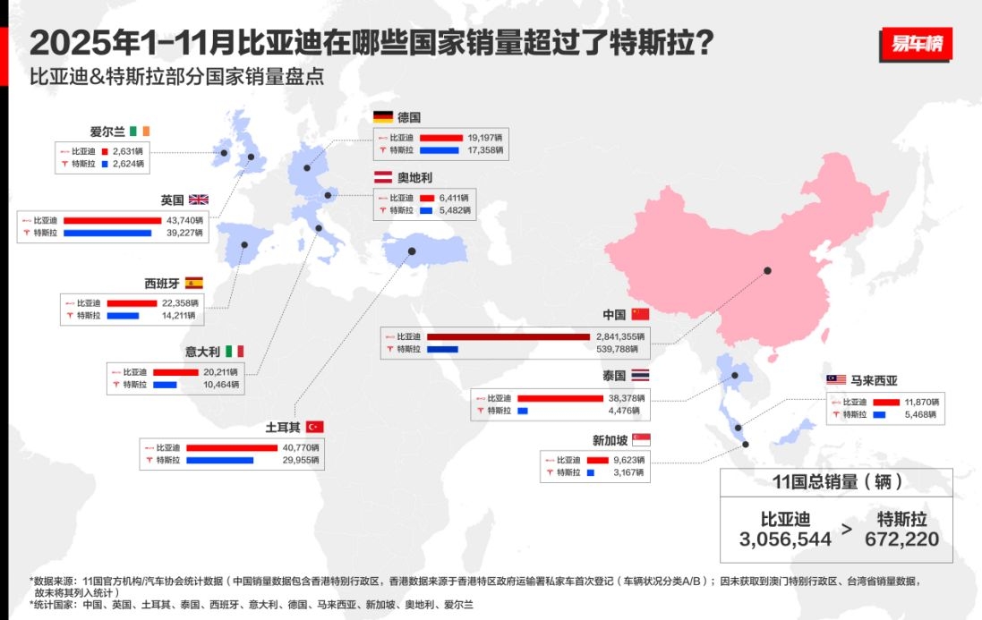 11国超特斯拉,多国销冠全面超越!比亚迪驶入全球引领新阶段 从“中国制造”到“世界冠军”,比亚迪正以惊人速度改写全球新能源汽车格局。2025年1-11月,其累计出口量实现翻倍增长,在巴西、土耳其、意大利等十余国夺得新能源汽车销量第一,更在新加坡、中国香港等地拿下全品牌销冠。多国销冠全面超越,尤其在11个核心汽车市场,比亚迪销量已全面领先特斯拉。 这不仅是数字的跨越,更是战略的胜利。通过产品矩阵...