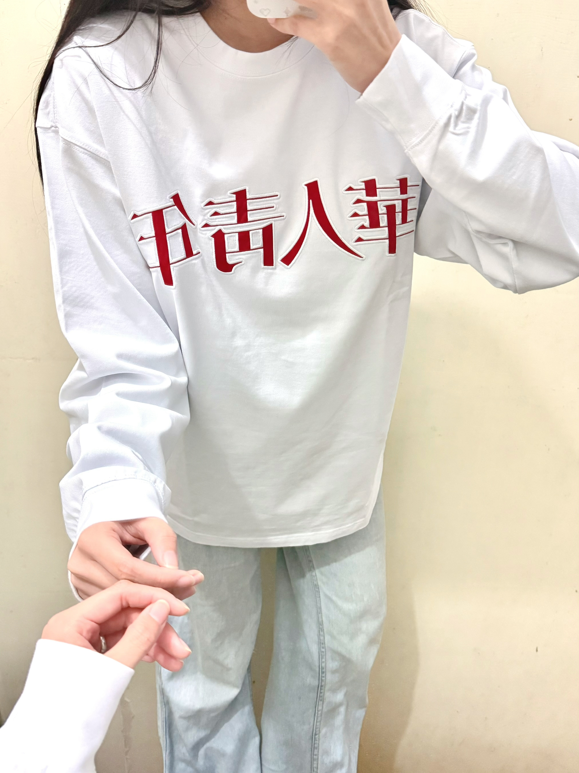166 102穿的是M码 面料很厚实 我里面穿了黑色打底也不会透 胸前还做了一个贴布的刺绣 感觉更加精致了嘞 喜欢的宝可以参考一下哦 我是搭配牛仔裤穿的
