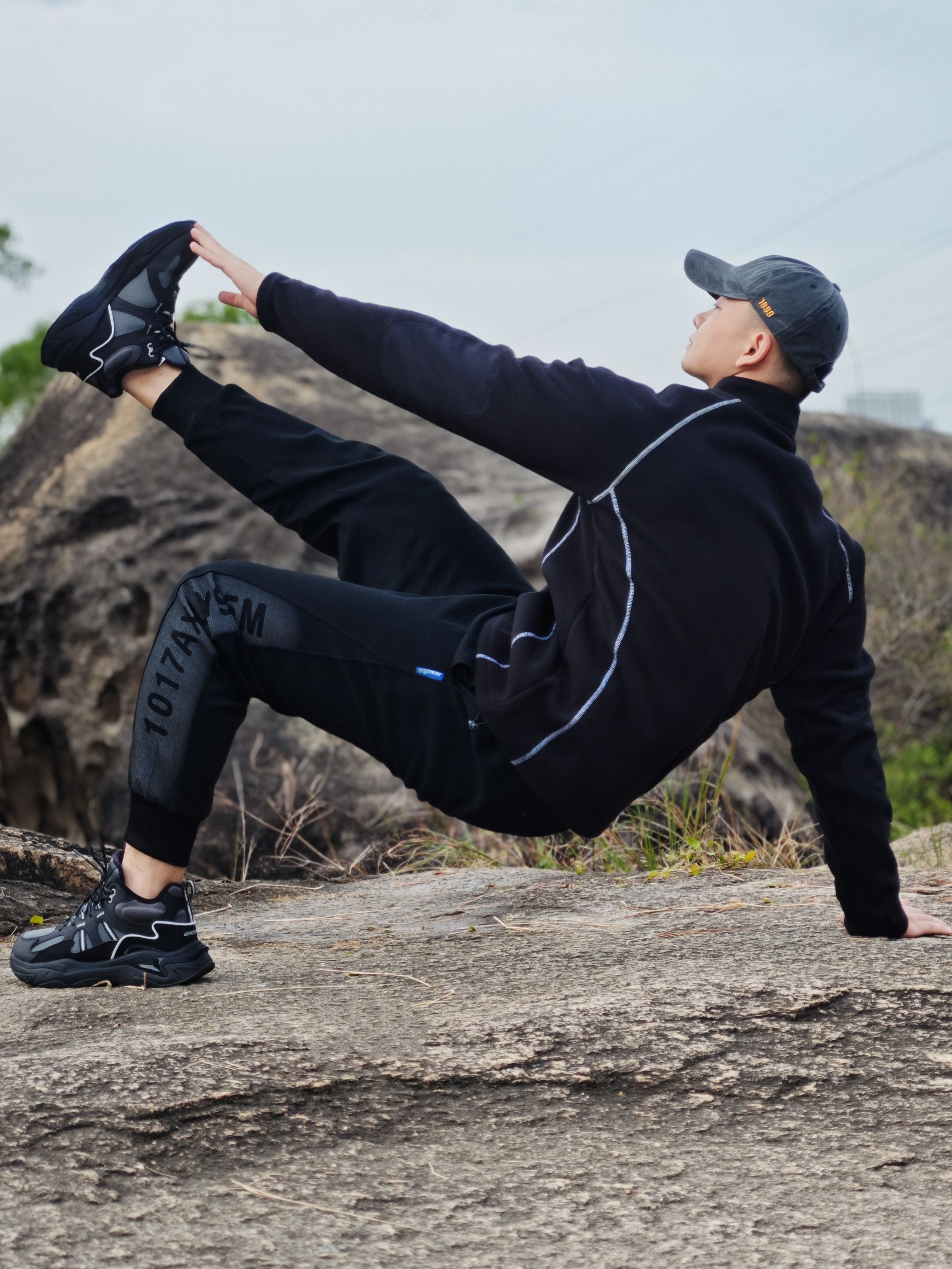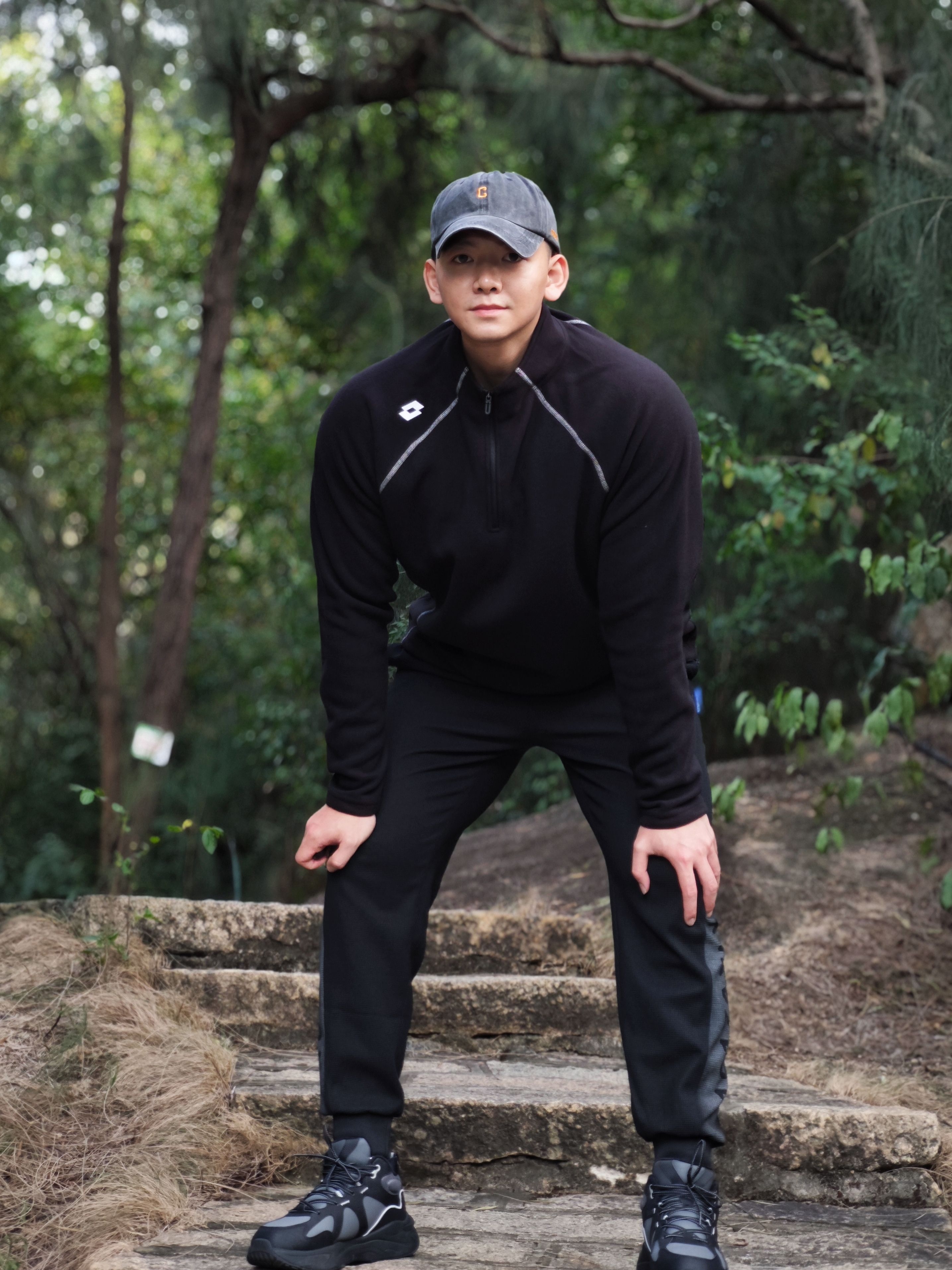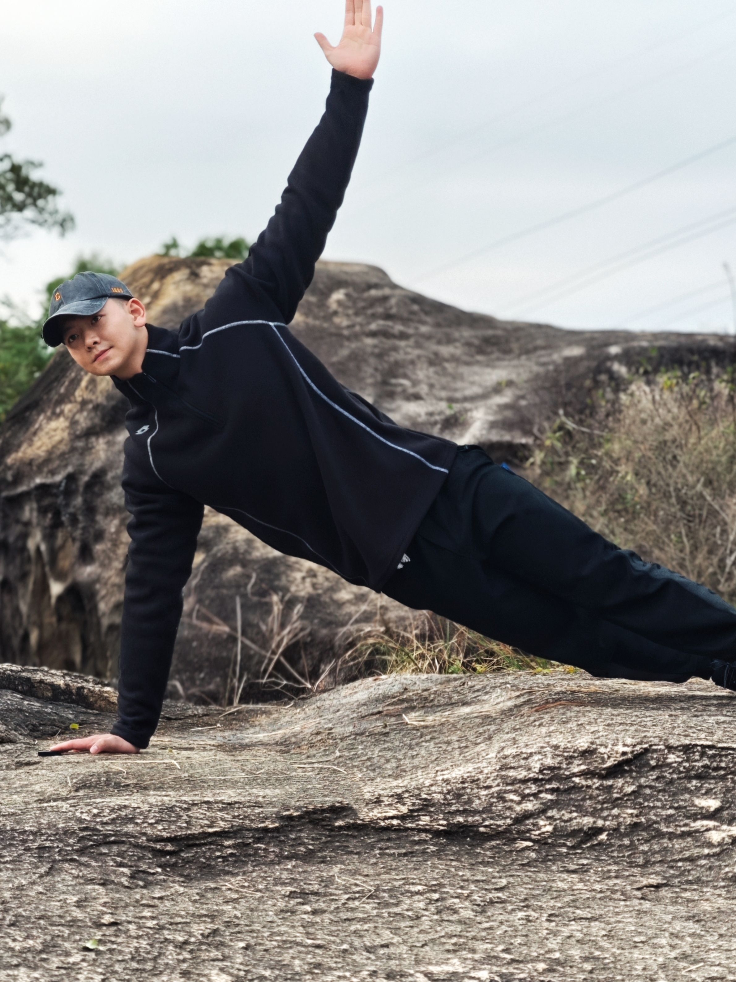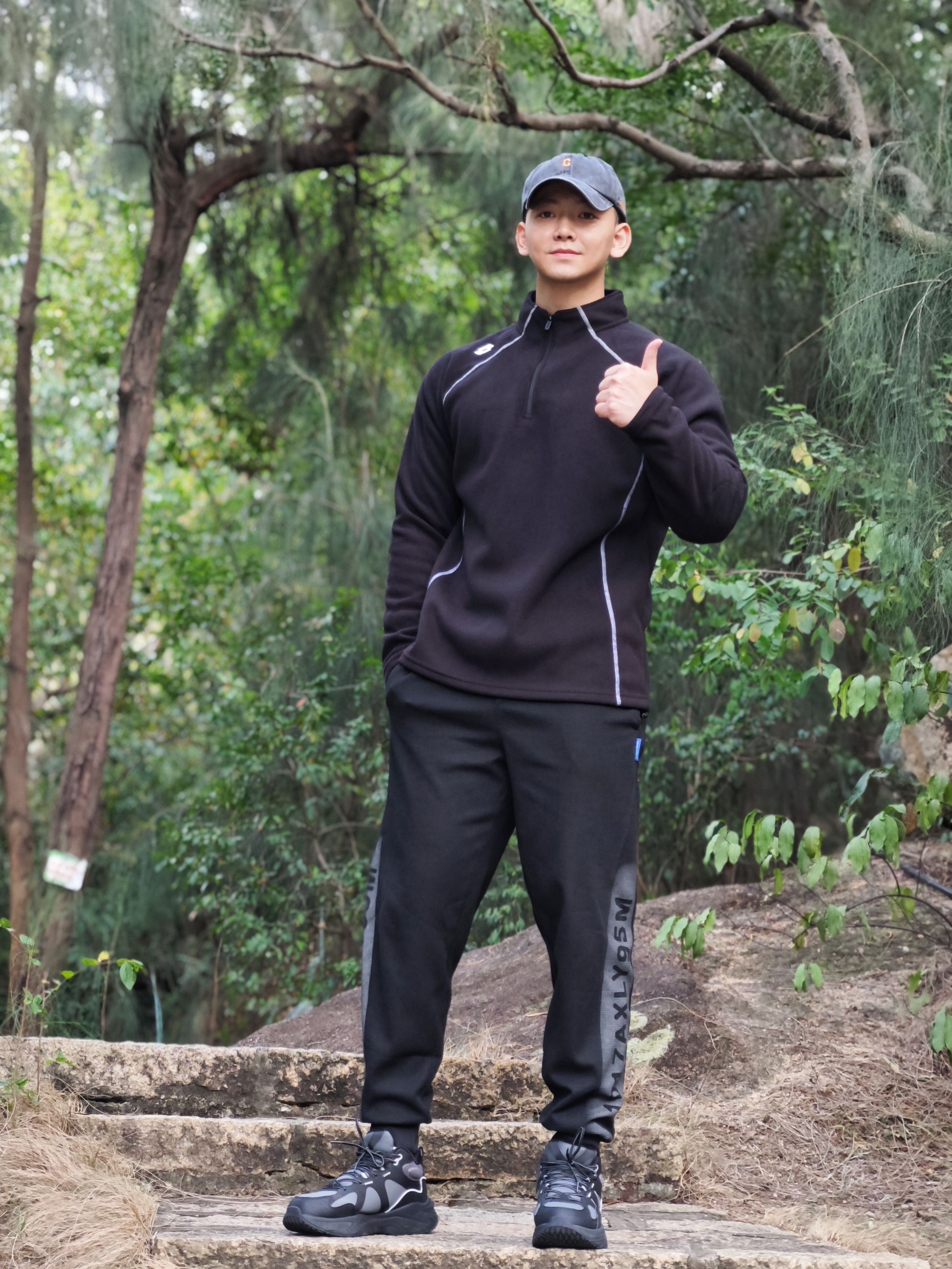 今天爬山穿了这件LOTTO户外系列的黑色抓绒衣(我175cm/75kg穿XL码刚好合身),山顶风大,正好测试下它的防风能力。 衣服的保暖效果不错,加绒内里在登山过程中没有闷热感,休息时也能锁住体温。立领设计在山顶大风天很实用,拉上一半就能护住脖子。袖口的螺纹收口贴合,活动时不用担心灌风。 在山顶平台做了几组核心训练,衣服的弹性允许手臂自由伸展,没有束缚感。整体剪裁比较利落,作为中间层穿脱也方便...