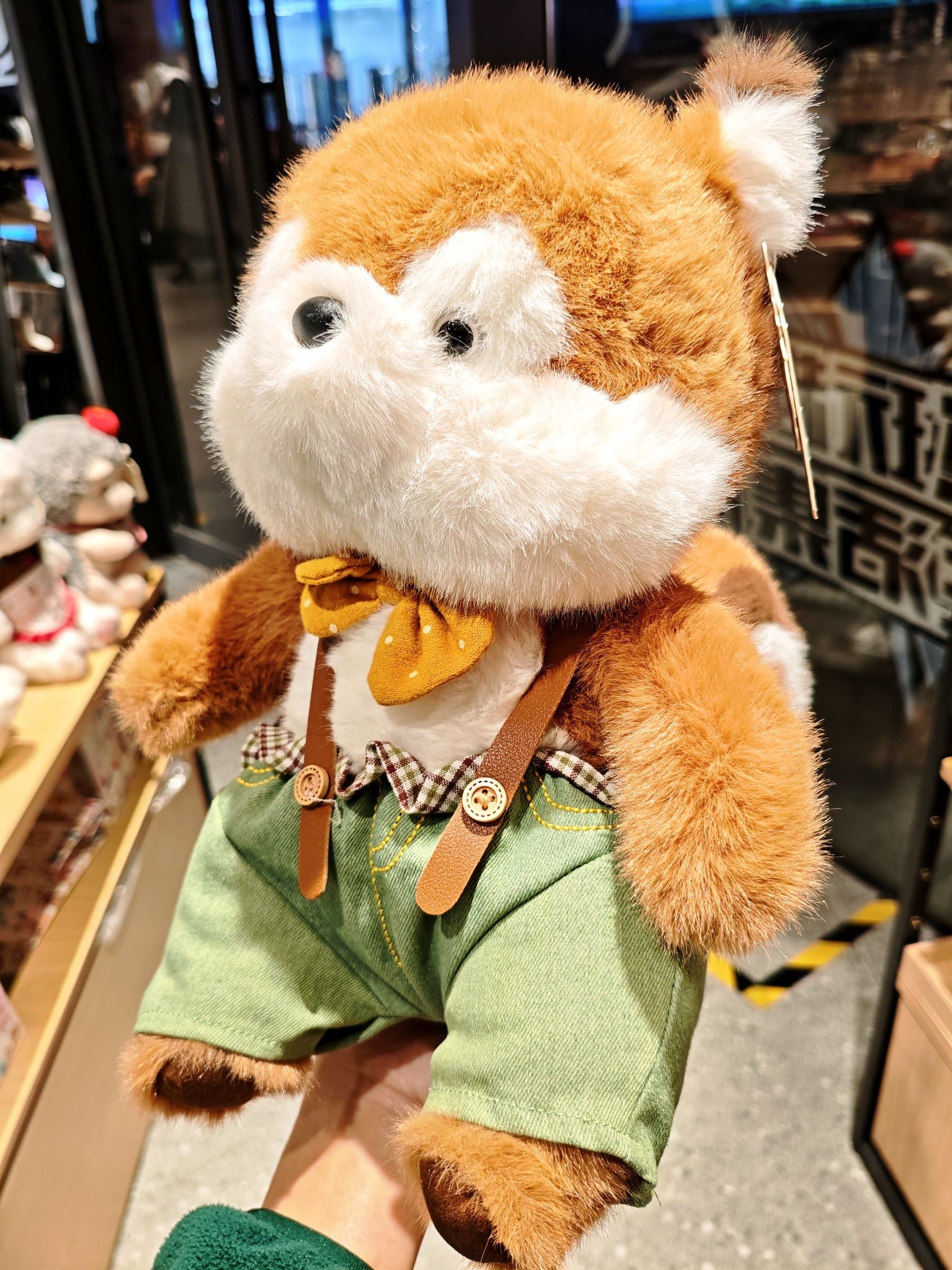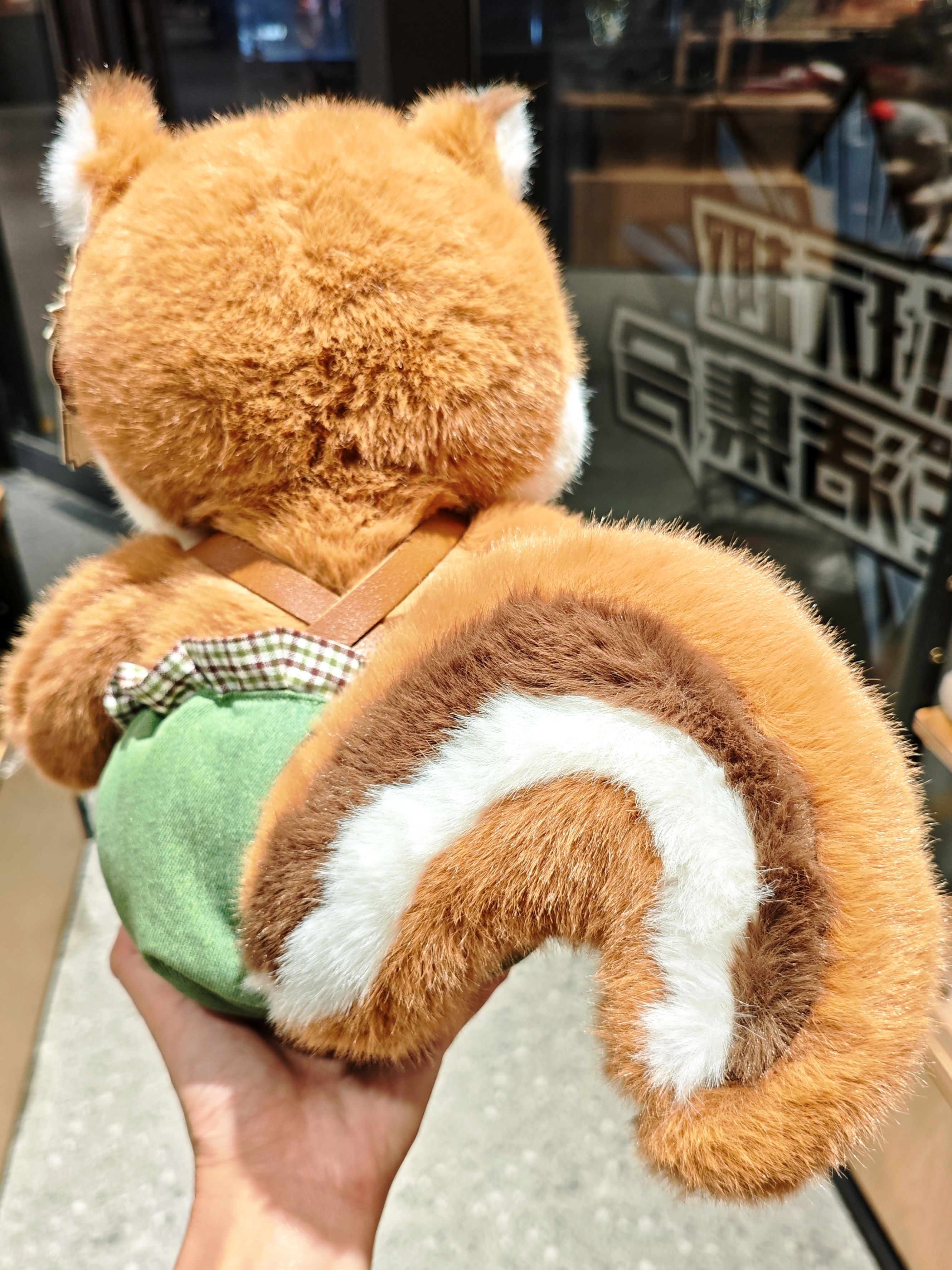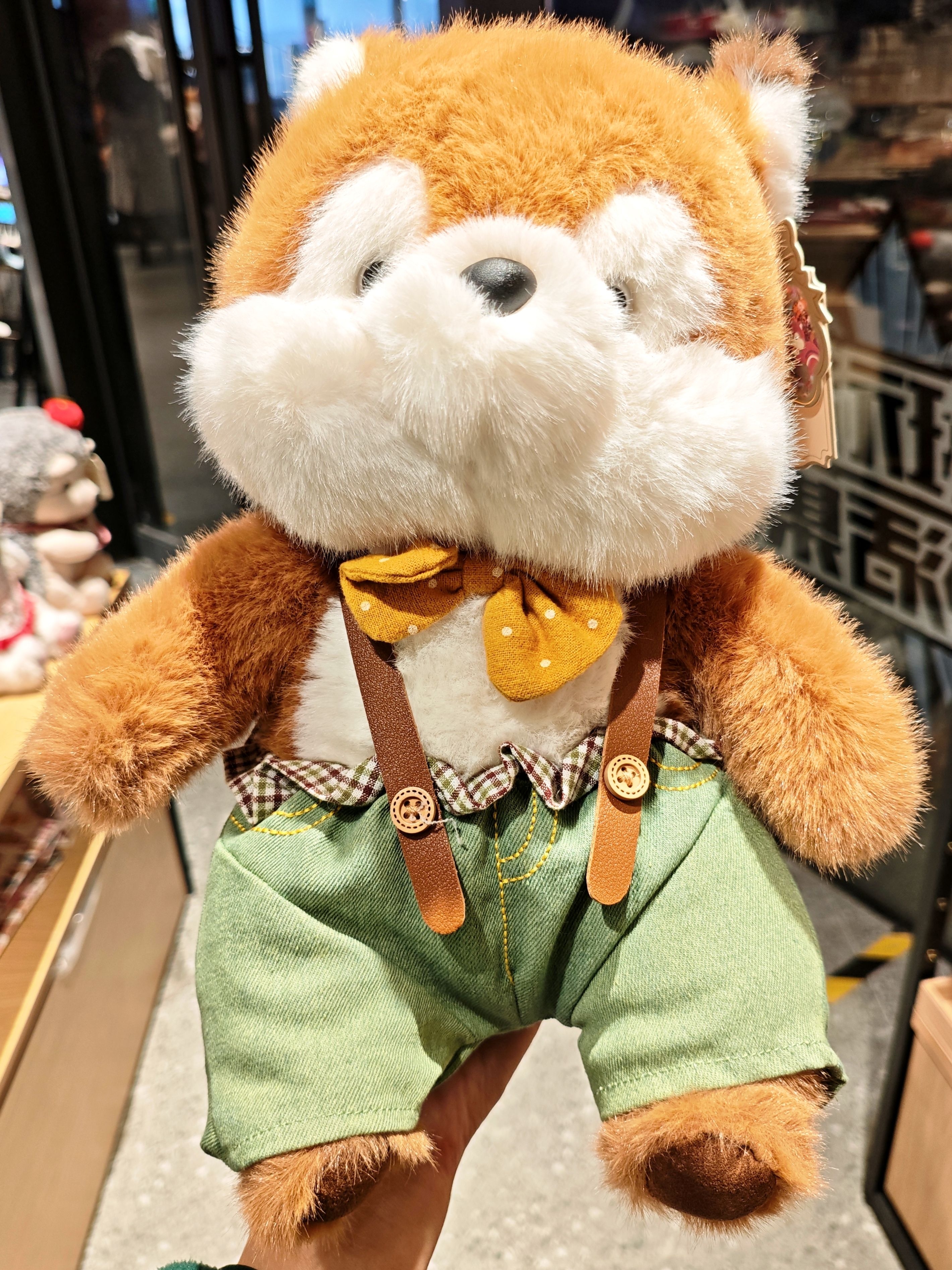 逛店一眼就被这只穿背带裤的松鼠公仔戳中! 毛茸茸的身子配着小领结,田园风穿搭也太精致了吧,果断拿下~