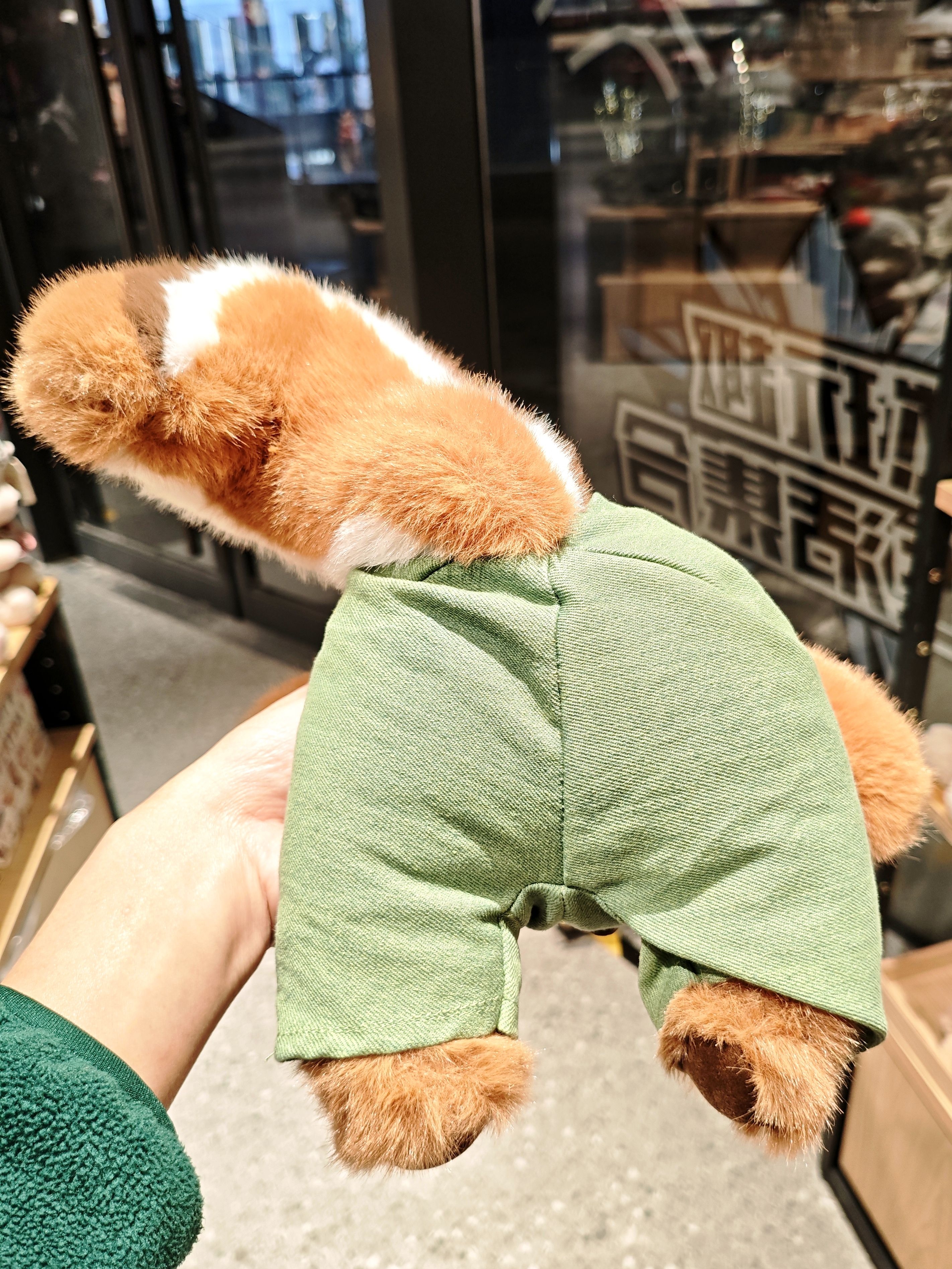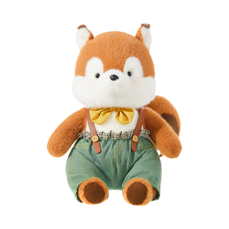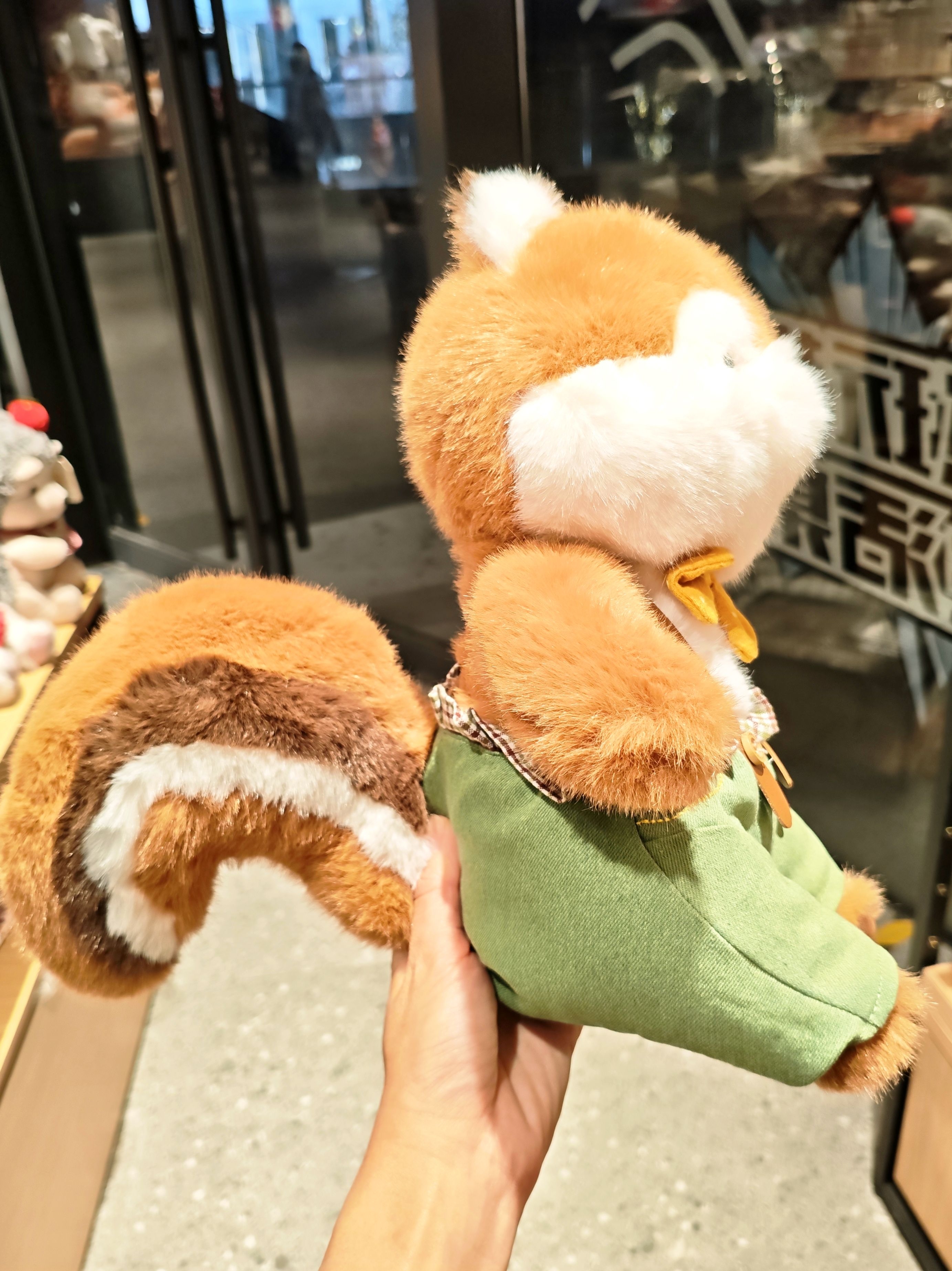 逛店一眼就被这只穿背带裤的松鼠公仔戳中! 毛茸茸的身子配着小领结,田园风穿搭也太精致了吧,果断拿下~