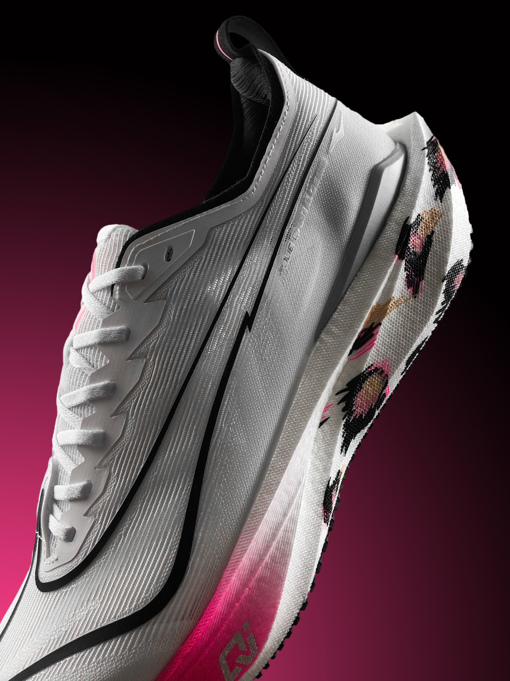 不知有没有朋友和我一样, 第一眼看到这双绝尘5粉鸿豹的时候, 就被它的外观吸引了。 白色鞋身加上亮粉色和黑色线条点缀, 真的特别亮眼!