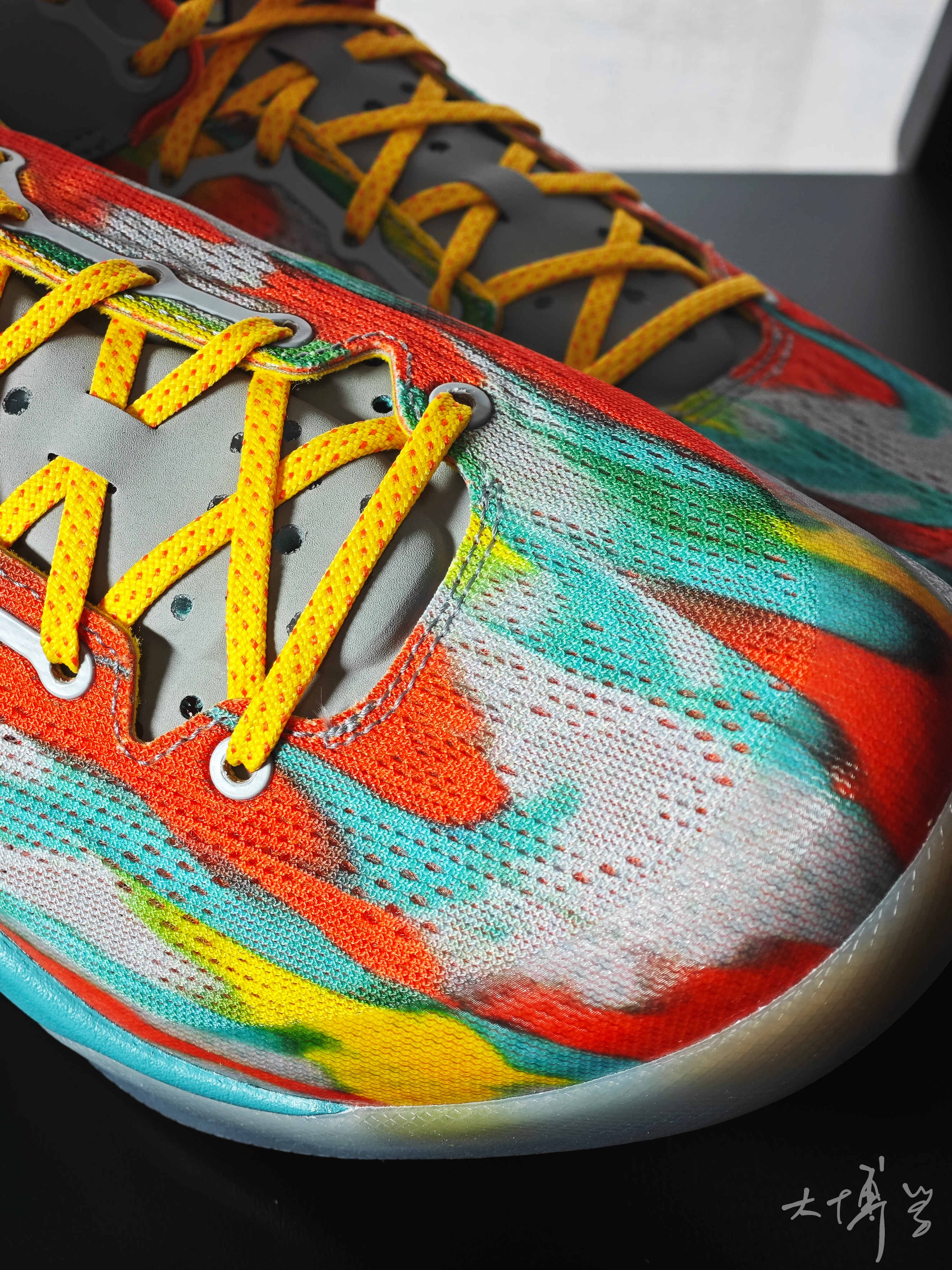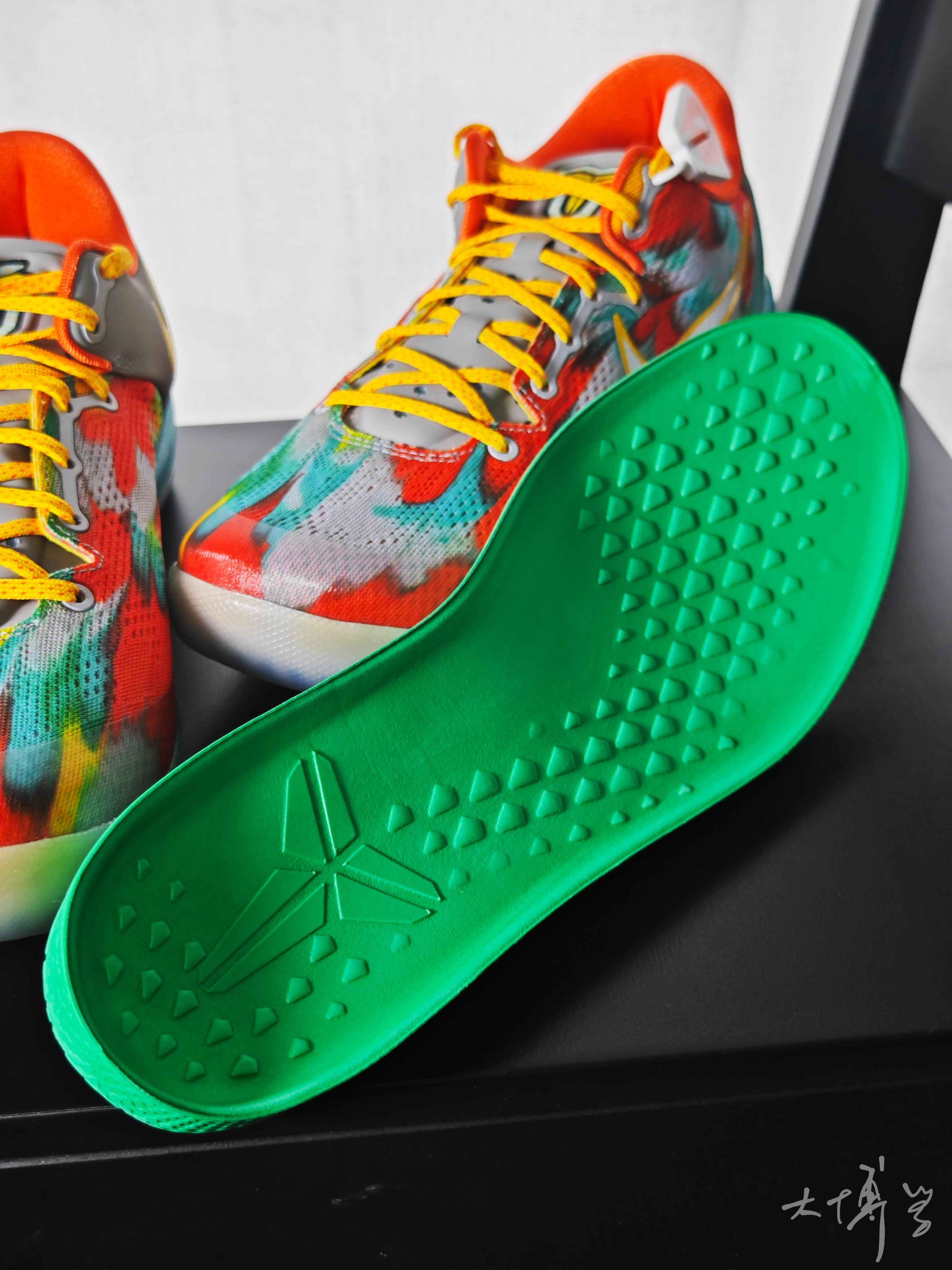 一双复刻的科比8代 花花绿绿的配色我个人很是喜欢 薄鞋舌还是厚鞋舌我对这点没什么执念 react的厚鞋垫脚感不错 后期尝试着自己换换其他鞋垫 其实也挺有趣的 整体做工不错,可以实战