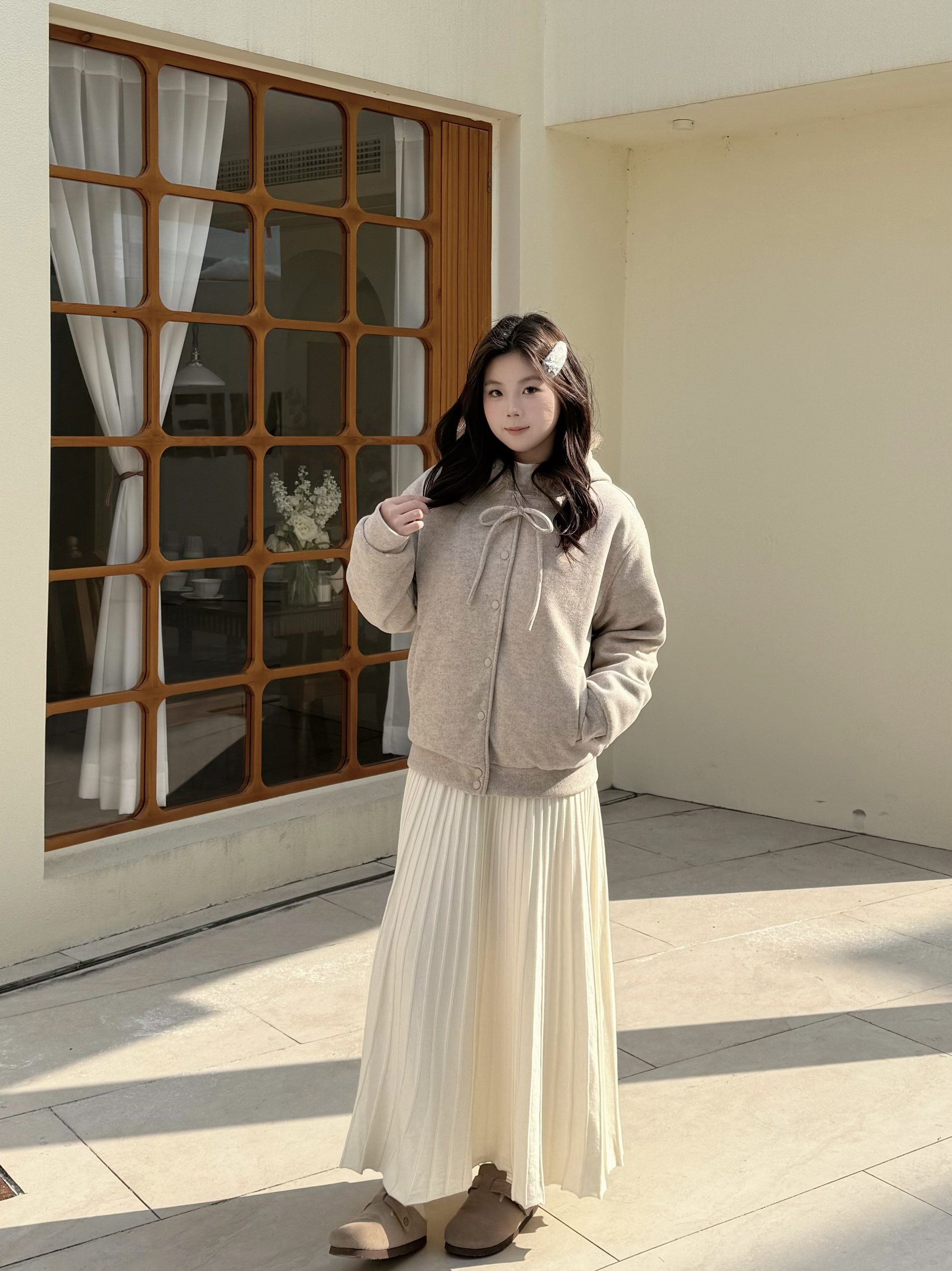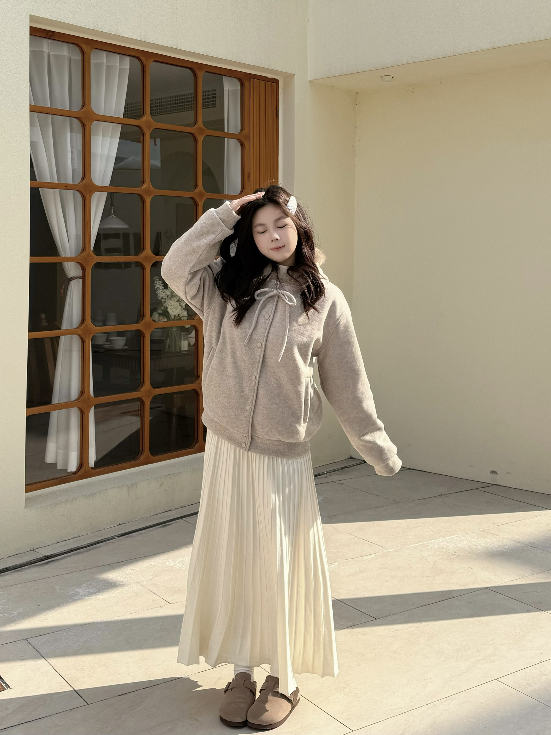 阳光晒得人暖乎乎的 浅棕系穿搭跟冬天的适配度 浅棕外套🧥+杏色百褶裙+勃肯 再点缀一个发夹 松弛又不失温柔