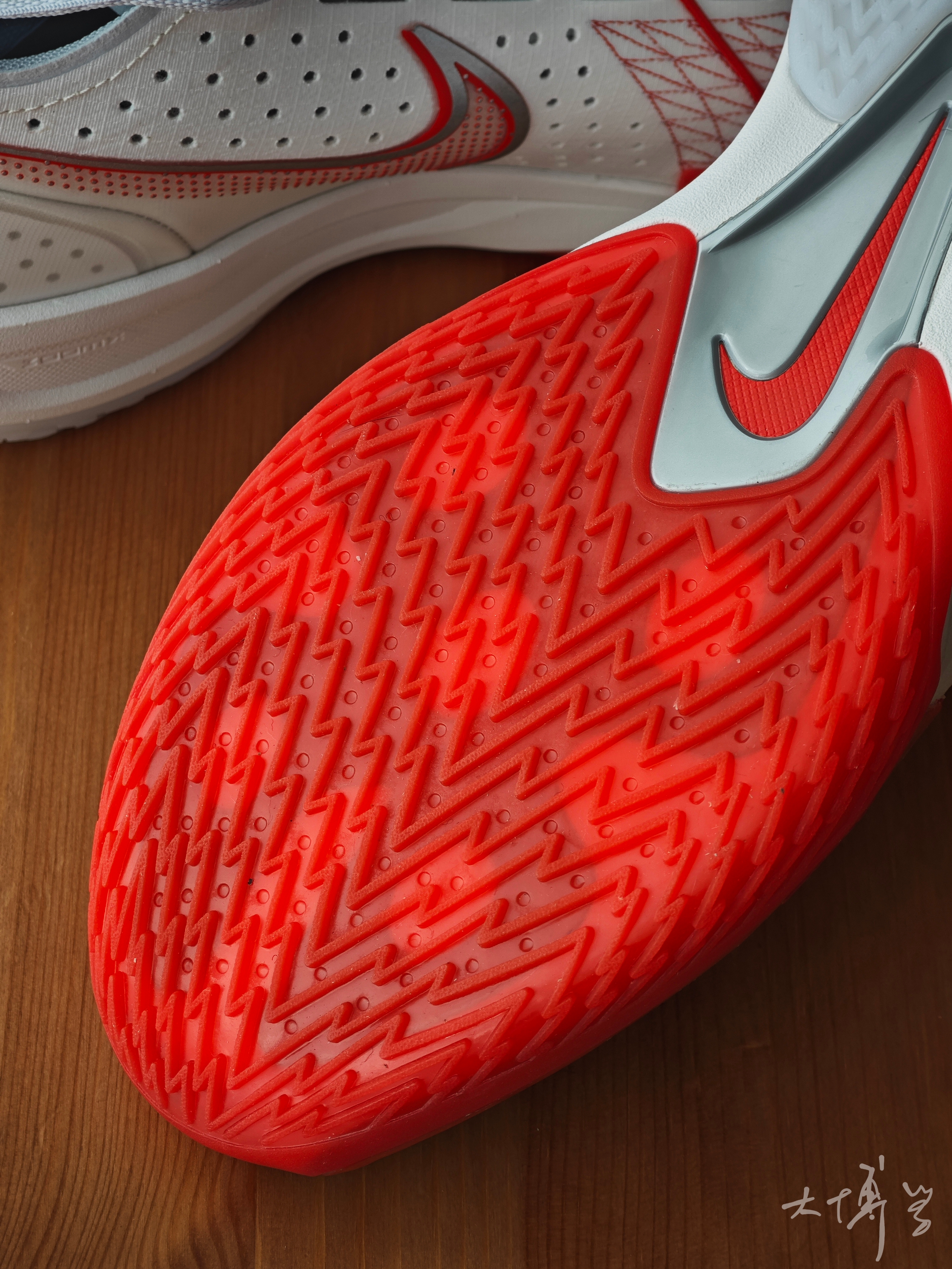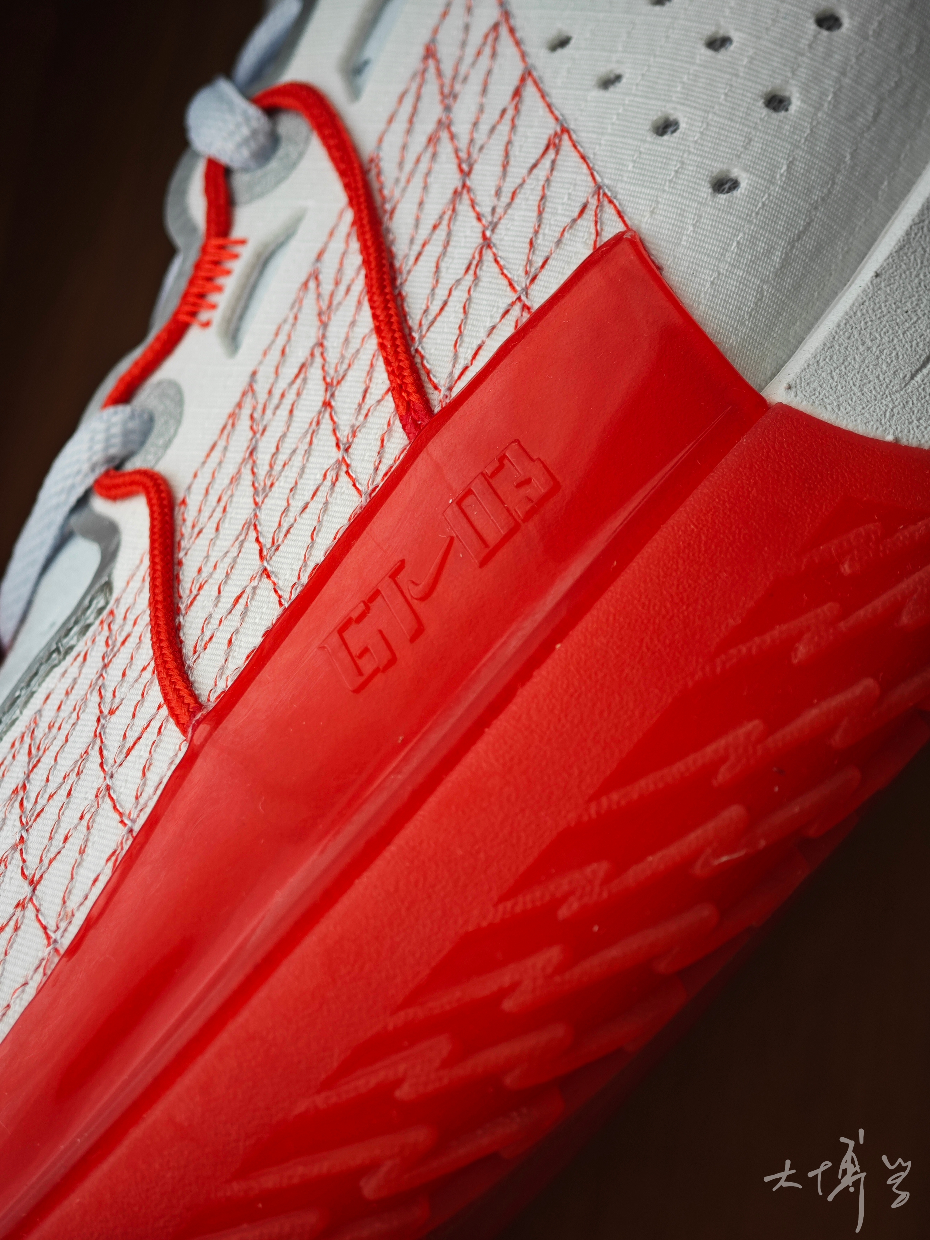 这是gt cut3的首发色 这个红色很喜庆 符合我们的新年配色 最大特点就是气垫取消了 前掌的上翘幅度小了 这几年流行的滚动感 在这款鞋上没什么体现 后跟造型看起来还是很圆 实际体验我觉得很稳 鞋头和鞋舌大部分做成了一体 鞋舌也类似跑鞋设计