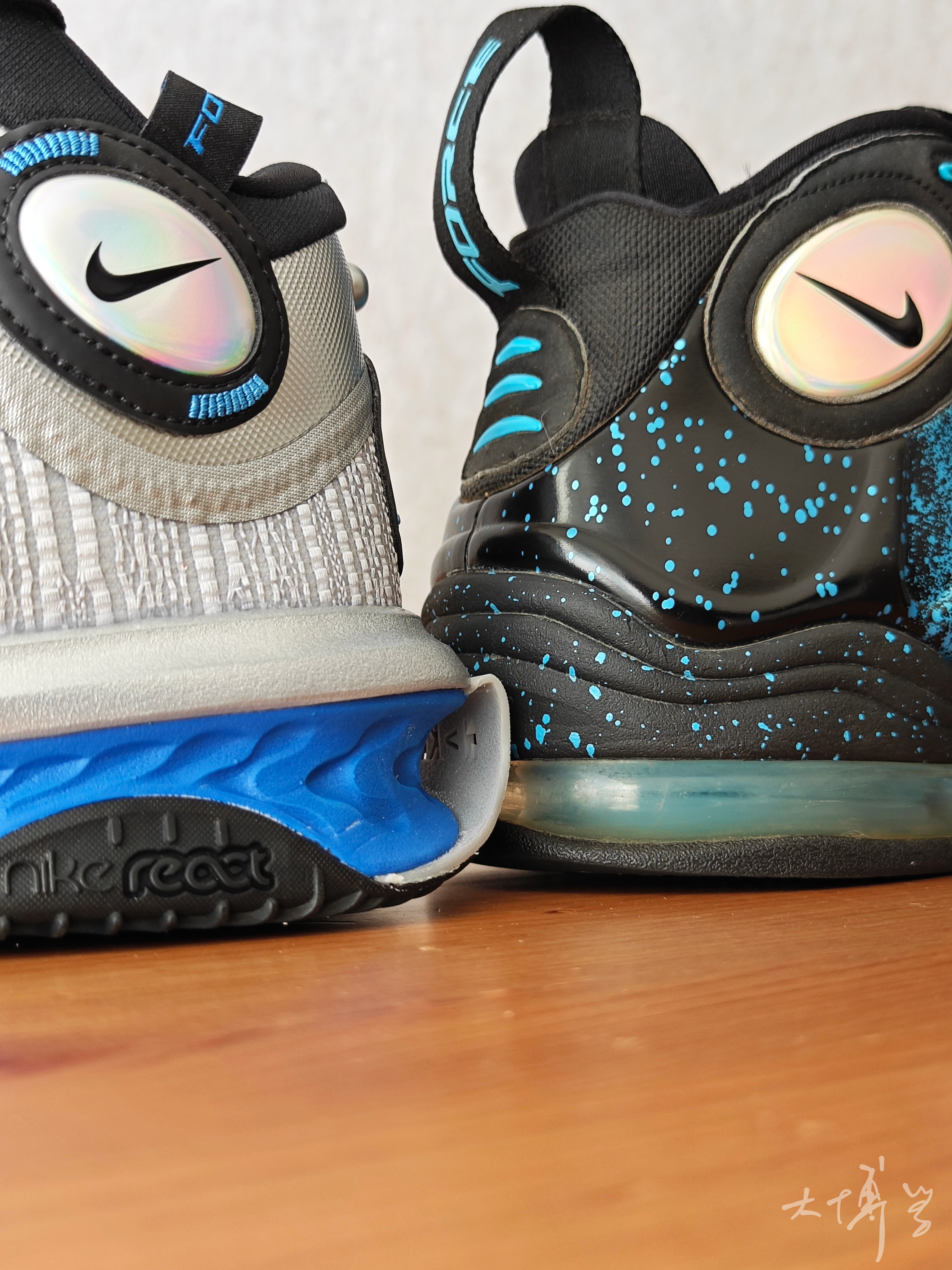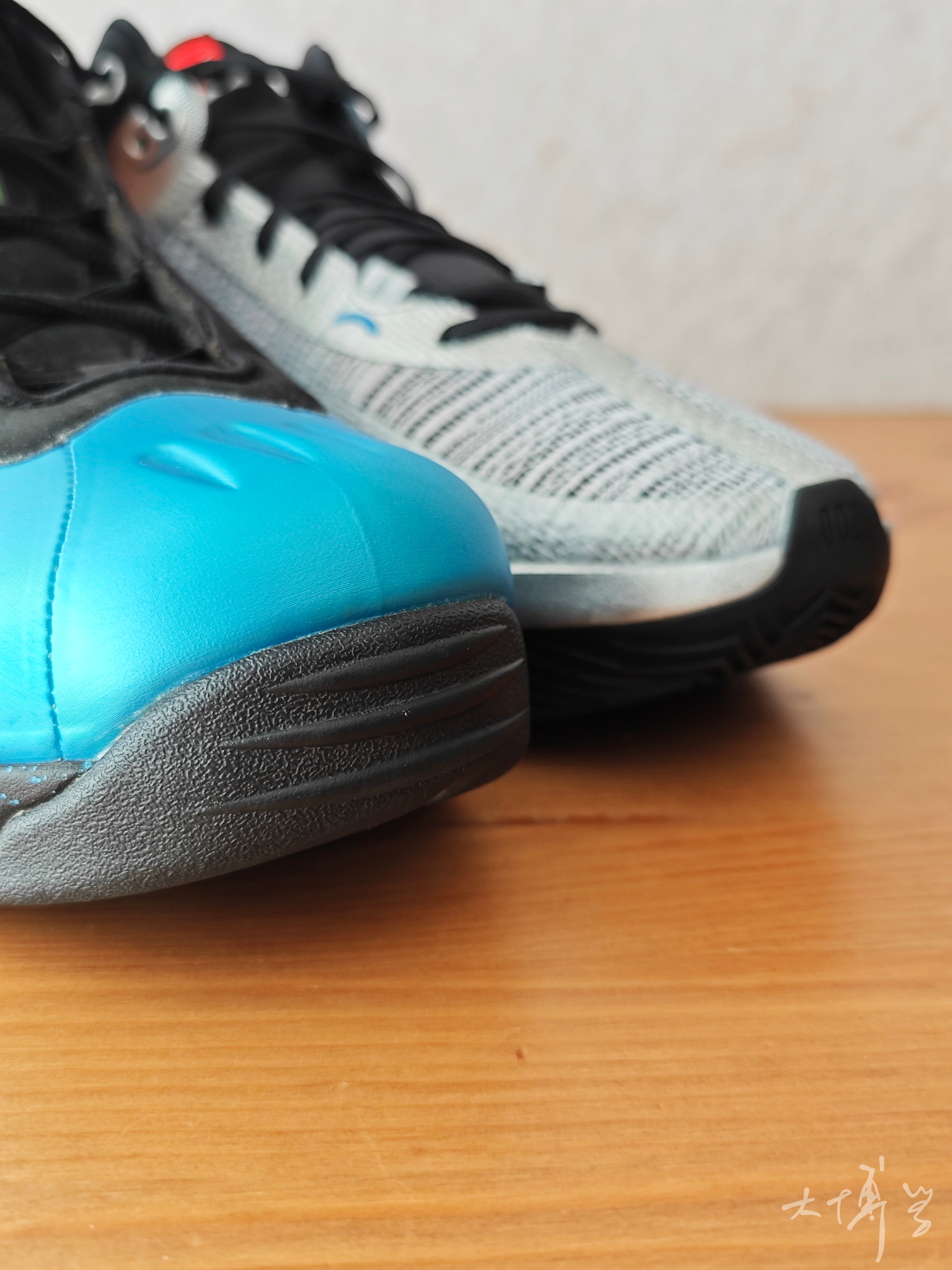 两款“年龄”差了二十多岁的篮球鞋 如今以一种特殊的方式见面了 (当然我这双蓝钢铁并不是98年产的) GT系列致敬老鞋这几款我觉得都很有创意 钢铁在当年不论外观,配置,价格都是绝对的统治力 这双jump2的鞋面上用了很多钢铁的元素 这是致敬式的设计,我很喜欢