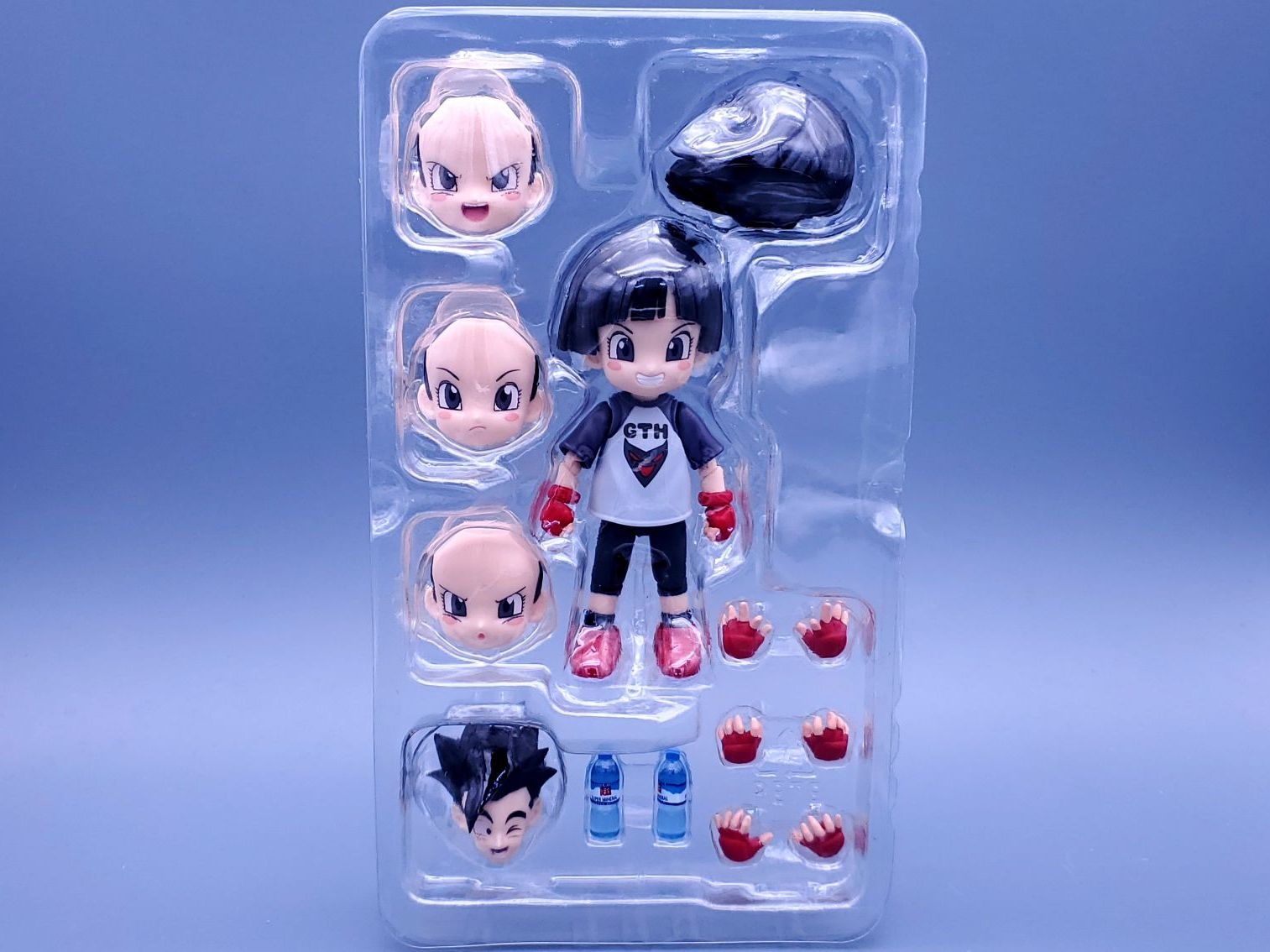 万代shf龙珠剧场版超级英雄-小芳,发售于2023年5月,这款小芳尺寸很小大概7厘米左右,面雕有严肃脸,微笑脸,呐喊脸,喝水脸4种,还有个超级英雄悟饭眨眼头,配件附带了2瓶矿泉水可以和悟饭互动,想收齐超级英雄角色的可以入手。