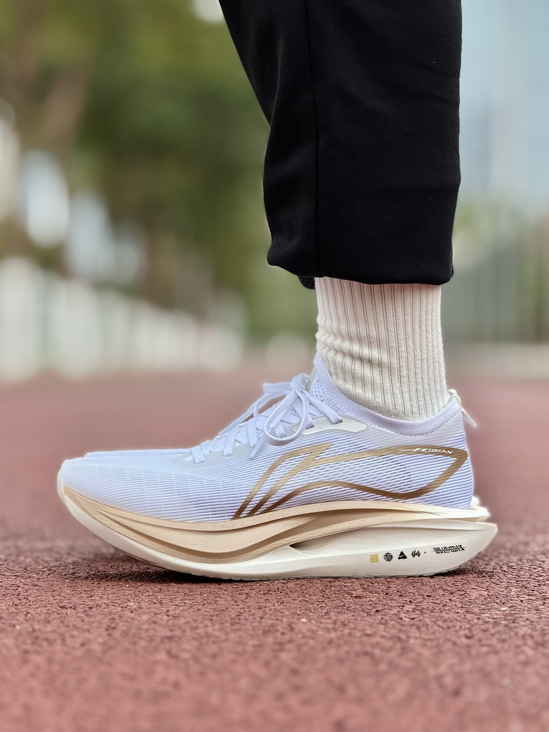 飞电5Elite这双跑步鞋,上脚感受,脚感确实不错!包裹和鞋脚一体做得很棒!外底纹路清晰,在室外跑步,耐磨和防滑效果不错!适合进阶跑者,日常跑步,体育生训练同样合适