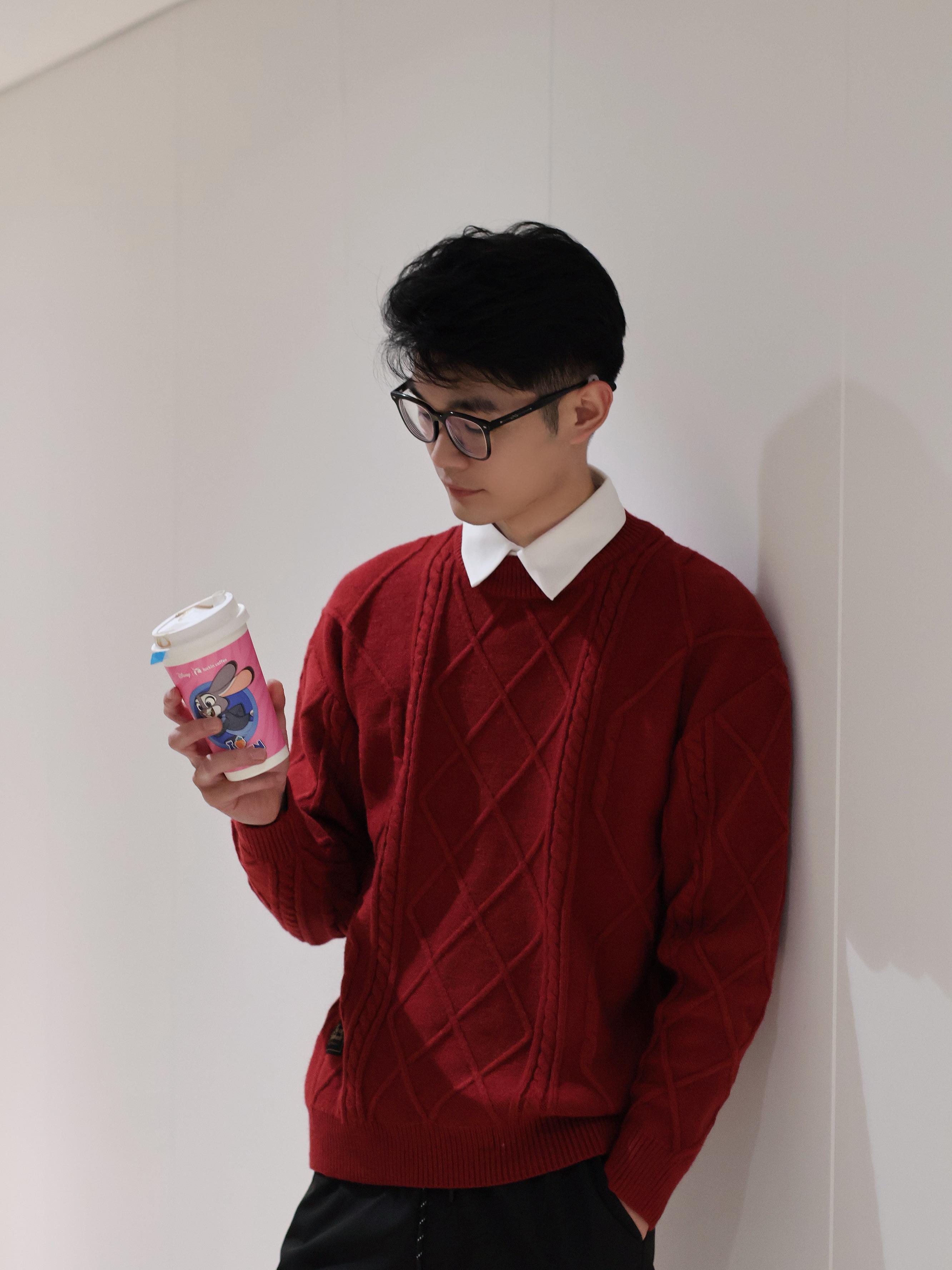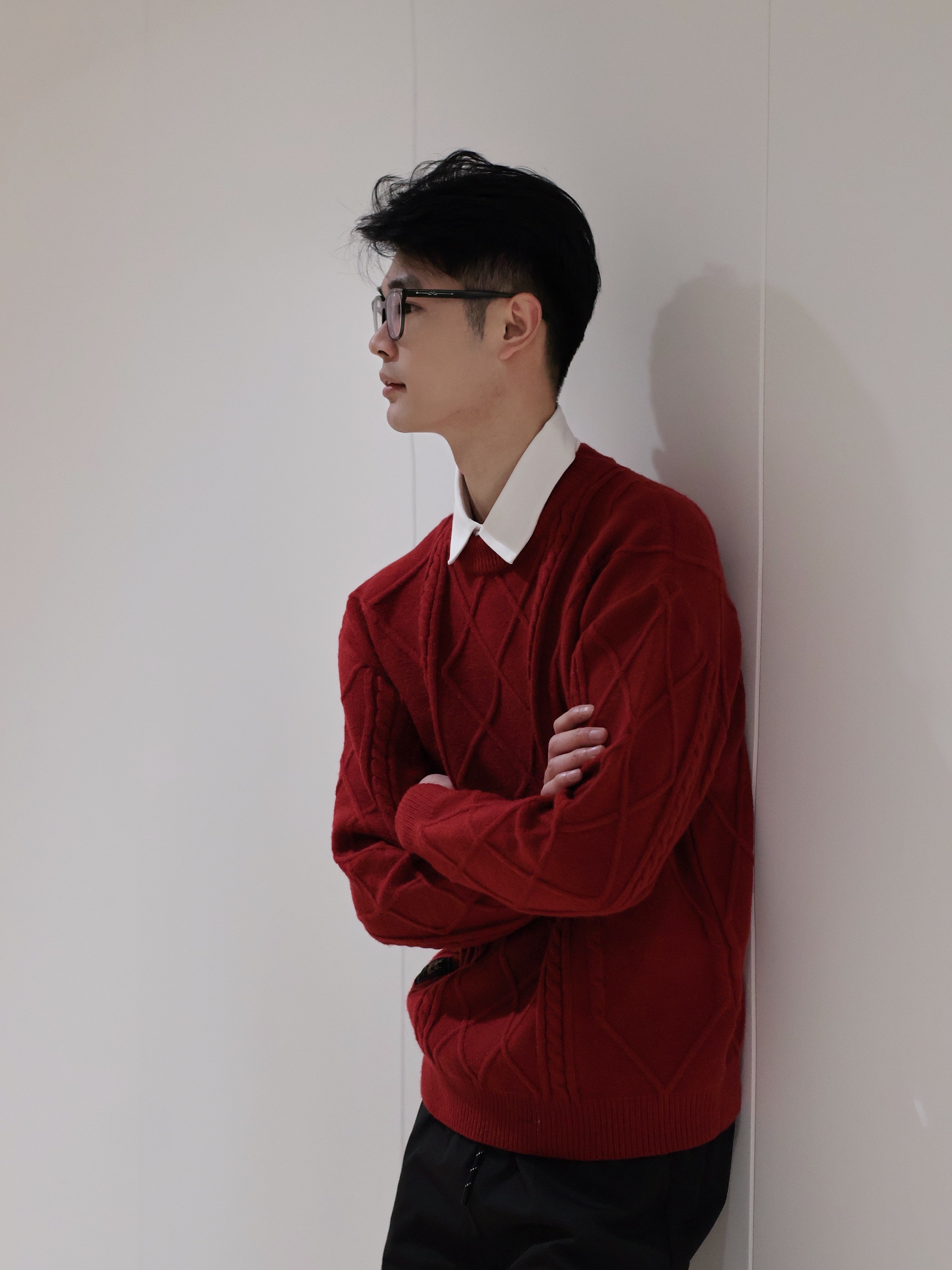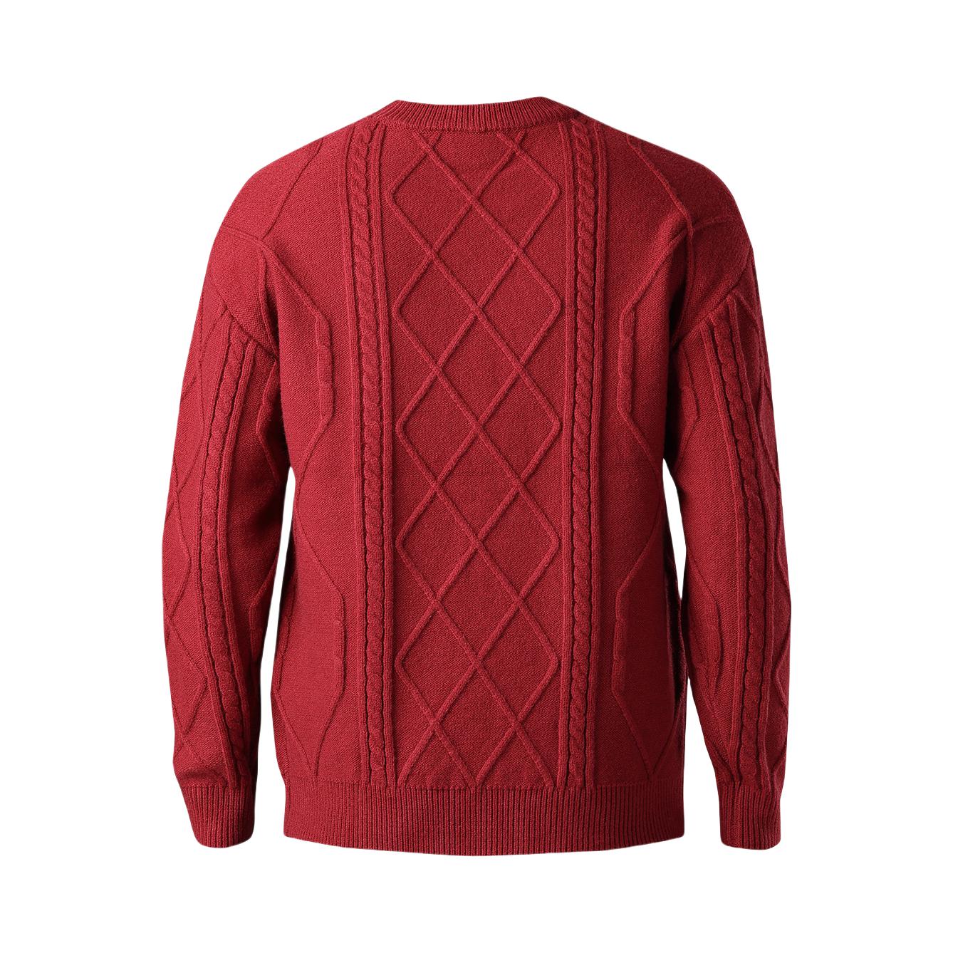 180cm/60kg的我,入的L码正合适。它是那种很正的酒红色,菱格绞花的纹路特别有细节感,摸起来软软糯糯的,贴身穿也不扎。内搭白衬衫,外面再套个大衣,挺显气质的。秋冬穿它保暖又有层次,关键是这种经典款怎么穿都不会过时。
