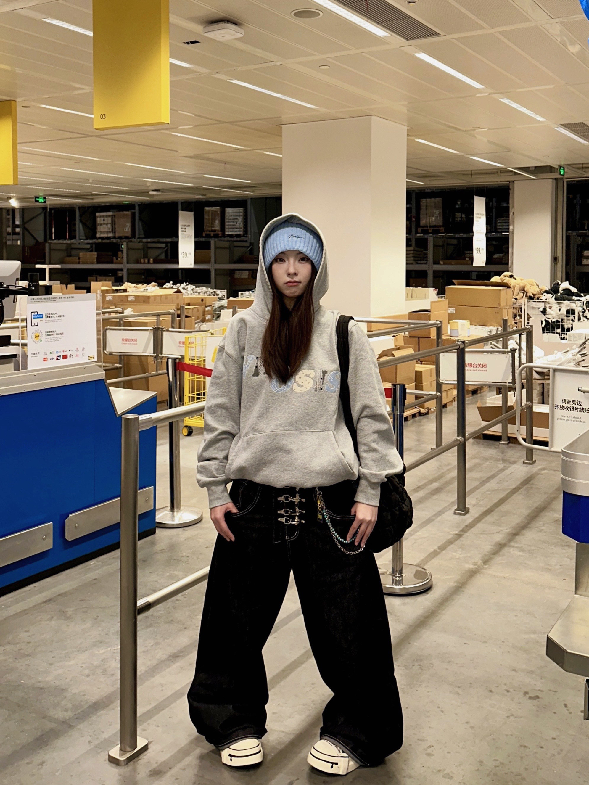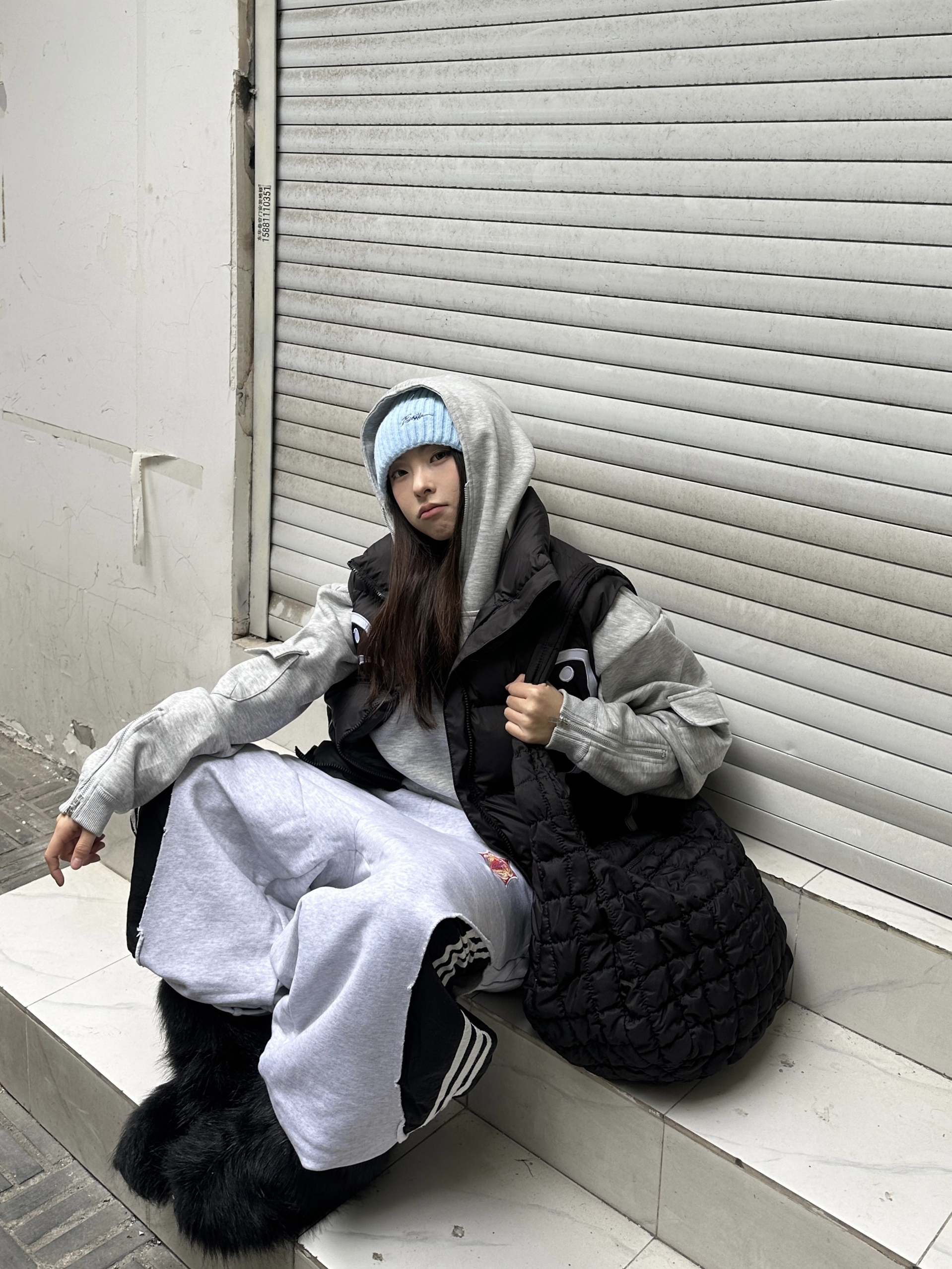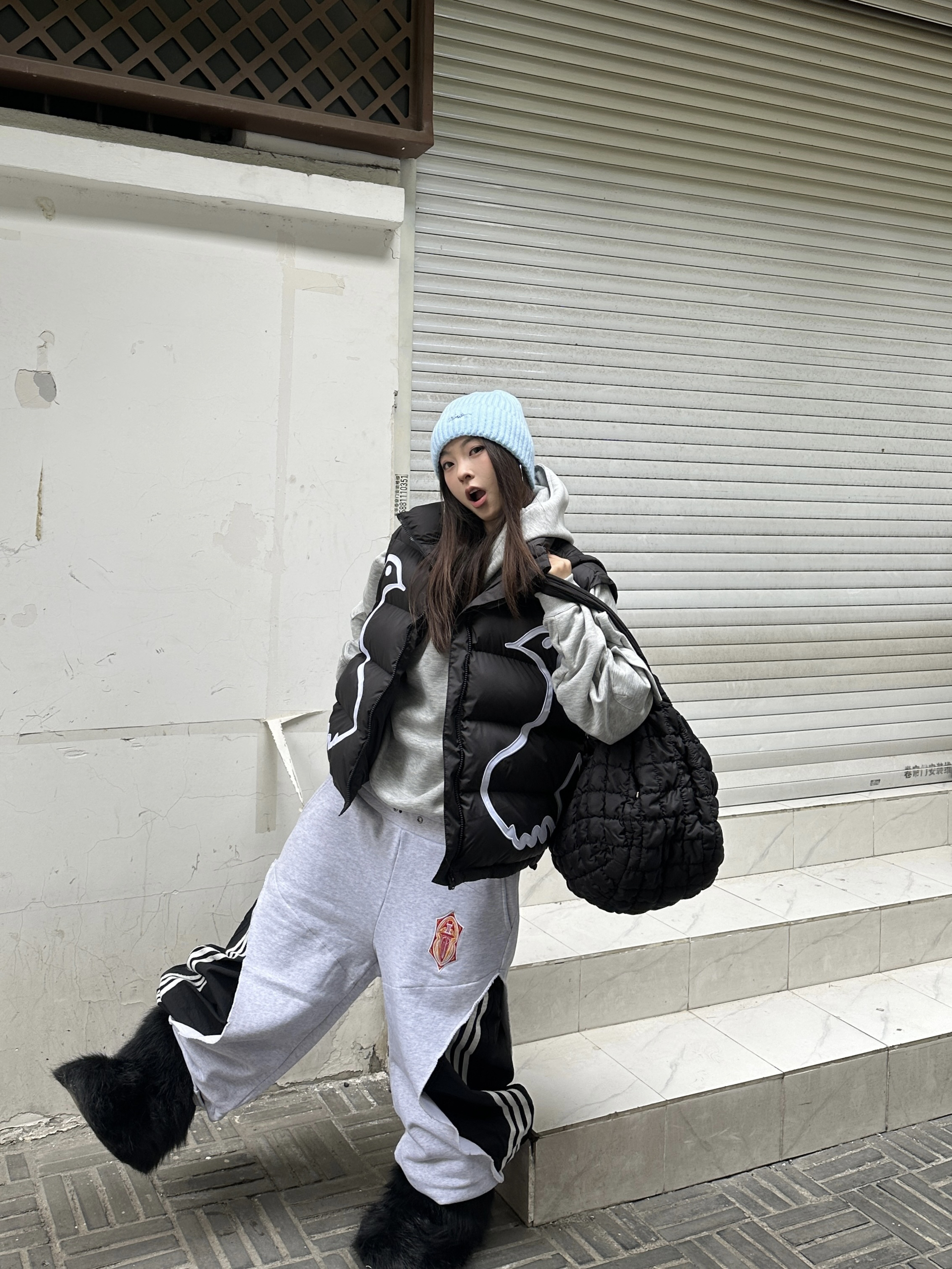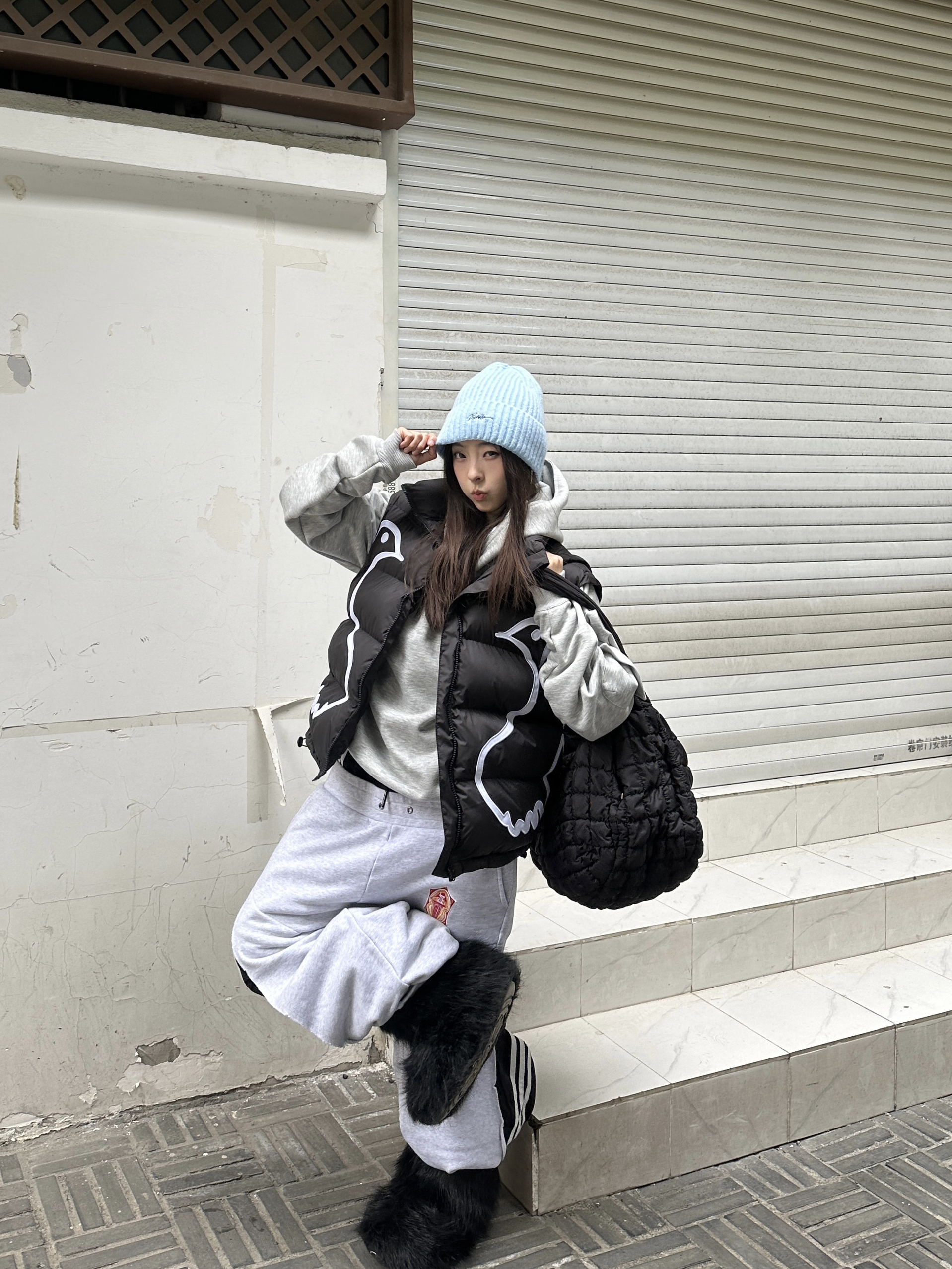 - 低饱和的甜 灰蓝低饱和度配色 增添冬日的慵懒💙 👔 上衣:FORNINFE➕云梯 👖 下装:Fourth3ex 👟 鞋子:雪地靴 🎒配饰:COS➕plan in帽子