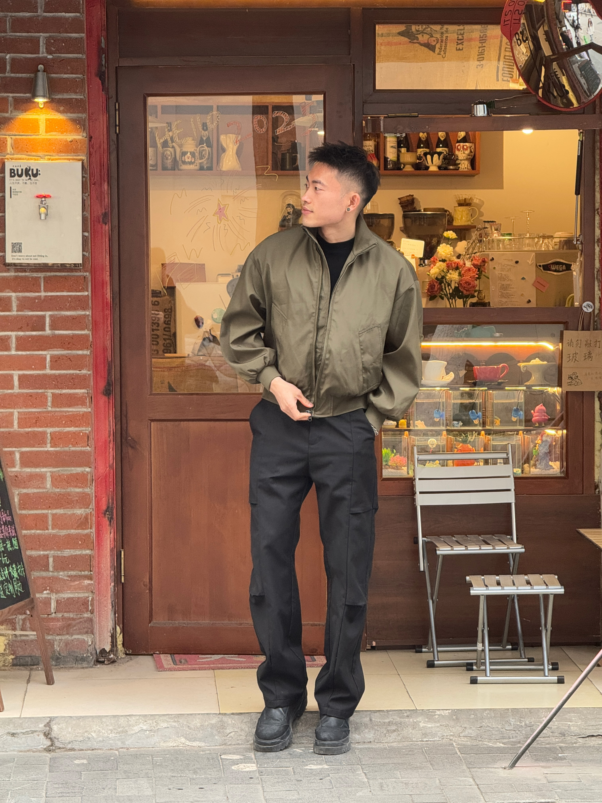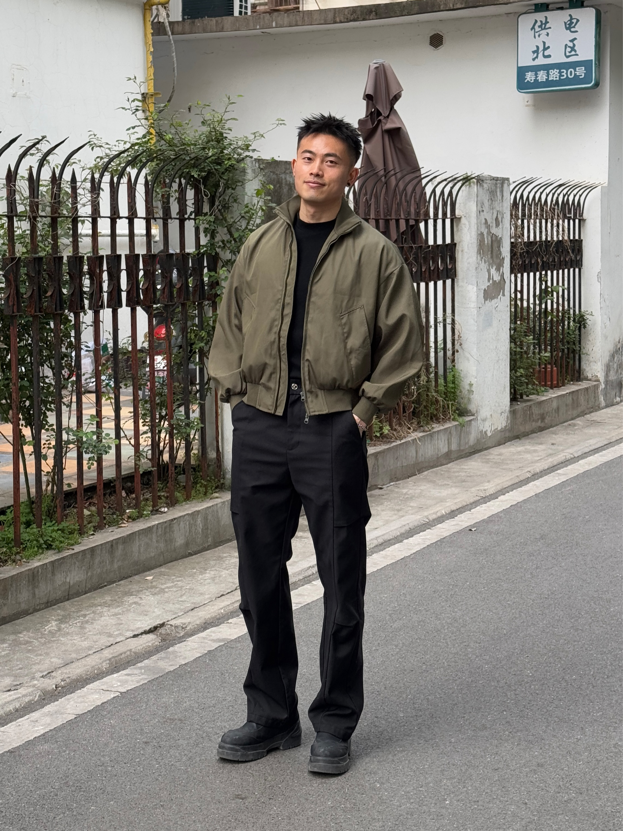 是新衣服帅✨ 年度穿搭必须要有美式复古夹克啊 极简的设计很适合Cleanfit穿搭✅ 廓形穿起来很修饰上半身材,短款设计同时也显腿长 建议拍小一码,穿起来更显比例💫 💁♂️:173/70,上身M码