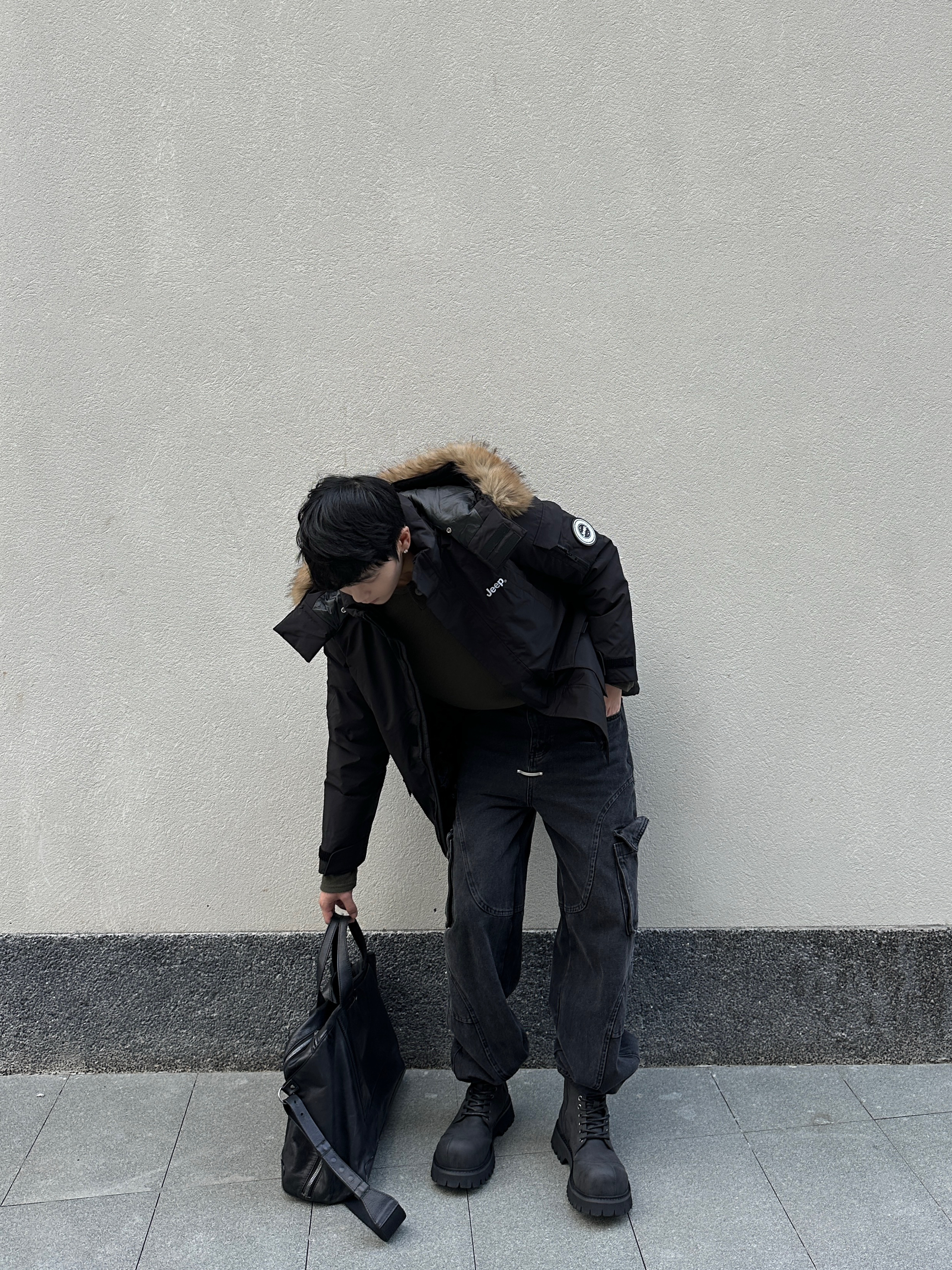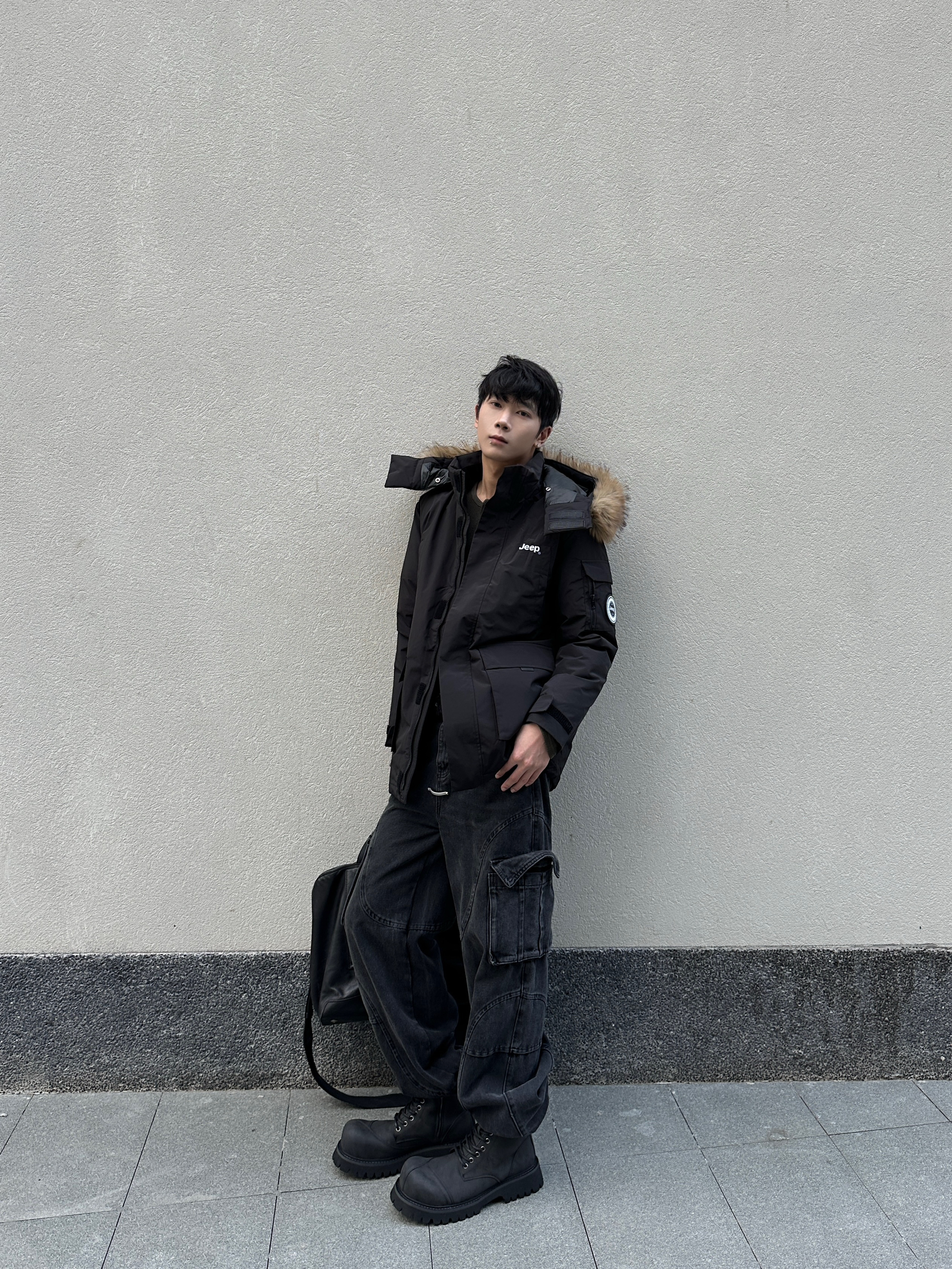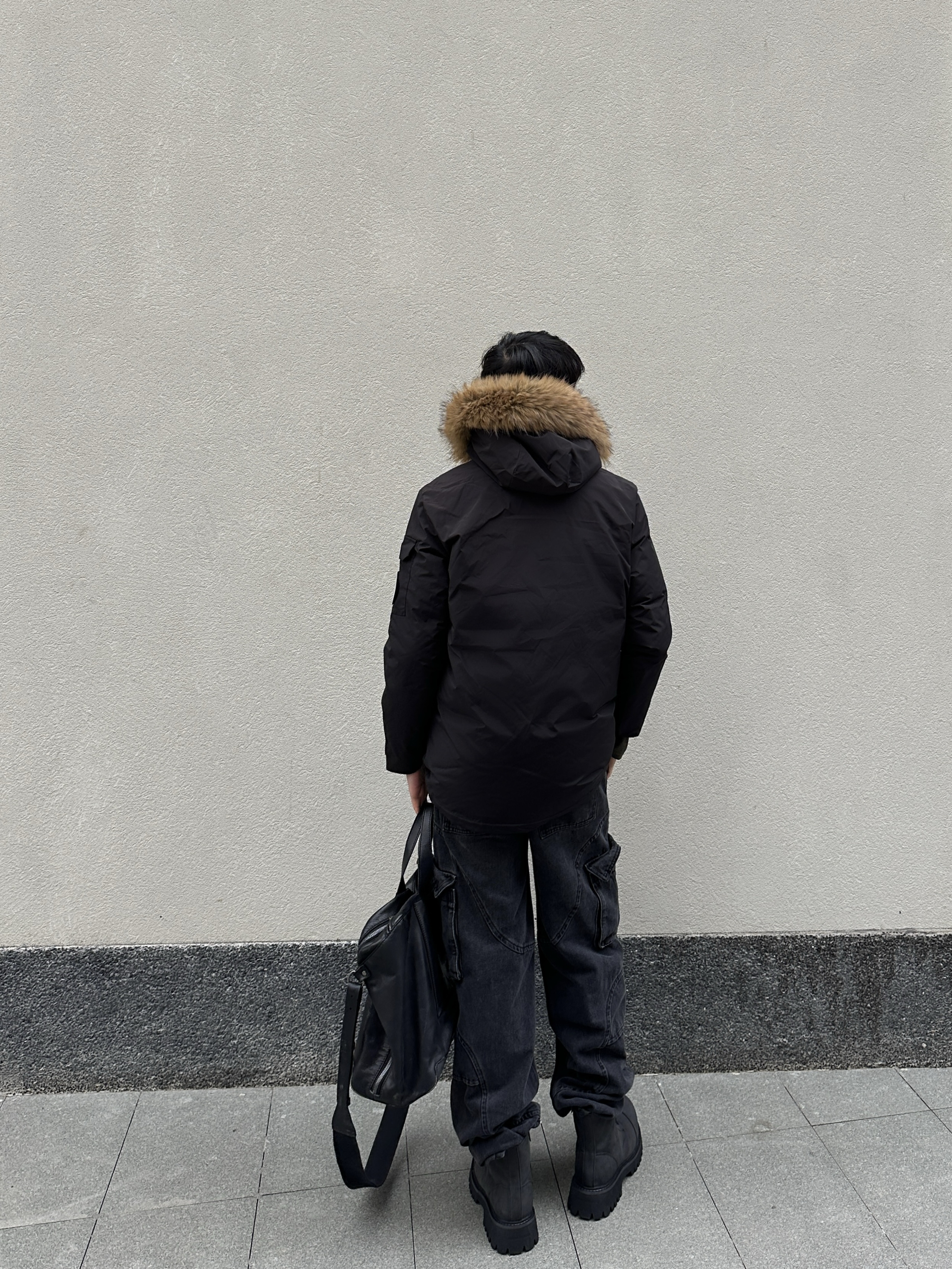 冷到裹被子的季节 派克羽绒服才是保暖+时髦的天选 这件中长款派克羽绒服是真的顶 大毛领一戴直接把冬天的氛围拉满 内里是填充的鸭绒很保暖 里面我只穿了个长袖卫衣也不会冷 口袋很大可以装很多东西 纯黑色怎么搭也都不会出错 下面穿的是一条工装风的黑牛仔裤 束脚的设计刚好可以露出厚底靴 鞋子是一双解构的大头靴 5cm的厚底可以悄悄拉长腿 高帮厚底靴配束脚裤真的帅的不行 最后再拎个黑色大包 ...
