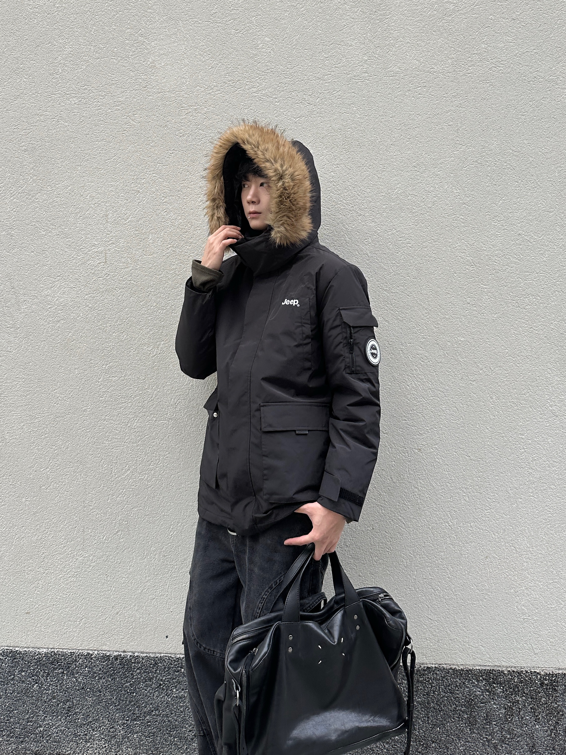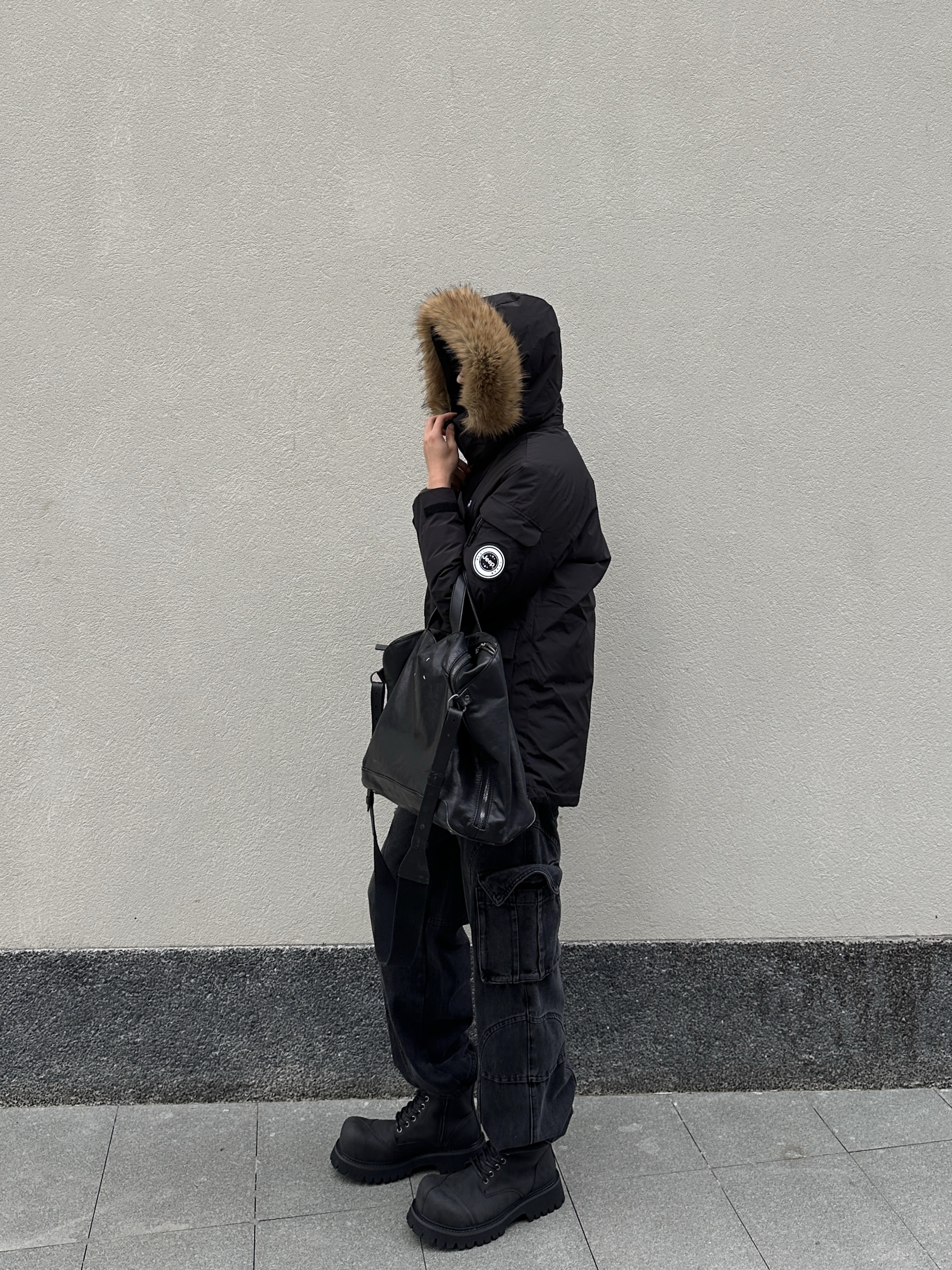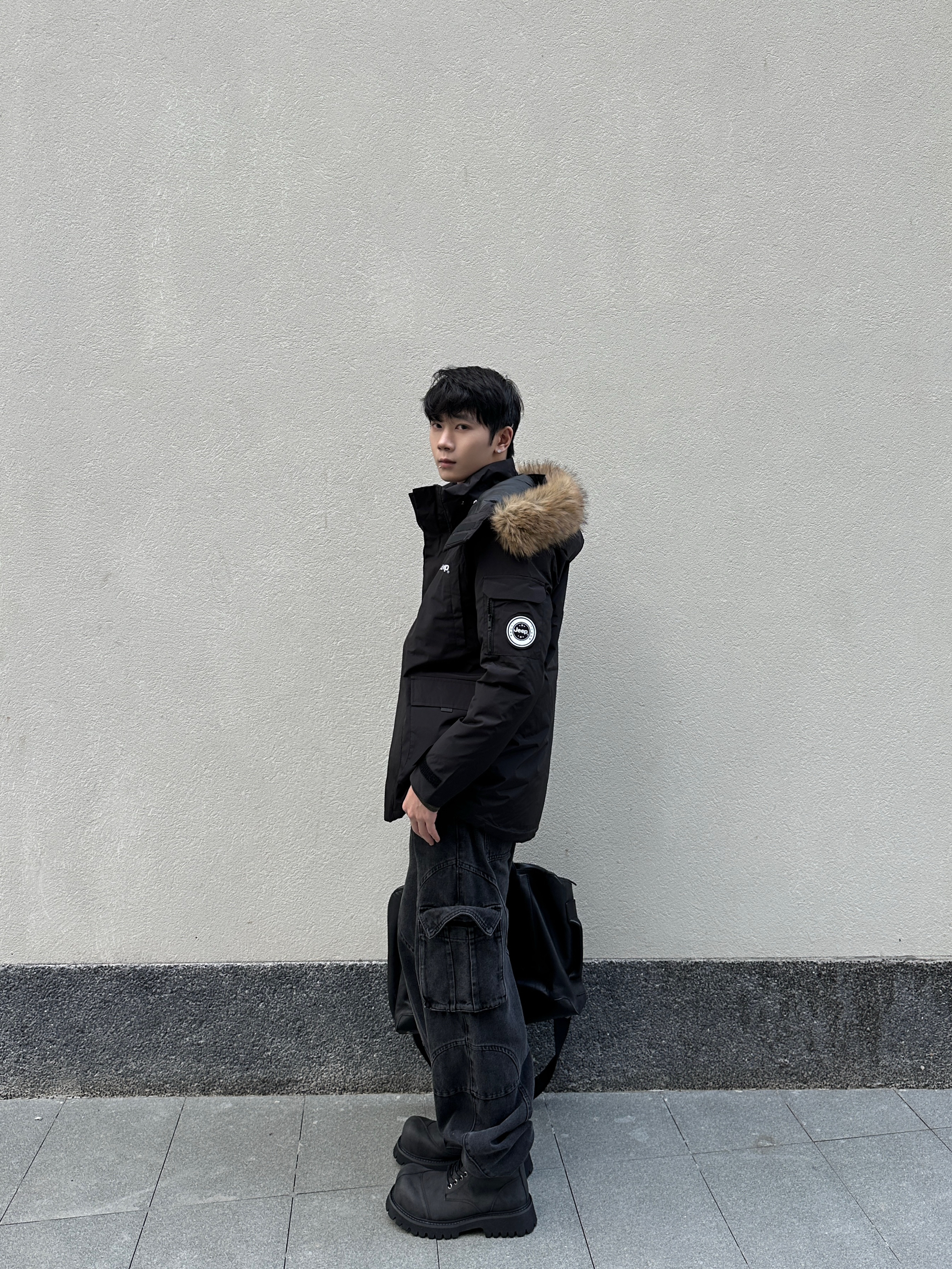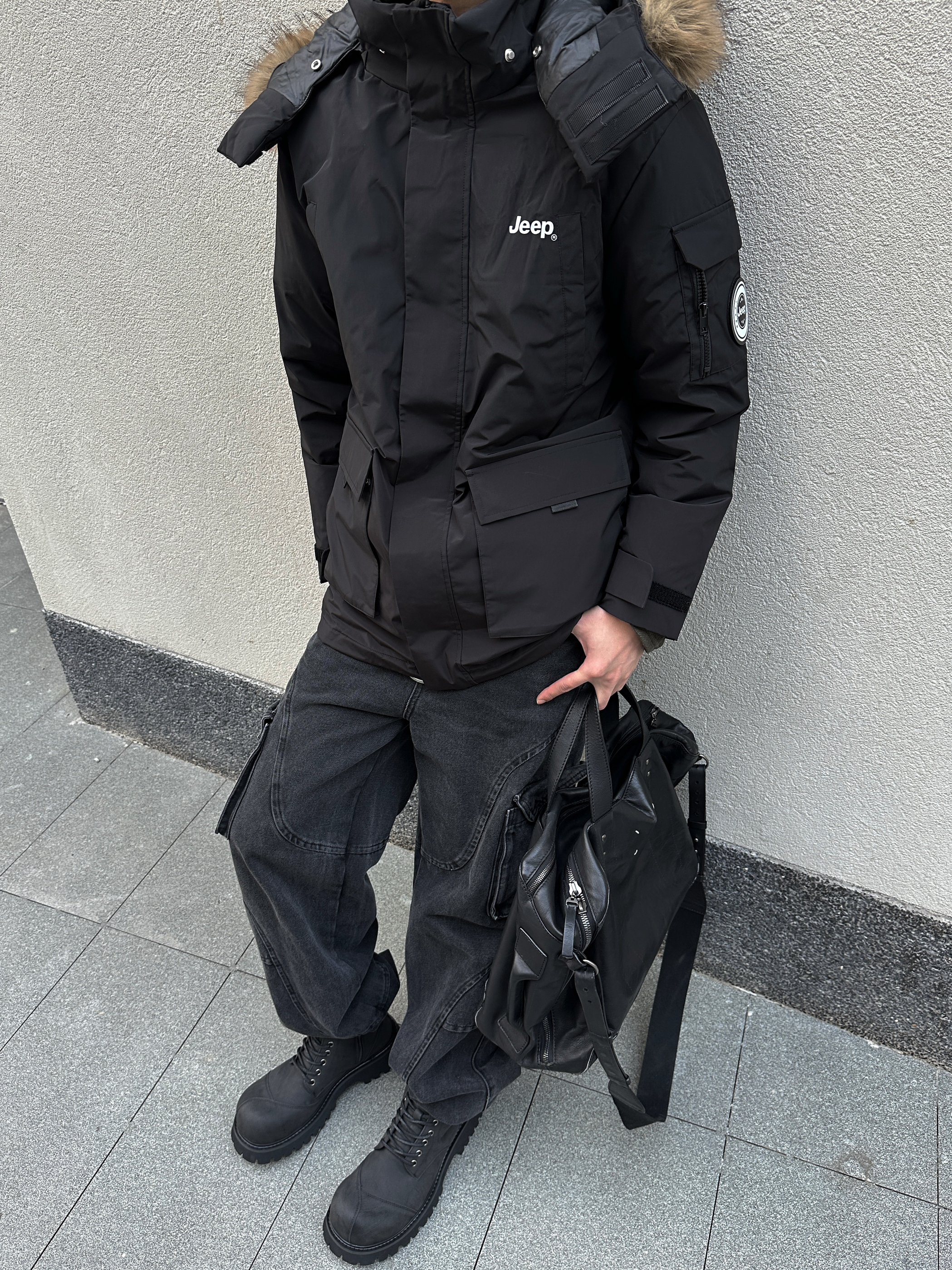 冷到裹被子的季节 派克羽绒服才是保暖+时髦的天选 这件中长款派克羽绒服是真的顶 大毛领一戴直接把冬天的氛围拉满 内里是填充的鸭绒很保暖 里面我只穿了个长袖卫衣也不会冷 口袋很大可以装很多东西 纯黑色怎么搭也都不会出错 下面穿的是一条工装风的黑牛仔裤 束脚的设计刚好可以露出厚底靴 鞋子是一双解构的大头靴 5cm的厚底可以悄悄拉长腿 高帮厚底靴配束脚裤真的帅的不行 最后再拎个黑色大包 ...