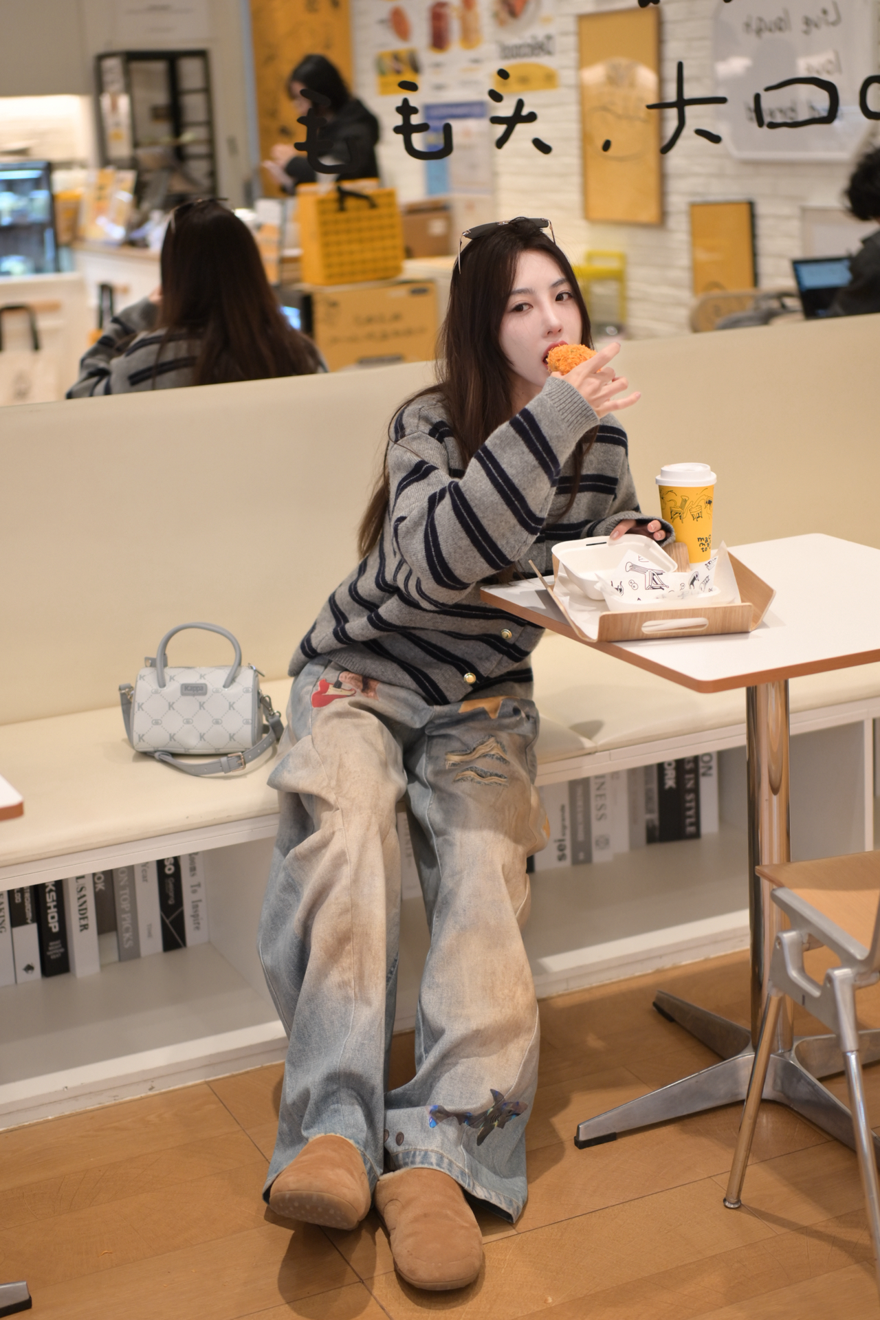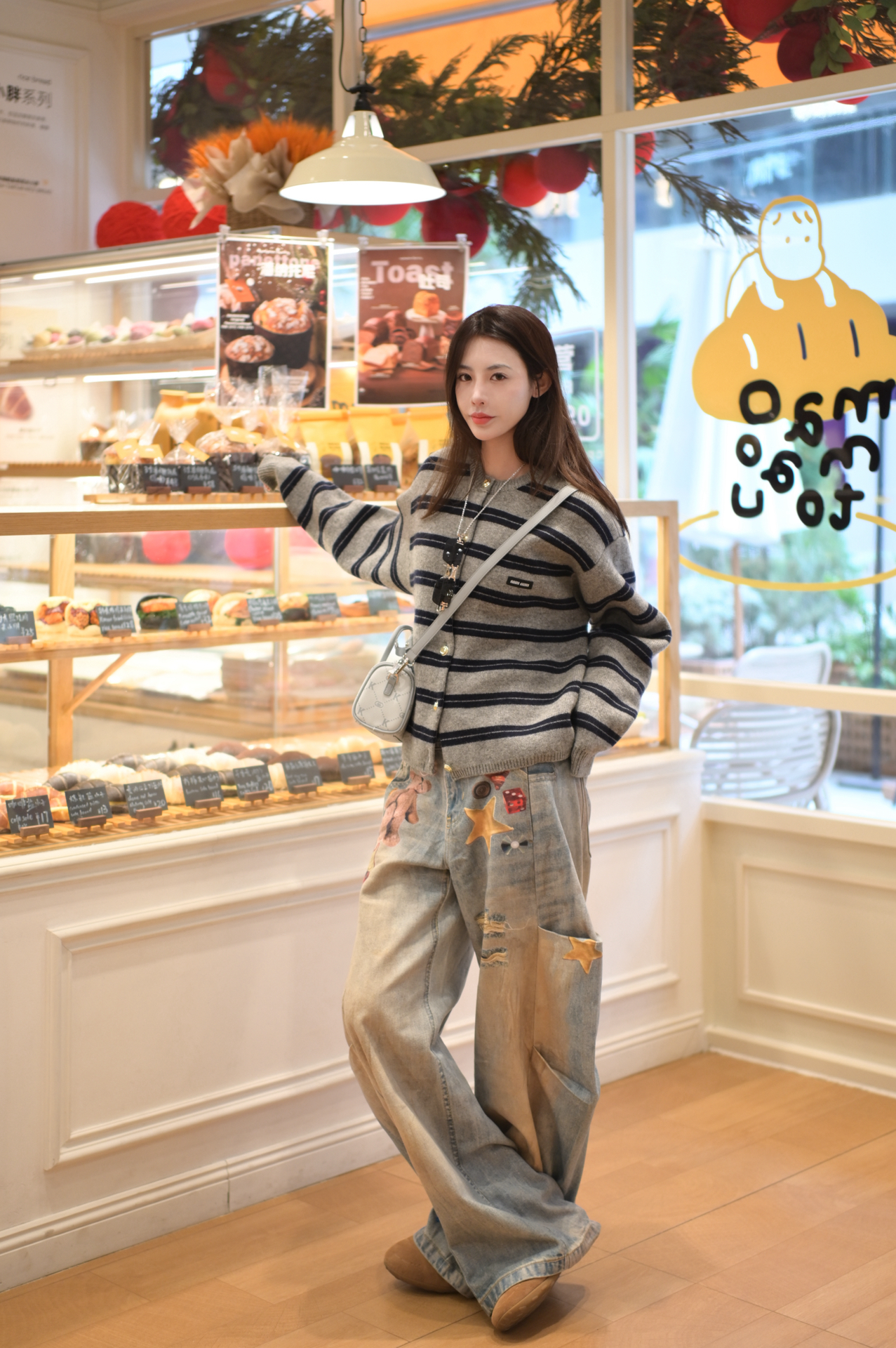 灰色调调真的很高级 !最近超级喜欢灰色调调 圣诞节 给自己小小放假 🏖️ 特别喜欢这种面包店 闻着面包🥖刚烤出来的香味 喝上一口香浓的咖啡真的是顶级享受了~ 穿搭选了软软糯糯的小毛衣还有 超级舒服的弯刀牛仔裤👖 轻松慵懒 时尚 潮流~ 最重要很暖和 太适合冬天的杭州了 ㊗️宝宝们圣诞快乐吧~#圣诞节日穿搭 #高颜值潮流时尚慵懒感毛衣 #必入宝藏条纹针织衫 #kappa #TIJN