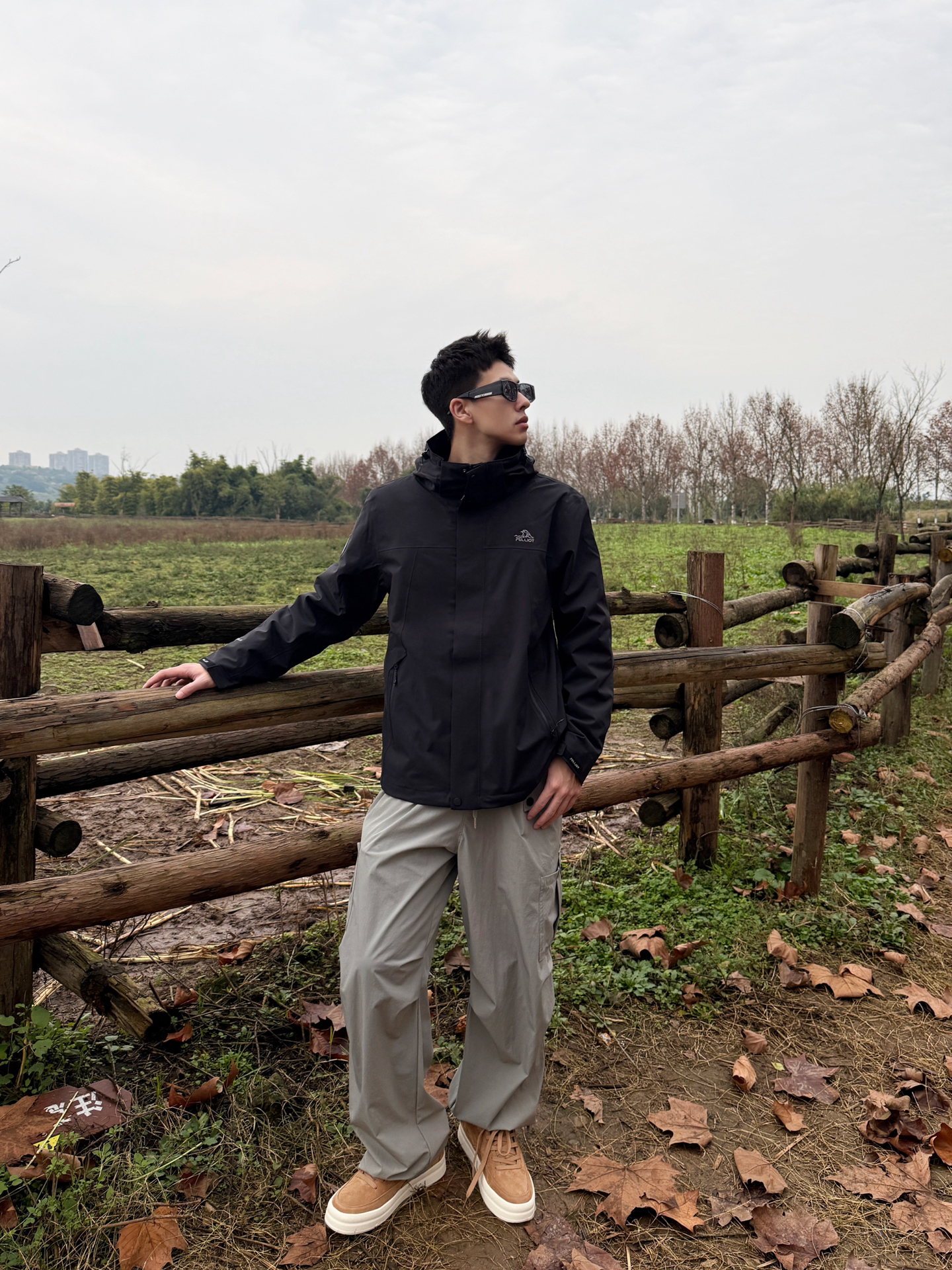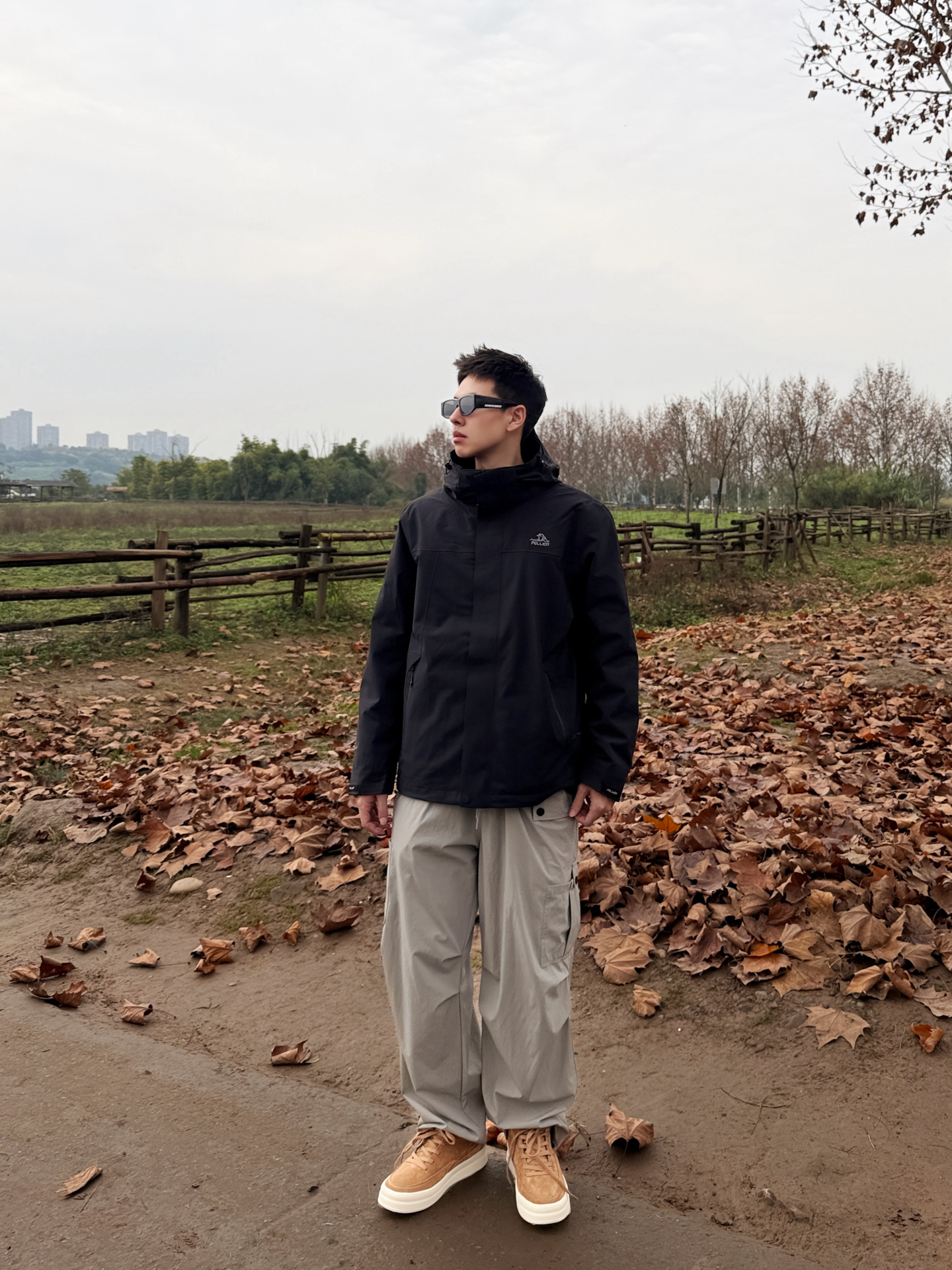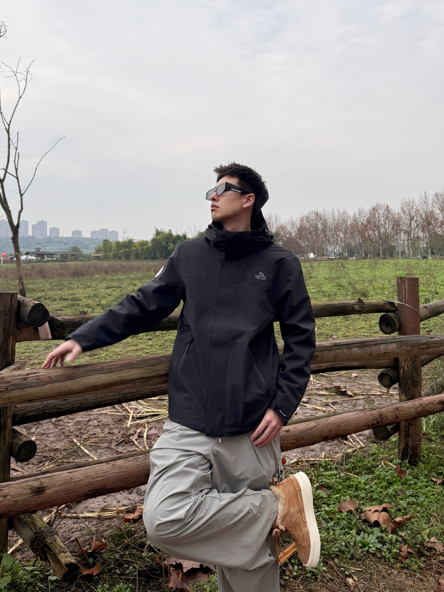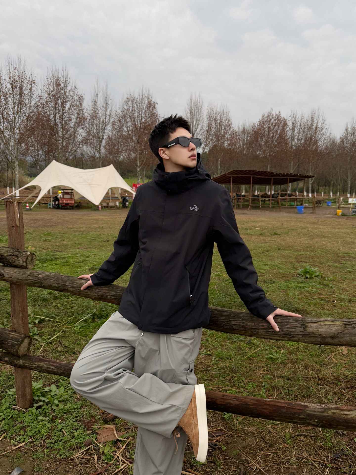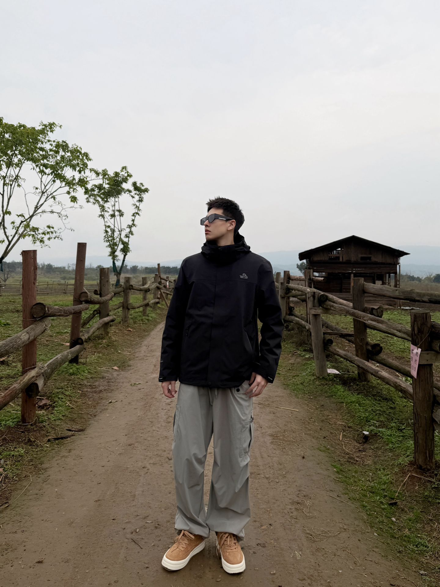 伯希和山风系列搭Jeep Spirit鞋:把户外机能风穿进自然里 伯希和山风系列的黑色冲锋衣选了轻量化的机能面料,利落的连帽剪裁在户外场景里既防风又不压身,简约的版型还藏着百搭的属性;搭浅灰工装裤时,冷色调的搭配和自然背景形成柔和呼应,踩一双Jeep Spirit焦糖色低帮鞋,暖棕调瞬间戳破黑灰的沉闷,户外机能风里多了份随性的休闲感。 这种“黑灰主调+暖棕点睛”的搭配,让户外穿搭既能适配山野,...