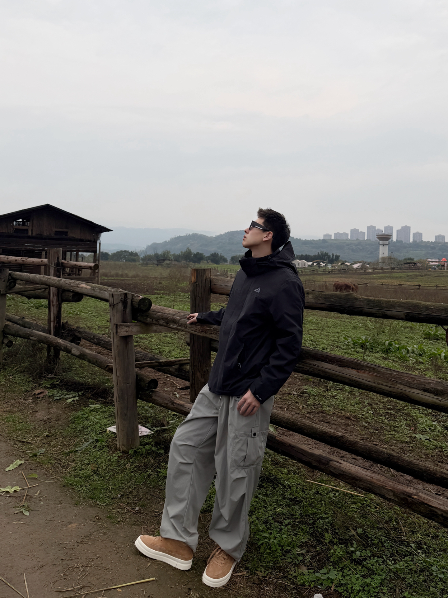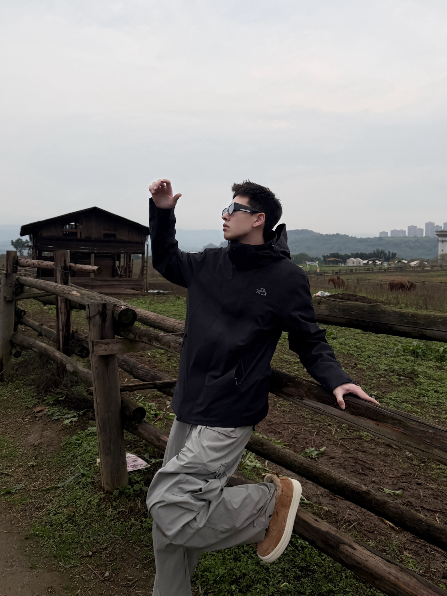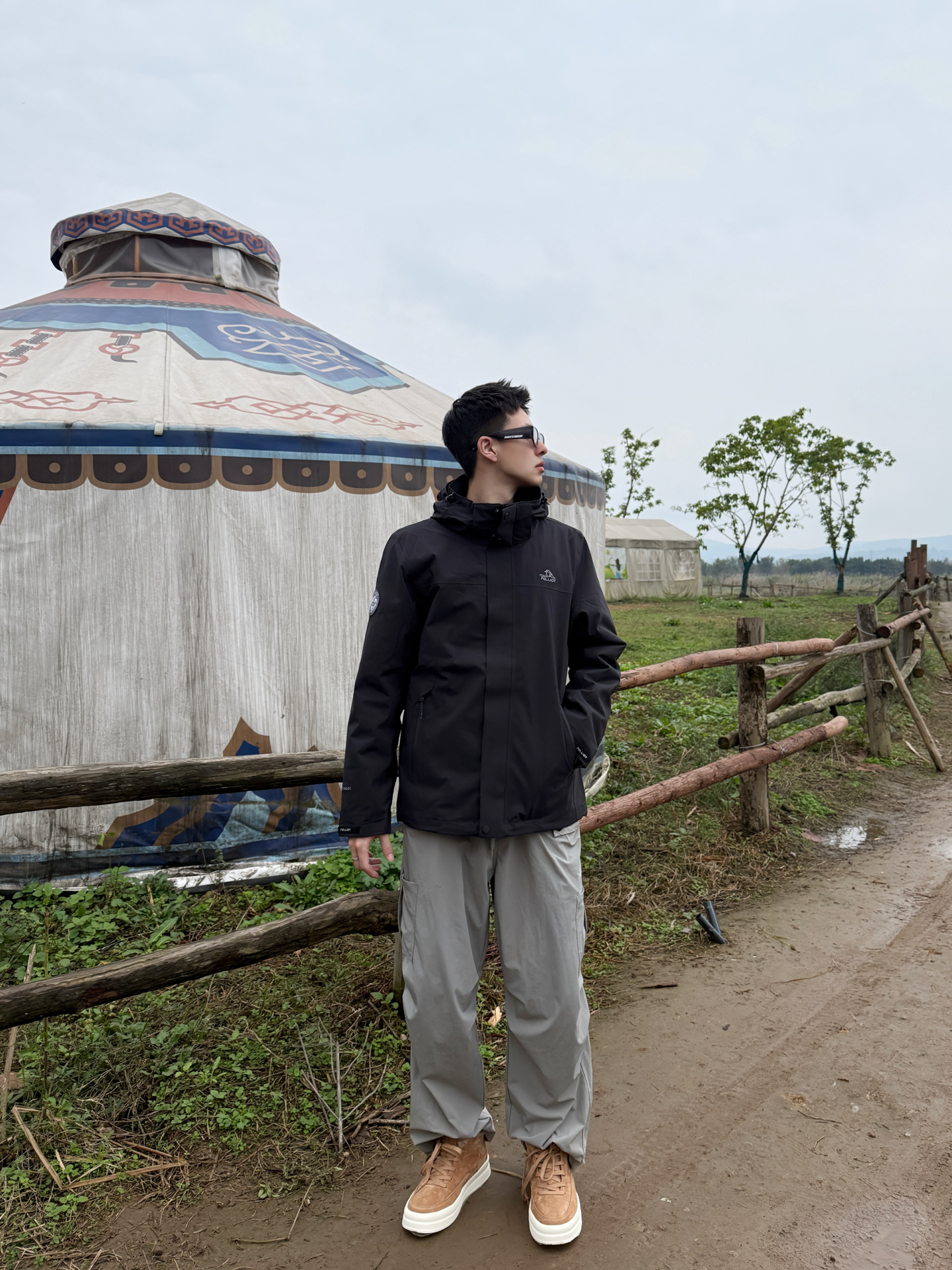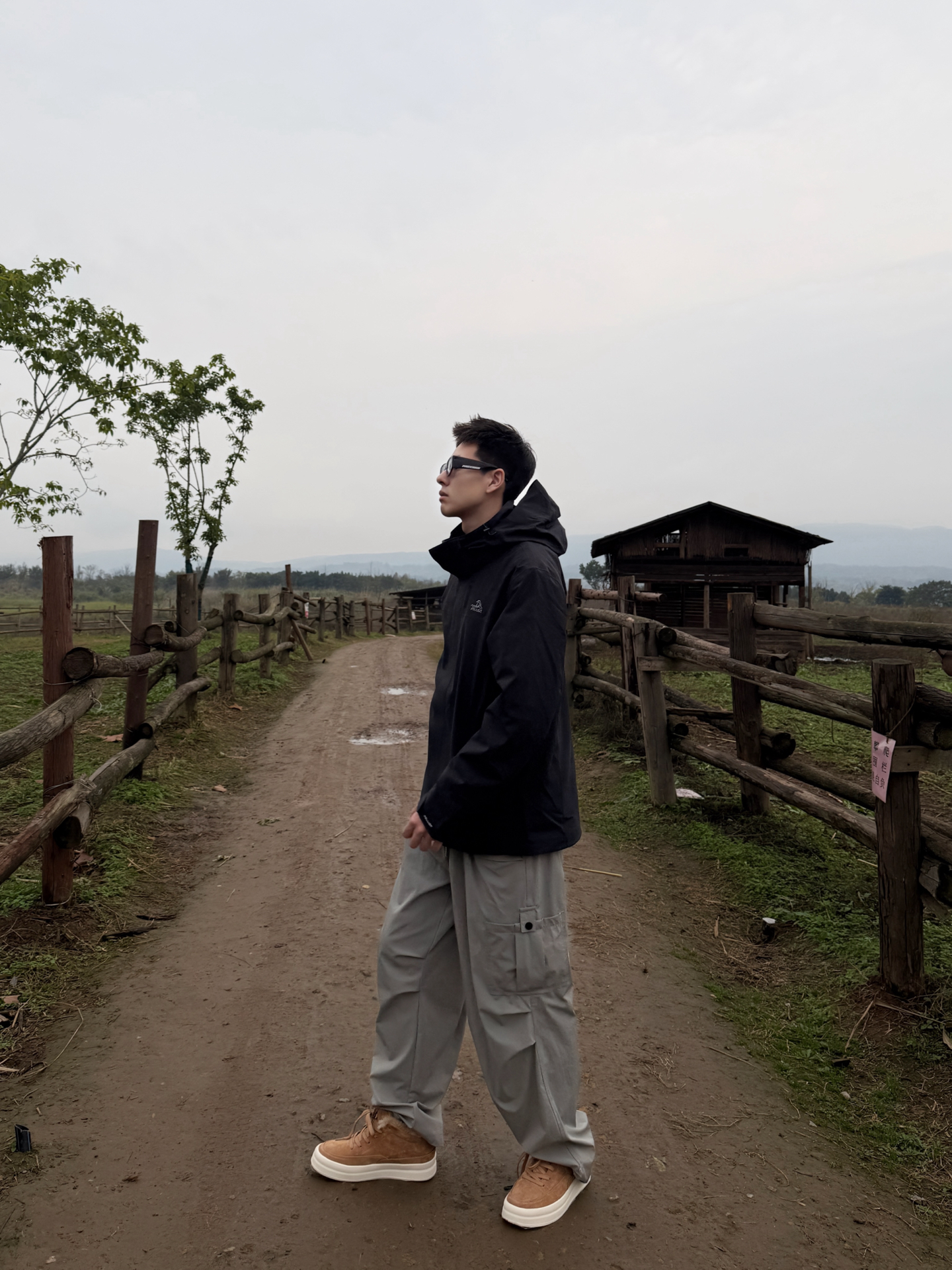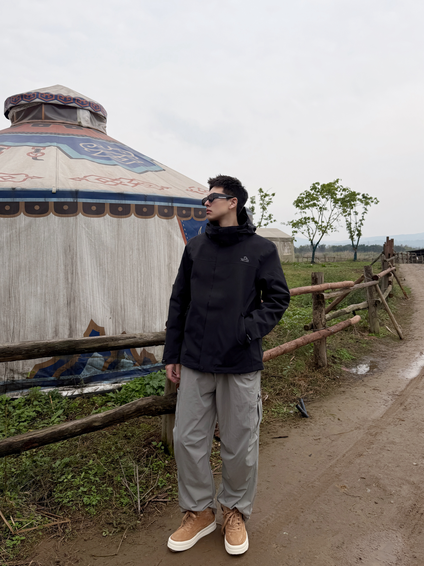 伯希和山风系列搭Jeep Spirit鞋:把户外机能风穿进自然里 伯希和山风系列的黑色冲锋衣选了轻量化的机能面料,利落的连帽剪裁在户外场景里既防风又不压身,简约的版型还藏着百搭的属性;搭浅灰工装裤时,冷色调的搭配和自然背景形成柔和呼应,踩一双Jeep Spirit焦糖色低帮鞋,暖棕调瞬间戳破黑灰的沉闷,户外机能风里多了份随性的休闲感。 这种“黑灰主调+暖棕点睛”的搭配,让户外穿搭既能适配山野,...