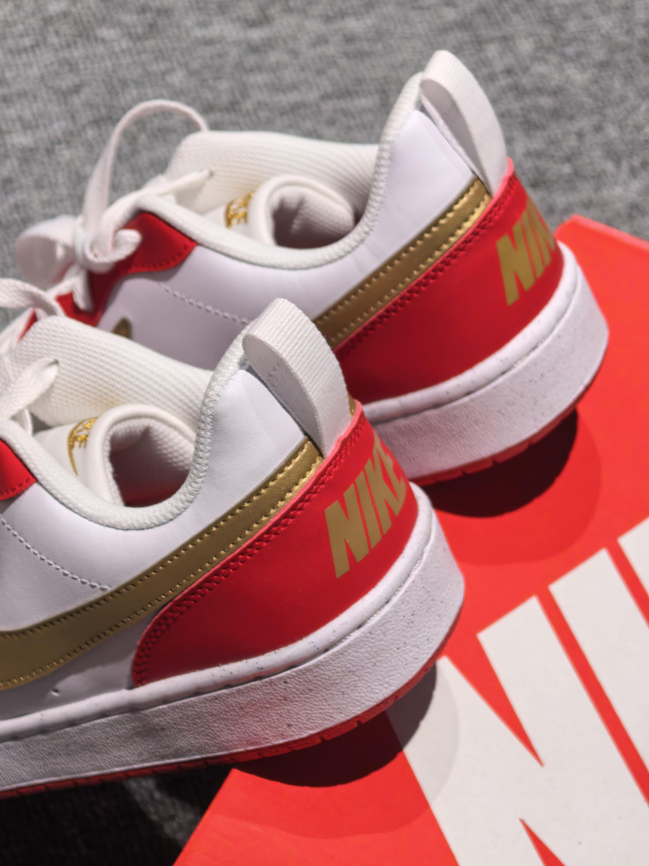 这双Nike Court Borough锁死我的秋冬穿搭了!🔥经典白红配色+金色大钩子,复古又亮眼,直接点亮一身暗色系!