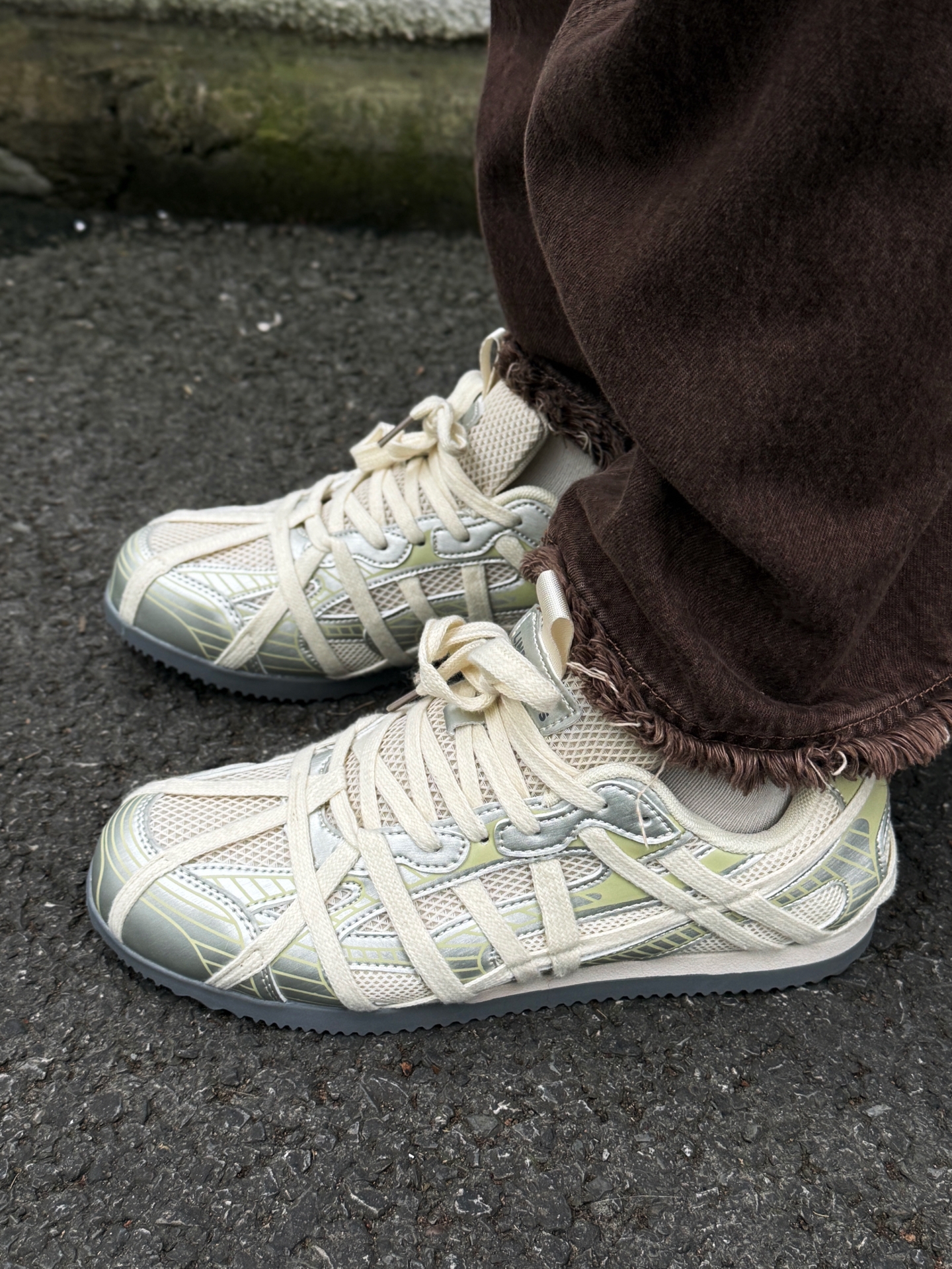 Line Friends绑带鞋:把慵懒复古感揉进街头穿搭里 Line Friends这双绑带鞋选了米白拼浅银的配色,交错的绑带设计像随性缠上去的麻绳,带着点做旧的慵懒感,网面和金属质感的拼接又藏着细节巧思;搭黑皮夹克+咖色毛边牛仔裤时,浅色调鞋身中和了皮夹克的硬朗,咖裤的复古调调又和鞋身的慵懒感呼应,街头风里瞬间多了份松弛的复古味。 这种带着软萌联名细节的绑带鞋,打破了复古穿搭的沉闷,随便一套...