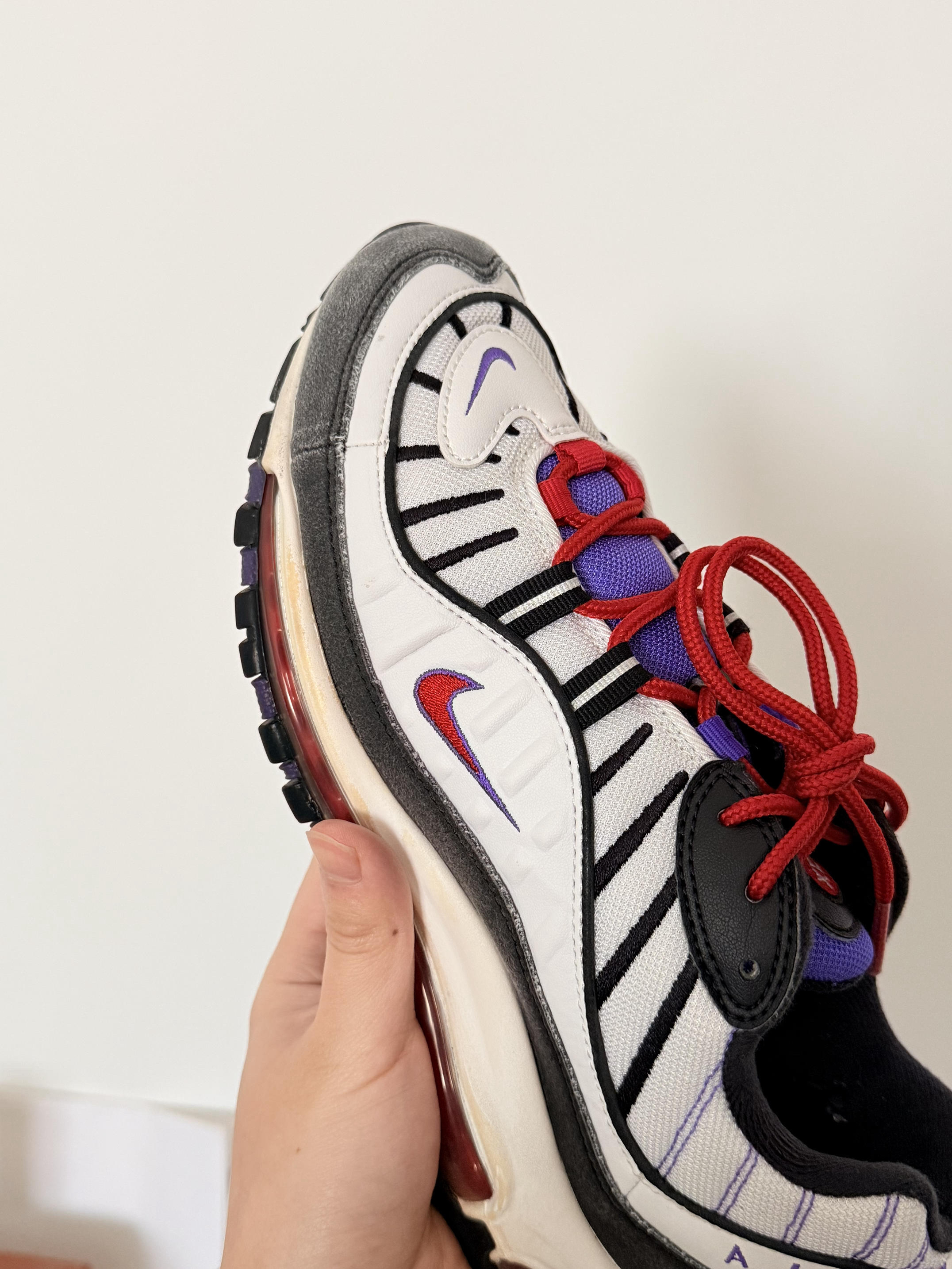 本篇笔记关联了Nike Air Max 98 潮流复古 全掌气垫 缓震回弹 防滑耐磨 轻便透气 时尚 跑鞋 白黑紫红等商品,为用户提供真实的使用体验和购买参考。