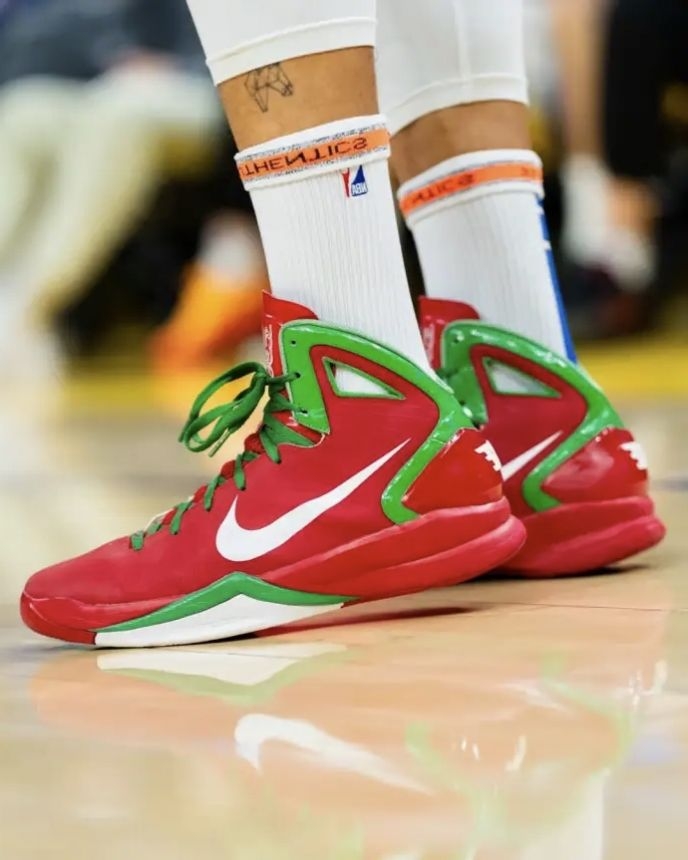 今天勇士主场迎独行侠的圣诞大战还没开打,库里的赛前热身就先把我看呆了——他上脚了圣诞配色的Nike Hyperdunk2010 PE,瞬间拉回15年前的记忆。 2010年的圣诞大战,库里就穿着同款配色的这双鞋出战,鞋舌处的“SC30”个人logo还是当年耐克为他打造的,满满的情怀感。红绿色的圣诞配色经典又亮眼,和Hyperdunk2010的鞋型搭配起来,复古味儿直接拉满,库里这波直接是用球鞋复...