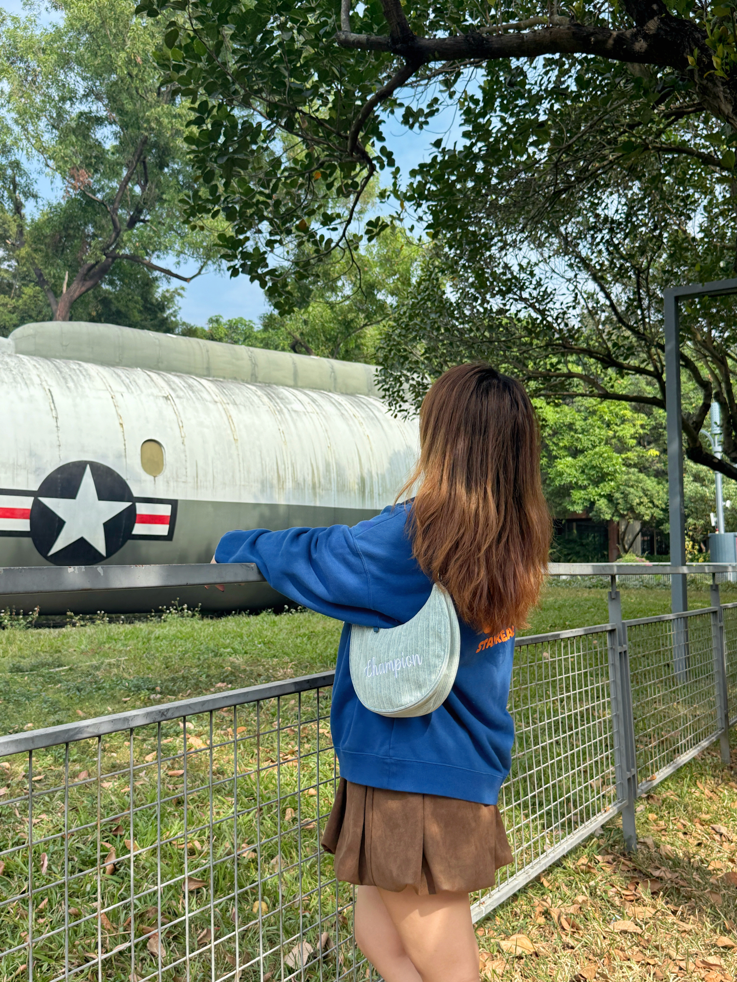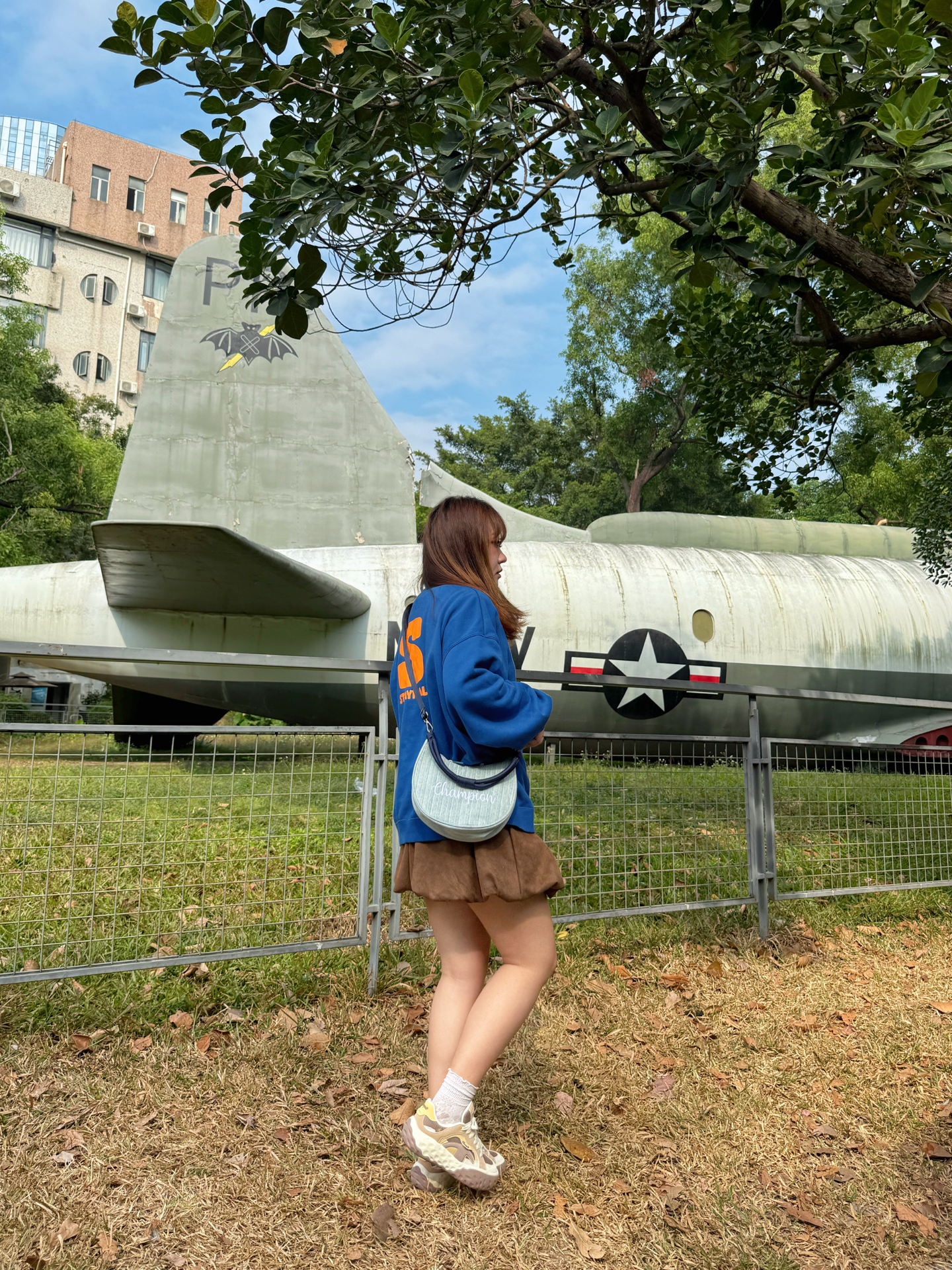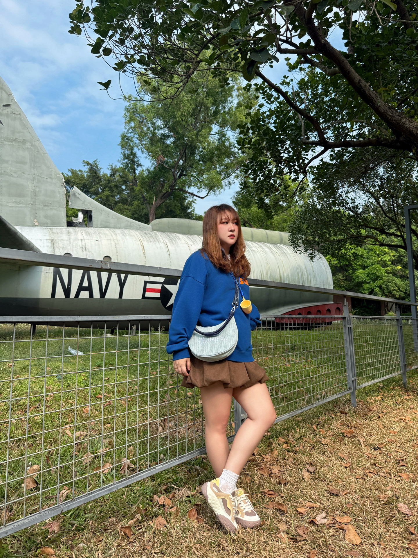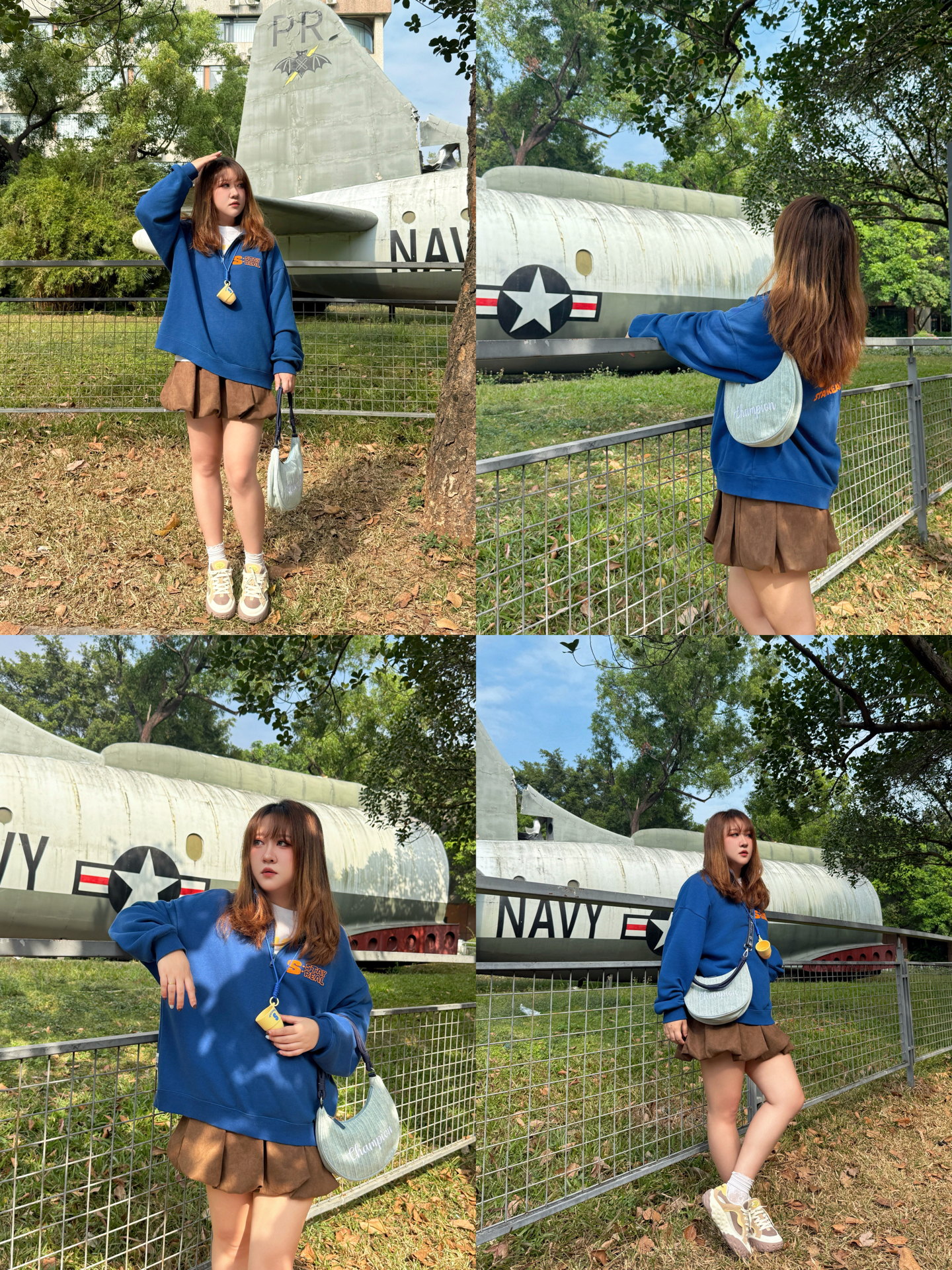 ▪️ 蓝棕调色盘,撞碎冬日的沉默 奶油白T恤从立领卫衣里探出头 像给天空蓝镶了道边☁️ 个人很爱这种“软配硬”的叠穿 领口袖口那点留白恰好 海军蓝的利落 被内搭的柔软悄悄化解了👌 下半身的焦糖棕短裙是意料之外的甜 厚底德训鞋踩在枯叶上沙沙响 和裙摆组成了大地色系二重奏🥾🍂 ▪️ 那只包是整套搭配的“呼吸感”担当 月牙型的弧度 刚好卡在身侧不显臃肿🌙 葱线刺绣的logo是暗纹,要凑近才能看清的精致...