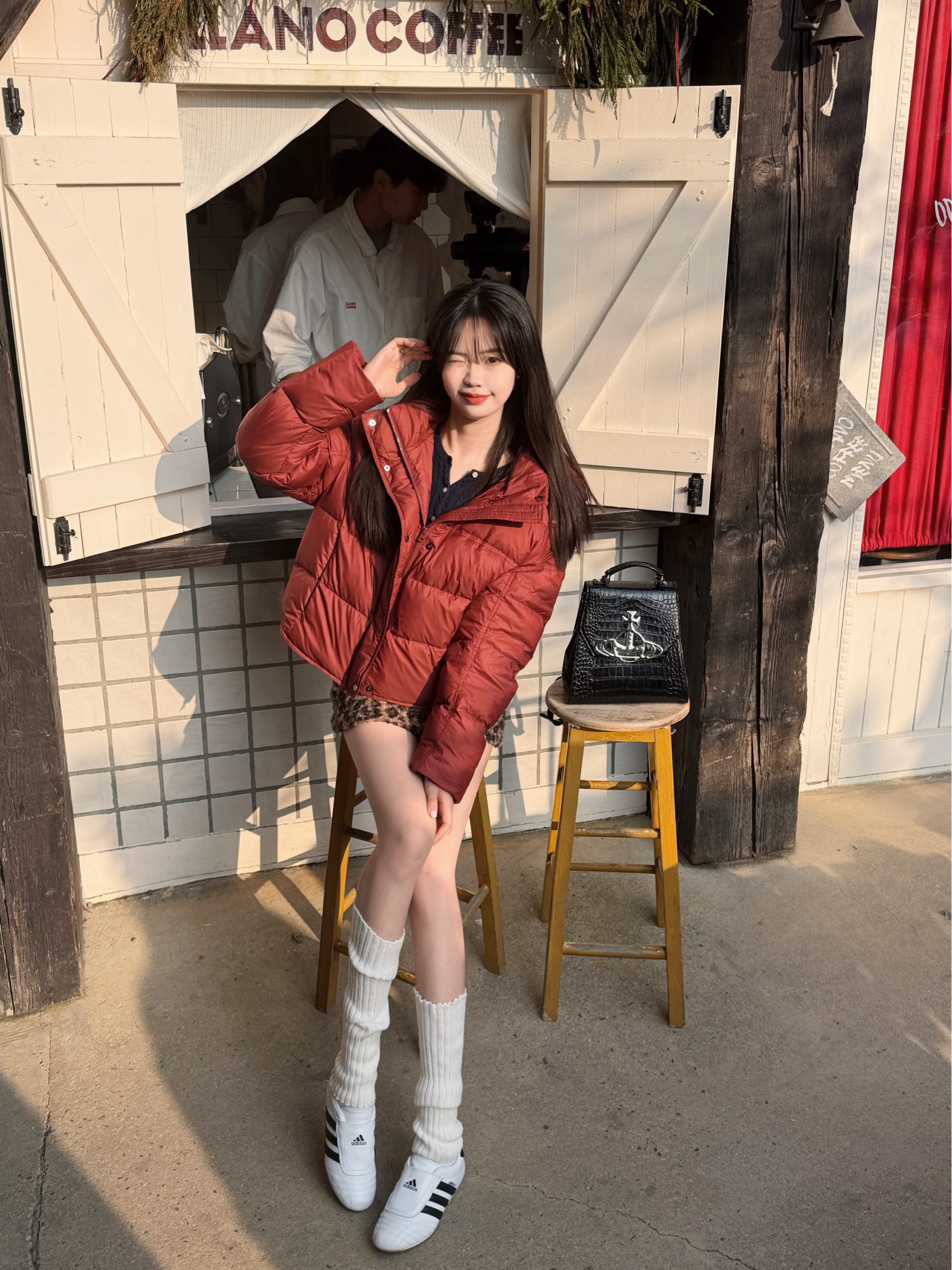 韩系冬日氛围感被这件焦糖红羽绒服狠狠拿捏了🧣 宽松版型藏肉又慵懒,内搭针织衫+豹纹短裙 下半身失踪穿法配堆堆袜和阿迪小白鞋 甜酷感直接拉满~ 在咖啡街角随便拍都出片,阳光洒下来的氛围感绝了✨