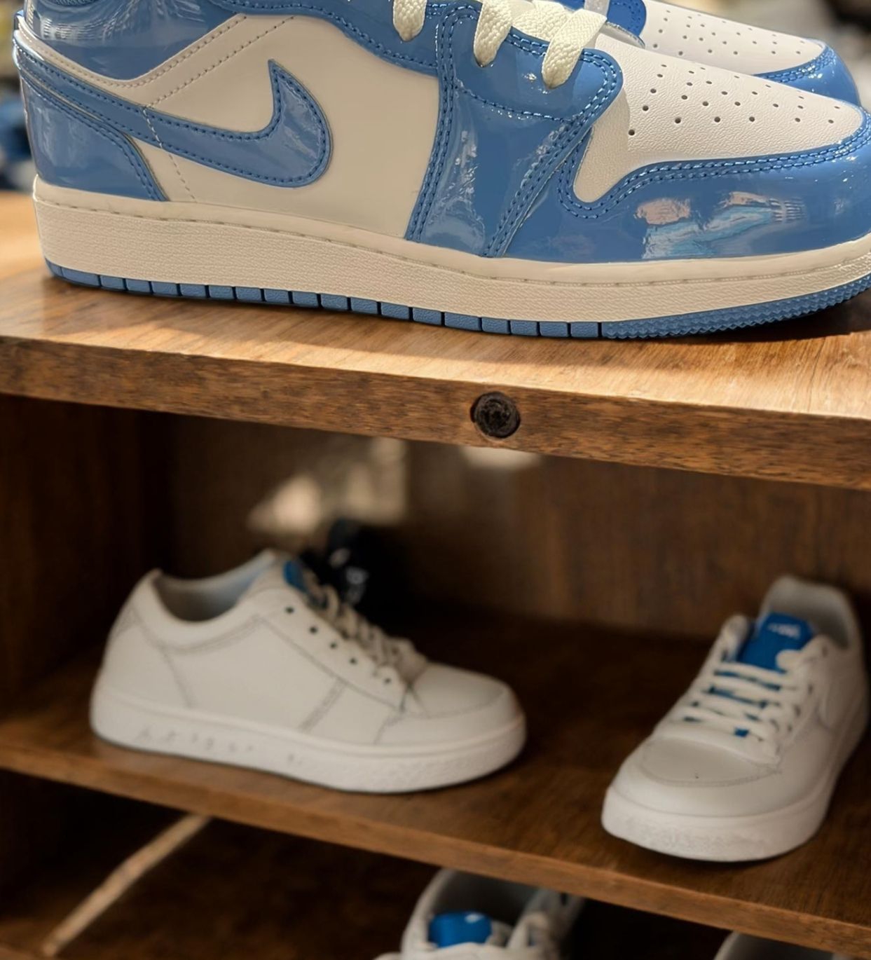 谁懂啊!这双天蓝色AJ真的美到心坎里,实物颜色比图片还要惊艳百倍! 亮面皮的材质质感拉满,光线一照自带高光buff,高级感直接溢出屏幕。男女同款的设计超贴心,不管是情侣出街还是好友撞鞋都超合适,妥妥的颜值与实用性并存的宝藏款。 AJ忠粉真的别错过,闭眼入都不踩雷!