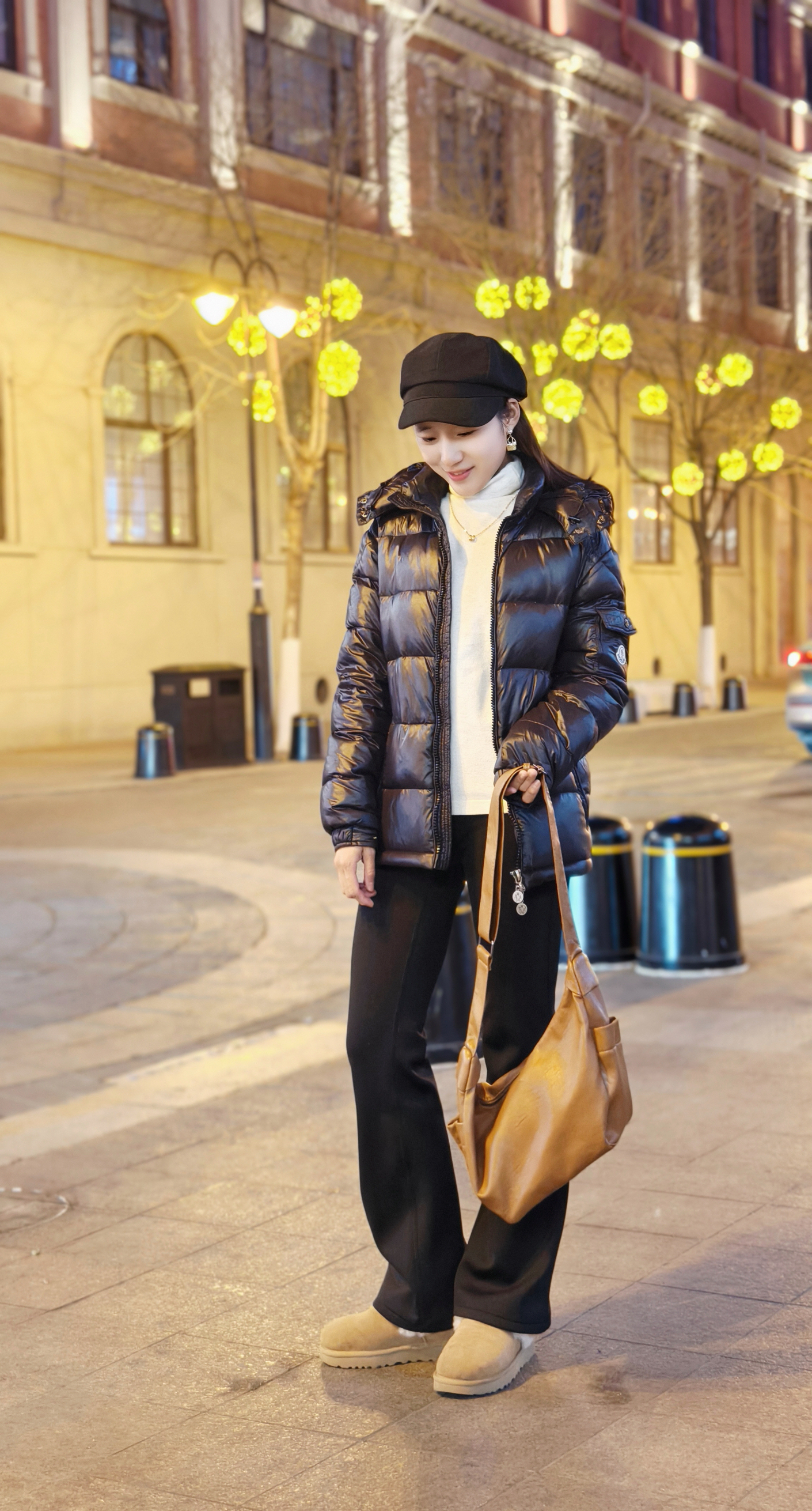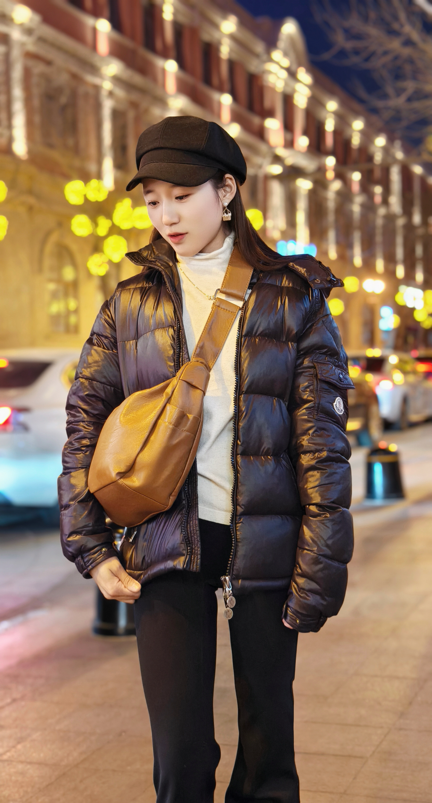 今日份有腔调穿搭🥳 UNITE STAR 饺子包➕moncler羽绒服➕sinsin瑜伽裤 饺子包可以说整个穿搭的点睛之笔🌈 ·配色很适合秋冬,焦糖棕色不会那么的凸出,但却很有格调 ·包包看着不大,但里面却内有玄机,装日常用品完全足够,肩带也可以调节随心搭配🌟 ·整体面料不错,pu材质的脏了的话用湿纸巾擦一下就好了,软乎乎的 包包整体风格偏向美拉德风,搭配棕色系很更加好看哦,搭配日常服休闲...
