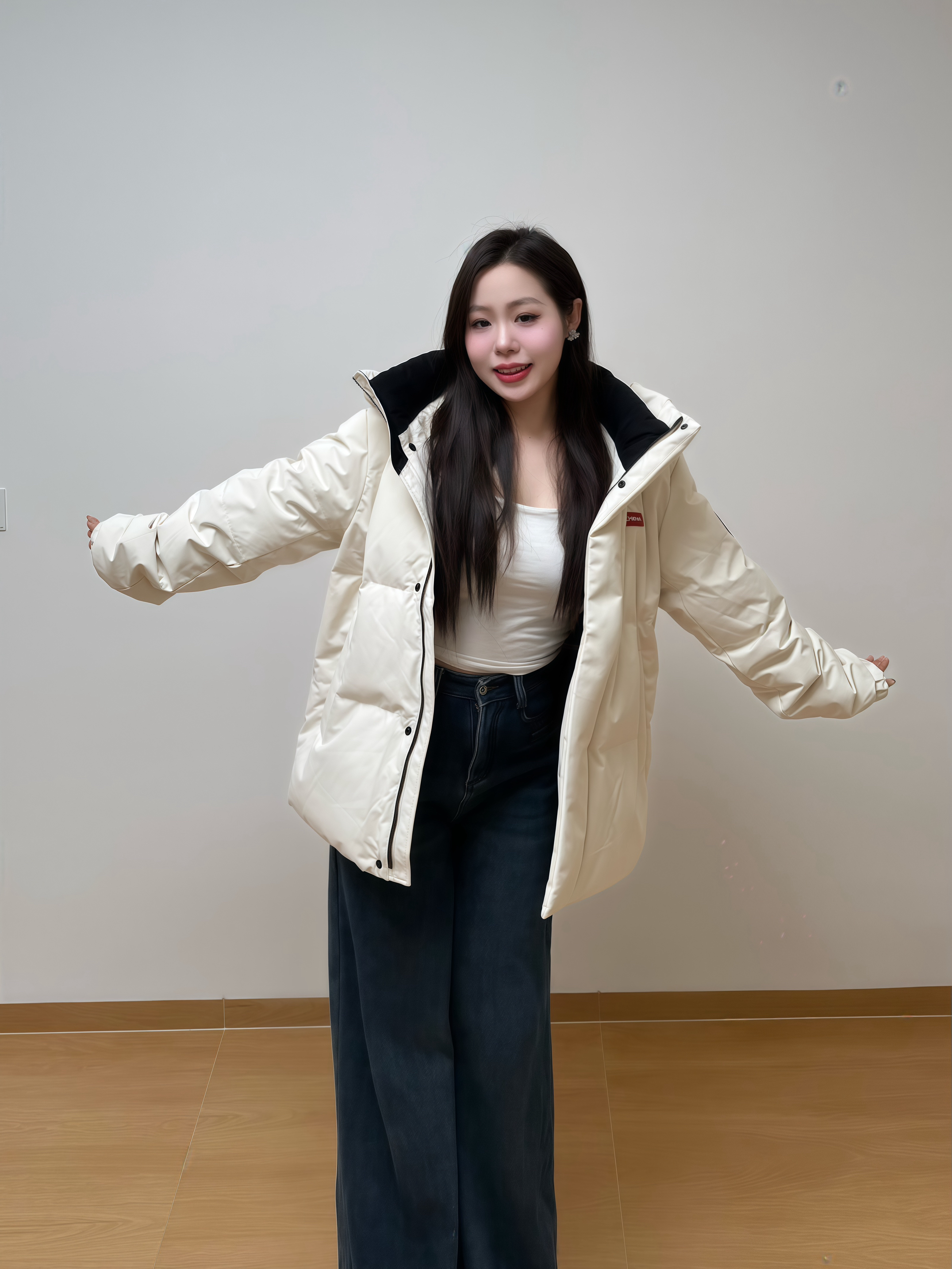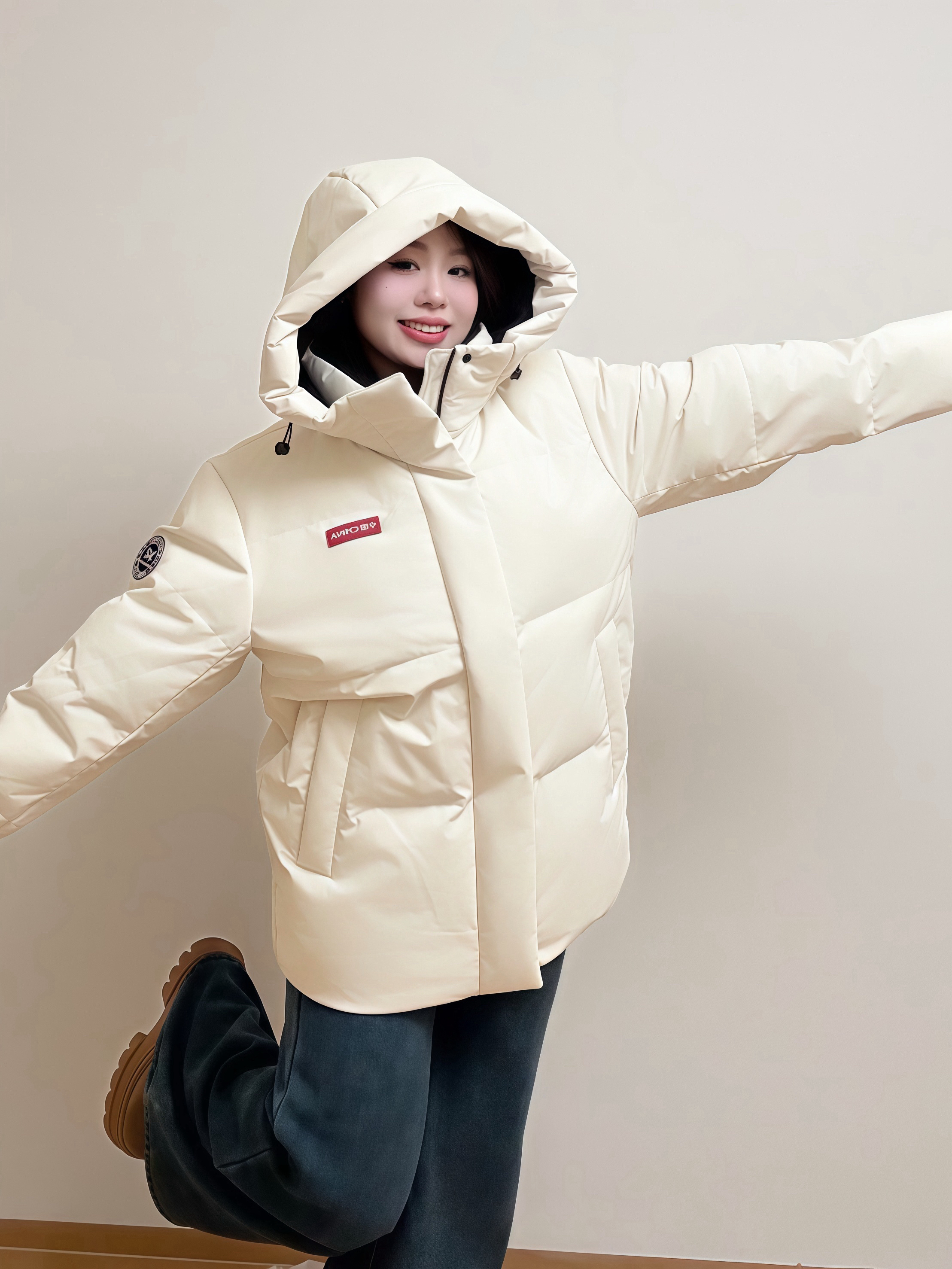 姐妹们!这件鸭鸭的白色🤍羽绒服我一穿上就忍不住转圈圈!💫 ☁️ 颜色是那种奶fufu的米白色,一点都不死白,我是黄皮穿也超显气色!瞬间感觉整个人都温柔了~ ☁️ 版型是超火的“面包块”,蓬松度满分!但一点都不会显胖,因为它是短款的!完美拉高腰线,下半身随便配条阔腿裤或者半身裙,立马拥有大长腿!📏 ☁️ 我最爱的就是它的大帽子!戴上之后感觉俺脸小了一圈,而且防风保暖一级棒,北风吹也不怕啦!去...