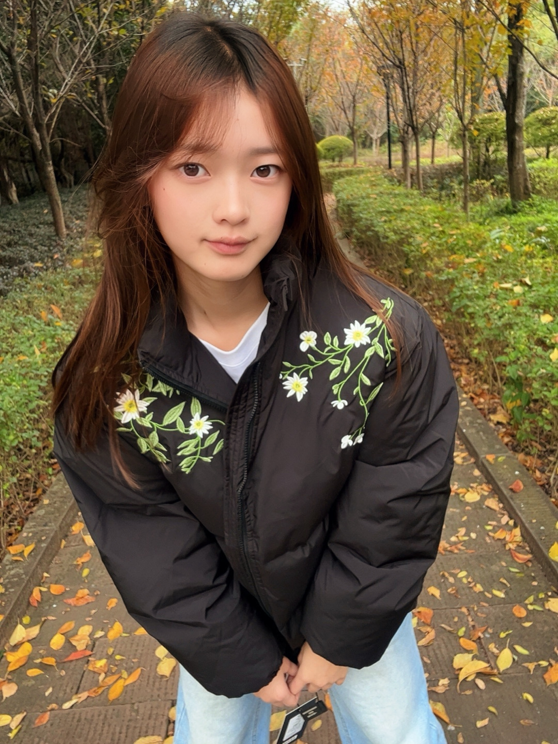 这件棉服很有质感!充棉量挺足的,而且有格子分开不用担心跑棉,立领硬挺+落肩版型上身舒服不压身,做到了保暖的同时又不显臃肿~肩背的花卉刺绣针脚密实细腻精致好看 我168cm,体重49kg,穿L码正合适,立领拉链保暖性拉满,加厚的版型在秋冬穿很有安全感~保暖又不失个性