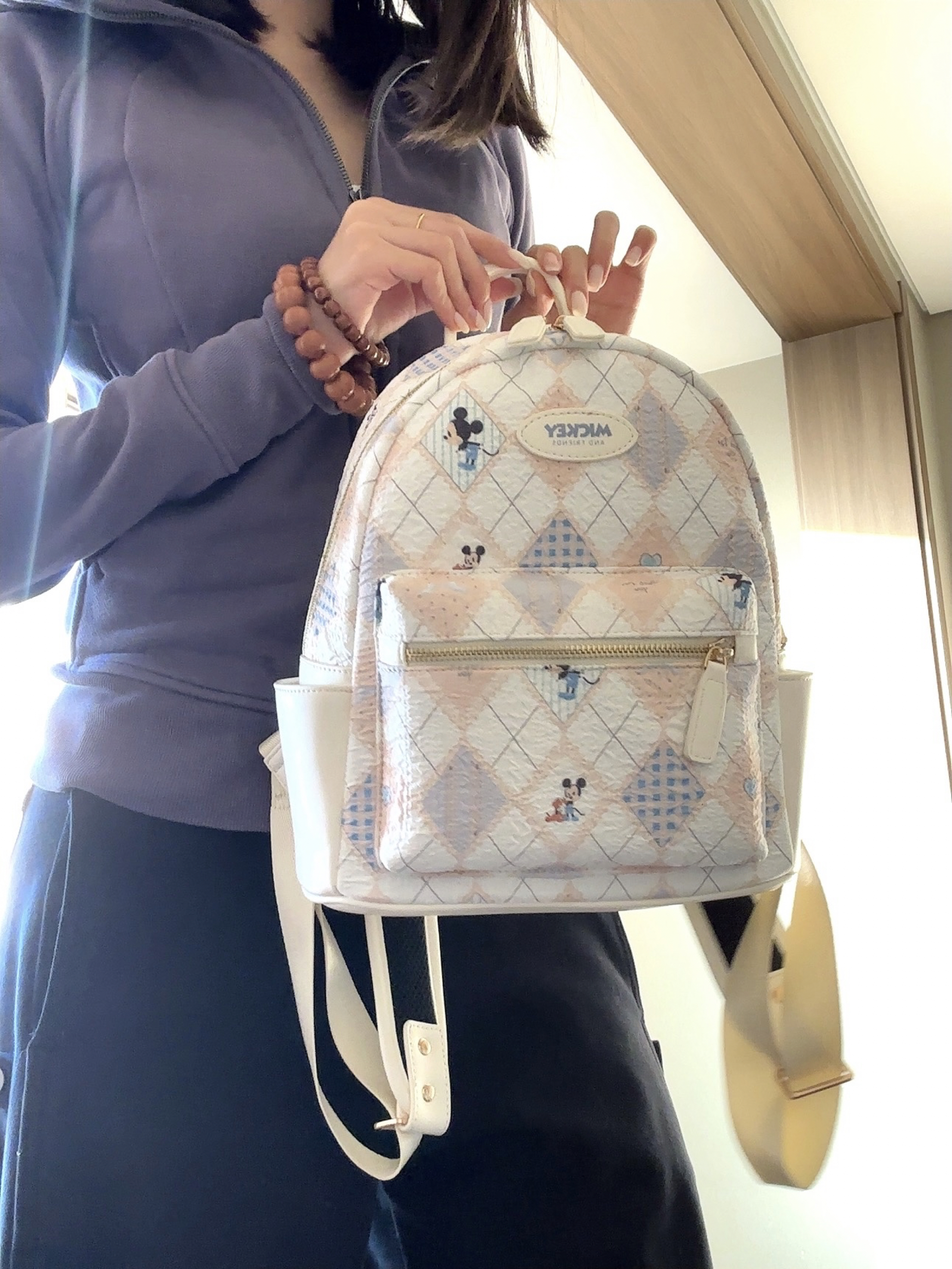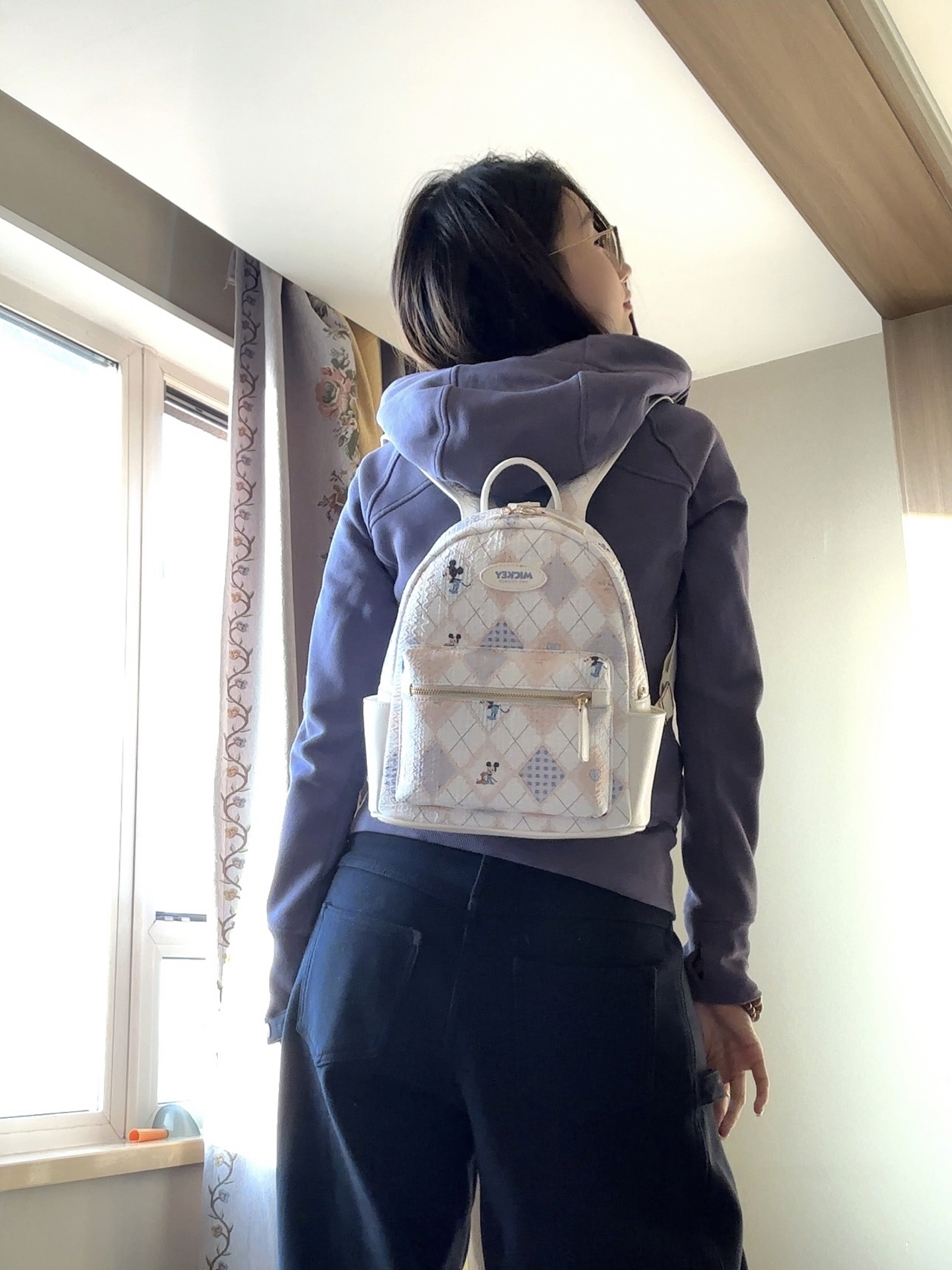 迪士尼小包很有特色的一款 面料柔软 上面还有米奇的图案 摸起来质感很到位 随意搭配休闲装!