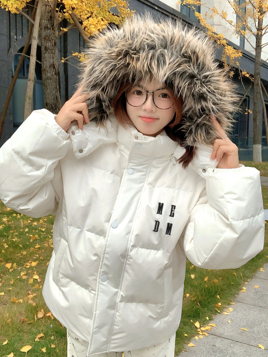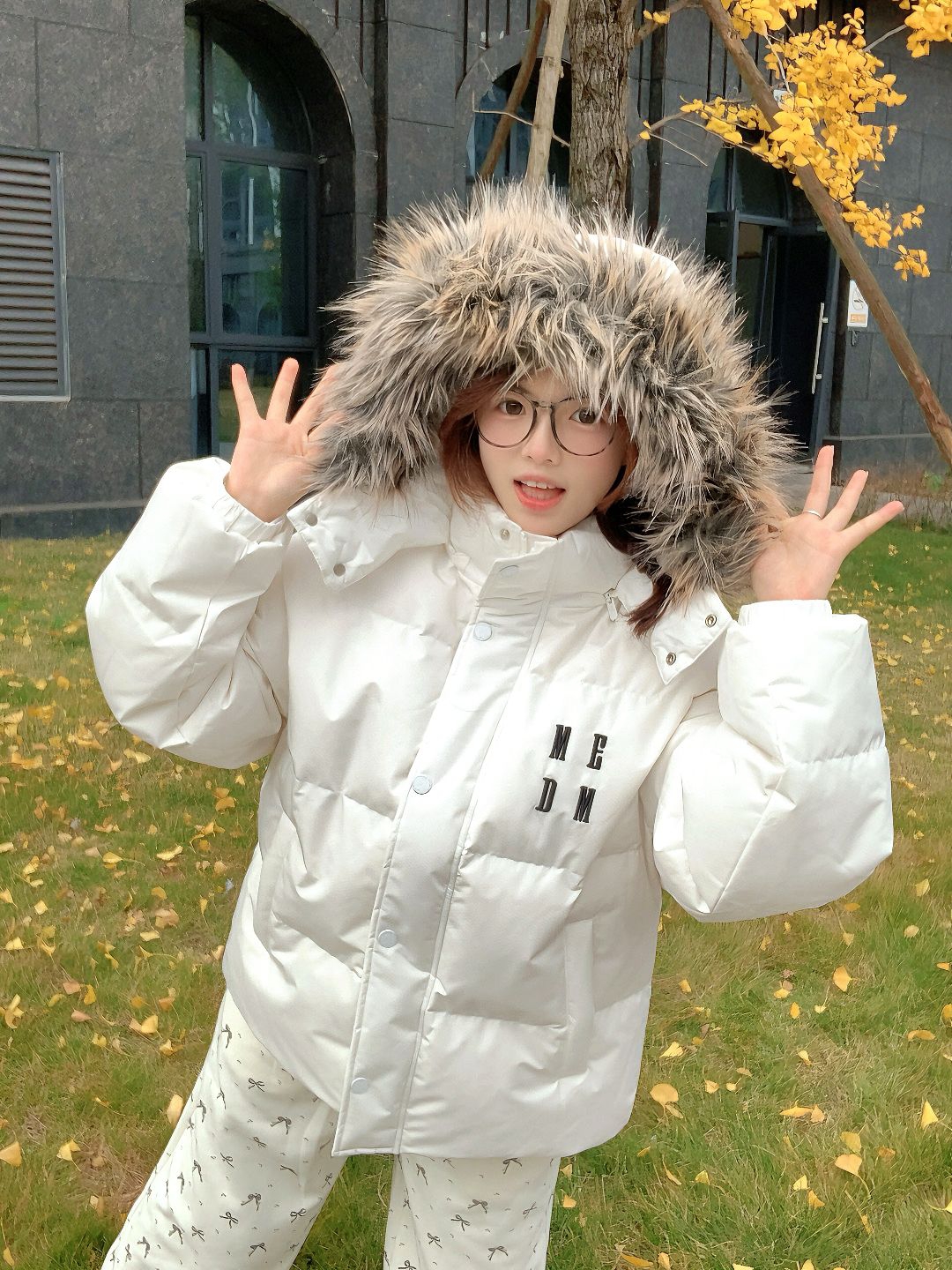 挖到宝的白色羽绒服! 毛领巨蓬松,戴上瞬间氛围感拉满 而且一点不显臃肿,宽松版型藏肉又舒服 填充很实在,搭配休闲裤或者裙子都好看,今年过冬就靠它啦~