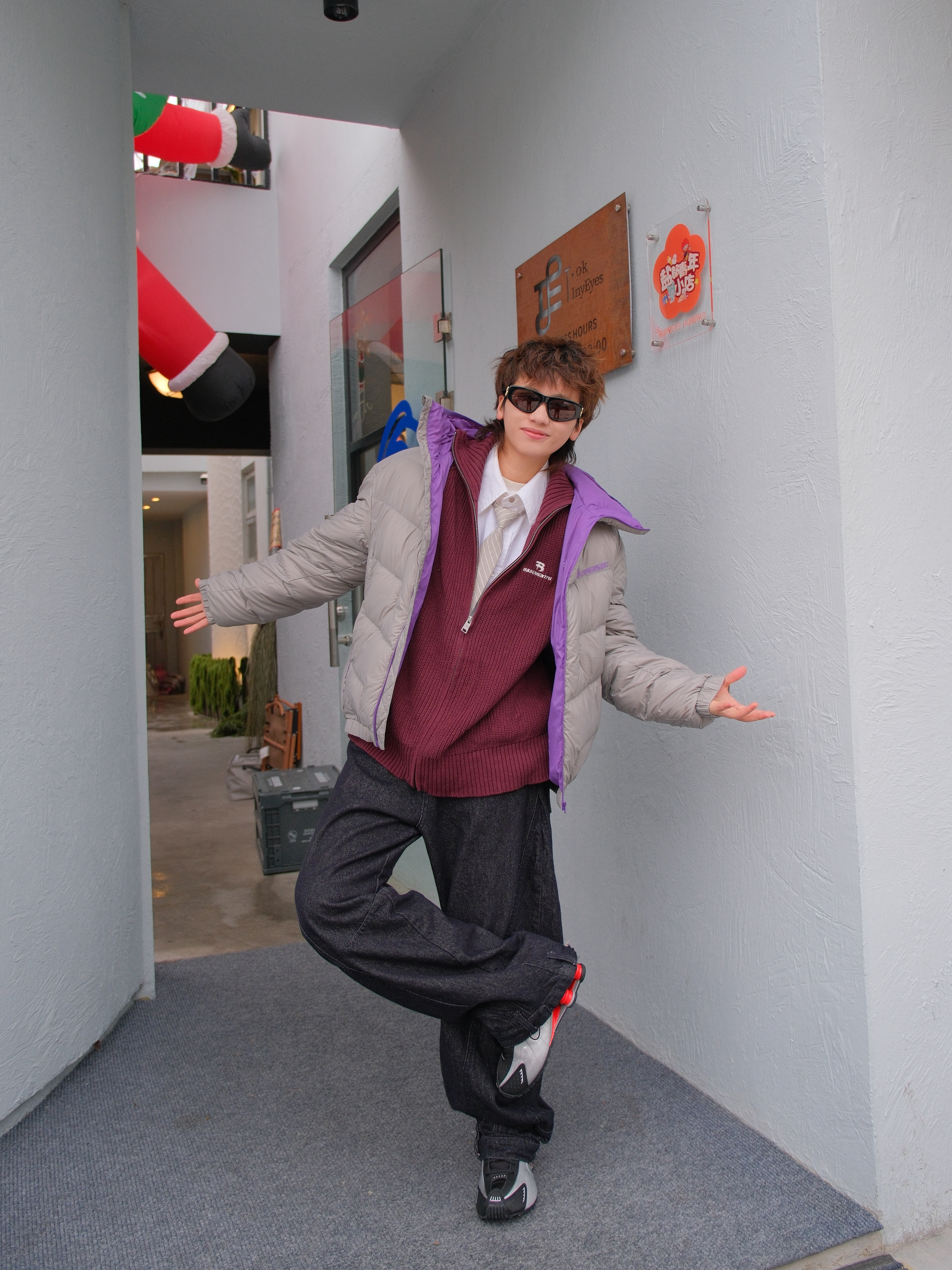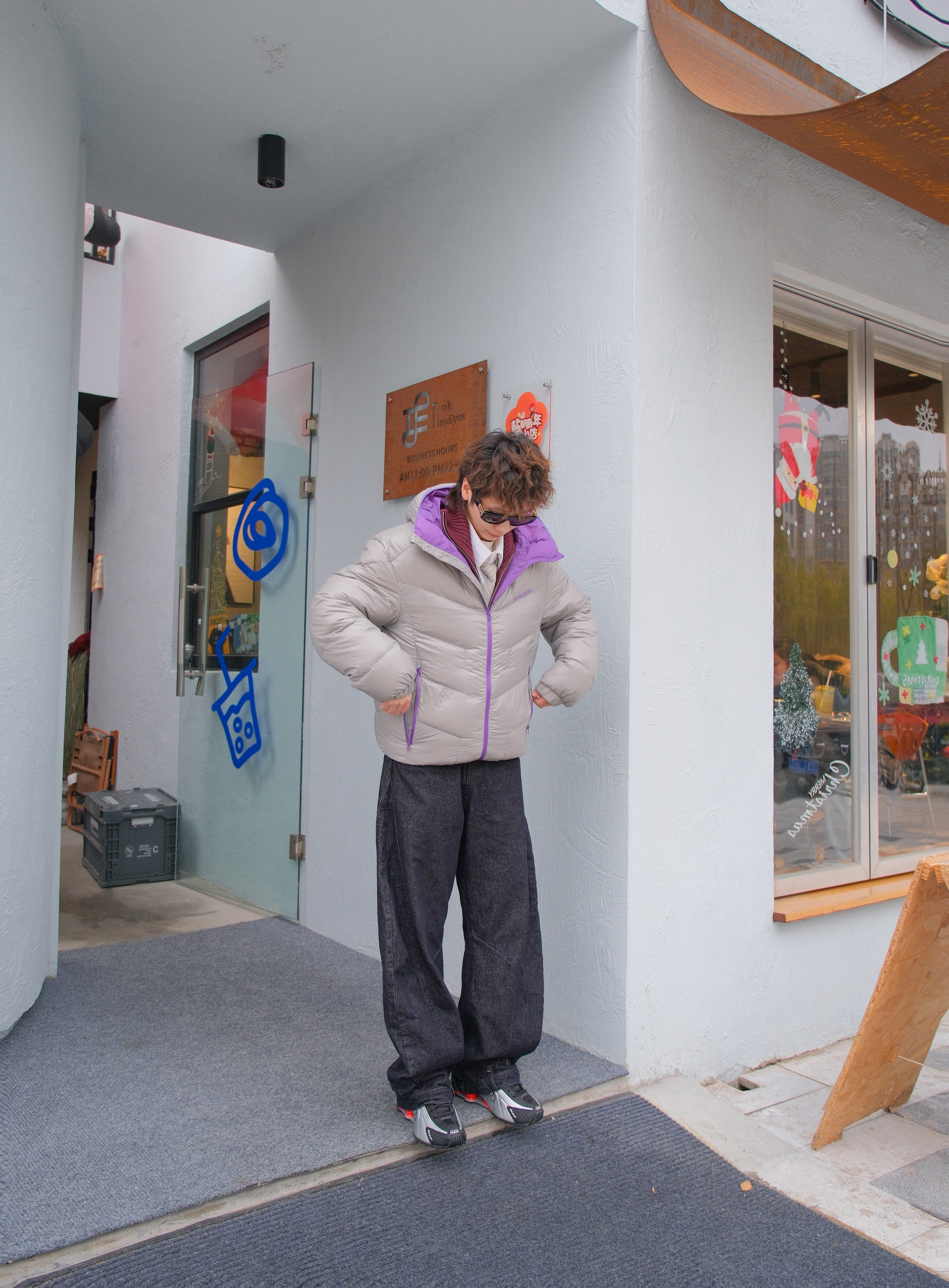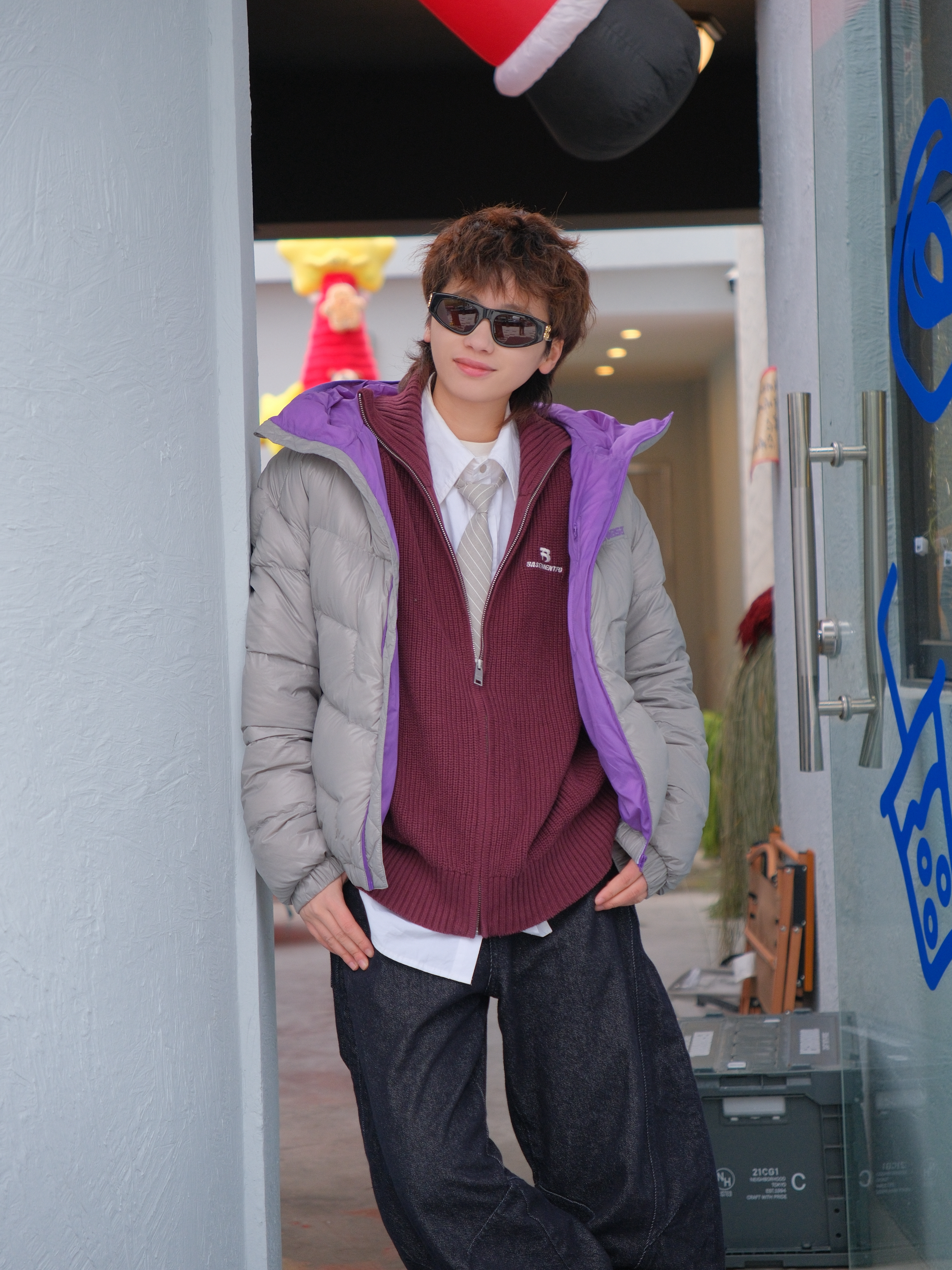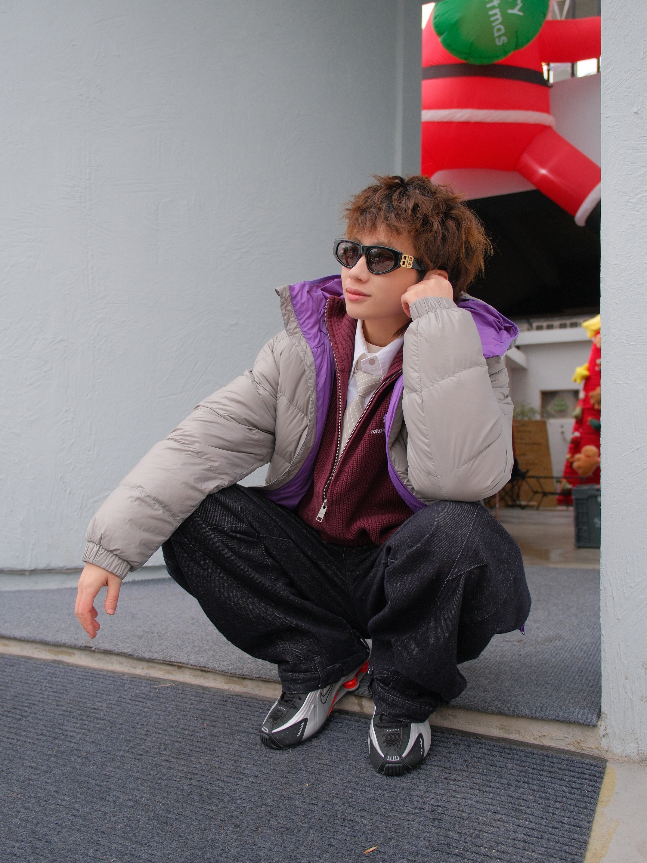 就这个叠穿既保暖又有层次感 上身 Kawasaki川崎 灰紫色羽绒服 90鹅绒面料,轻盈的包裹身体 怎么叠都不会显臃肿 内搭白色衬衫➕枣红色毛衣 灰色的领带配饰和外套配色呼应起来 下装深灰色弯刀牛仔裤 搭配nike机能风气柱鞋 无需硬抗,温度和街头感我都要 尺码参考:163cm/46kg 上身M码