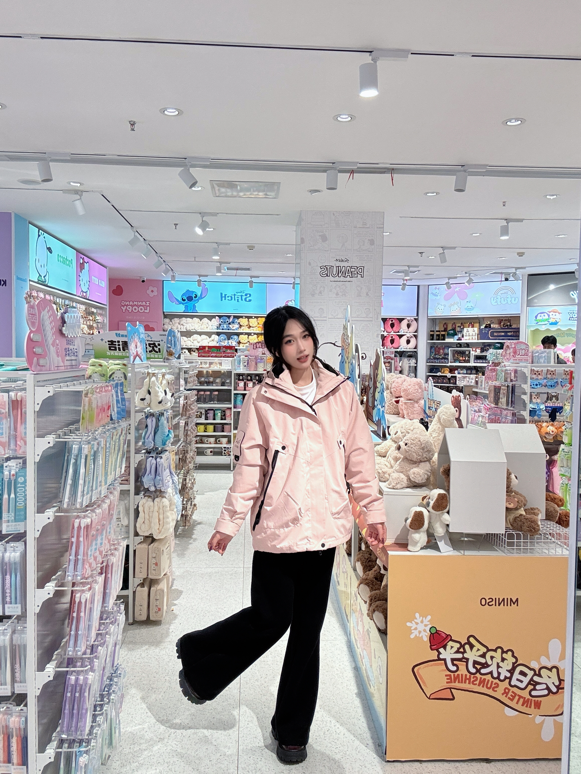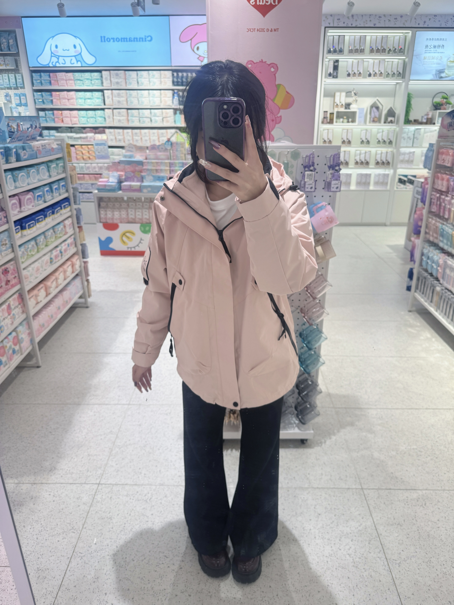 这件冲锋衣的粉色太显嫩了,既防寒保暖又百搭,在冬天也能美美出片!