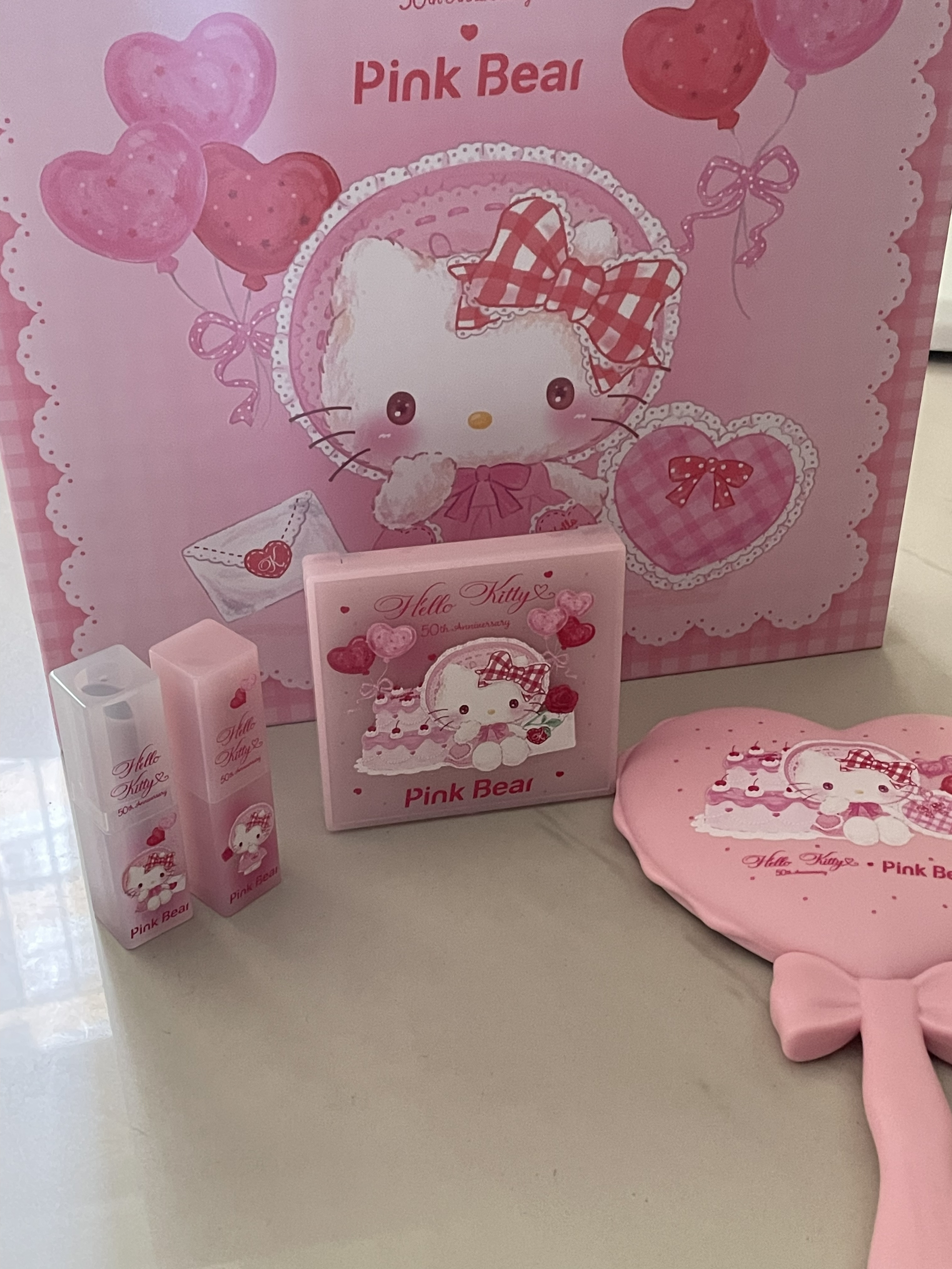 啊啊啊Pinkbear! Kitty脑袋发疯啦!!!!! 联名真的好可爱好可爱好可爱!! 哪个女孩子能忍! 粉色少女心要溢出屏幕啦 这次口红唇釉还有综合盘的调色都好适合春夏 水精华口红有两只新色 不沾杯超级适合约会 S01少女粉 清甜豆沙粉 上嘴真的很嫩啊喂 S05小幸运 杏仁奶冻色 黄皮可以涂一辈子! 联名腮红盘02 眼影高光腮红一盘拿捏 韩女高甜妹就是这个味儿