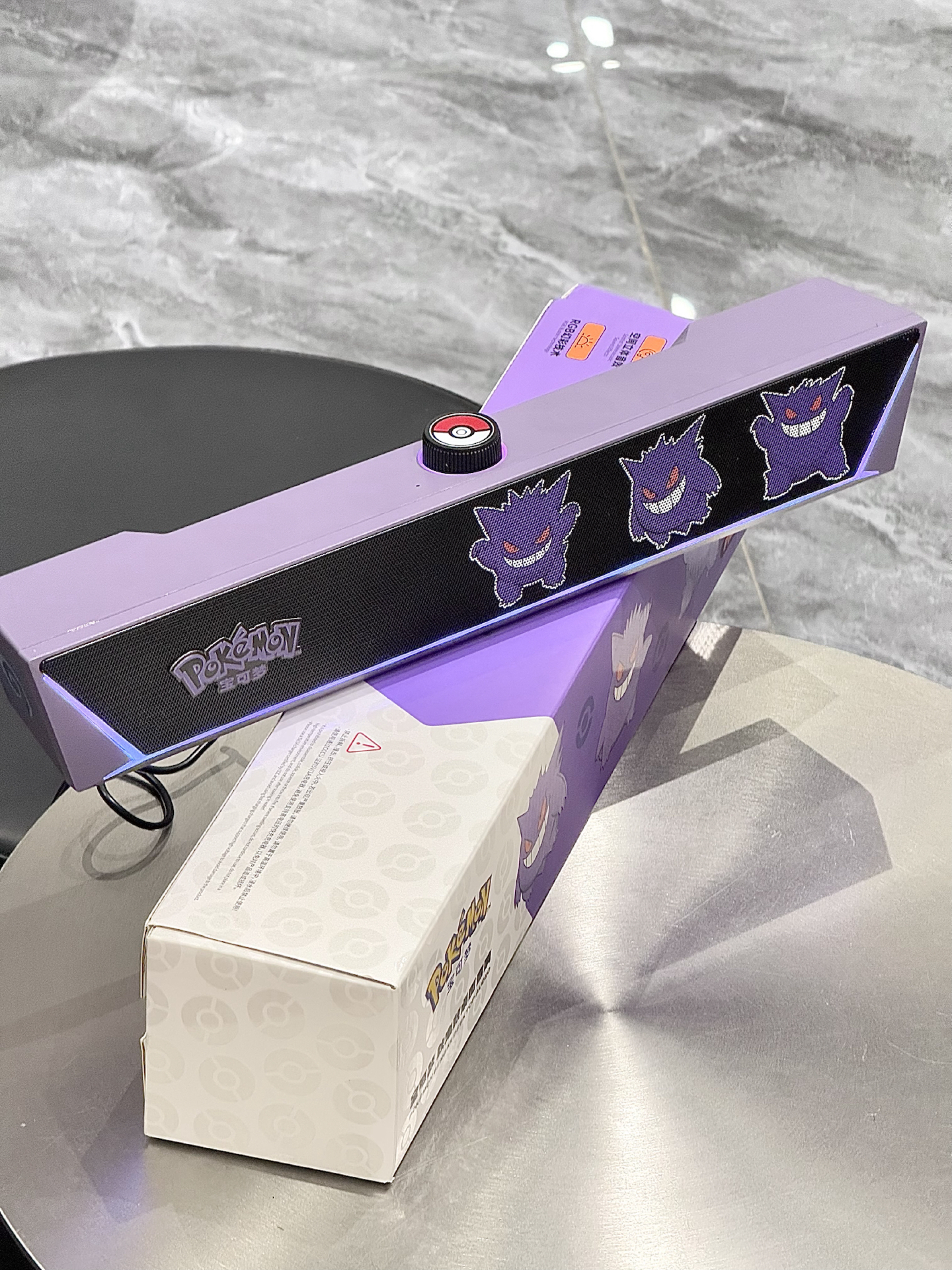挖到了宝可梦的耿鬼音响了 长条形的音响造型蛮特别的 上面也印有耿鬼的图案 精灵球就是开关 双击还可以调节灯光 试了一下 音质也很在线 礼盒装的 我觉得男孩子就会很喜欢介个!