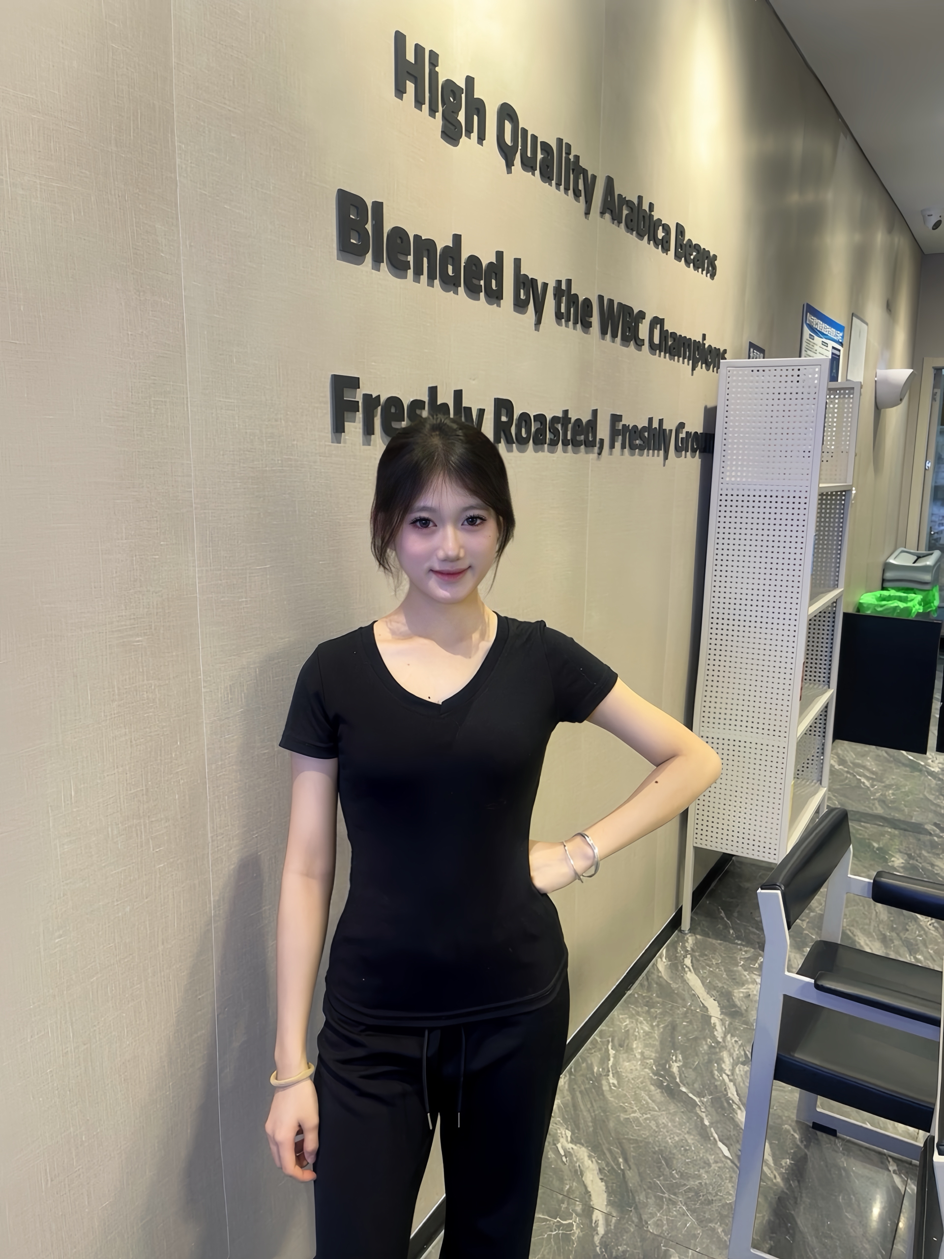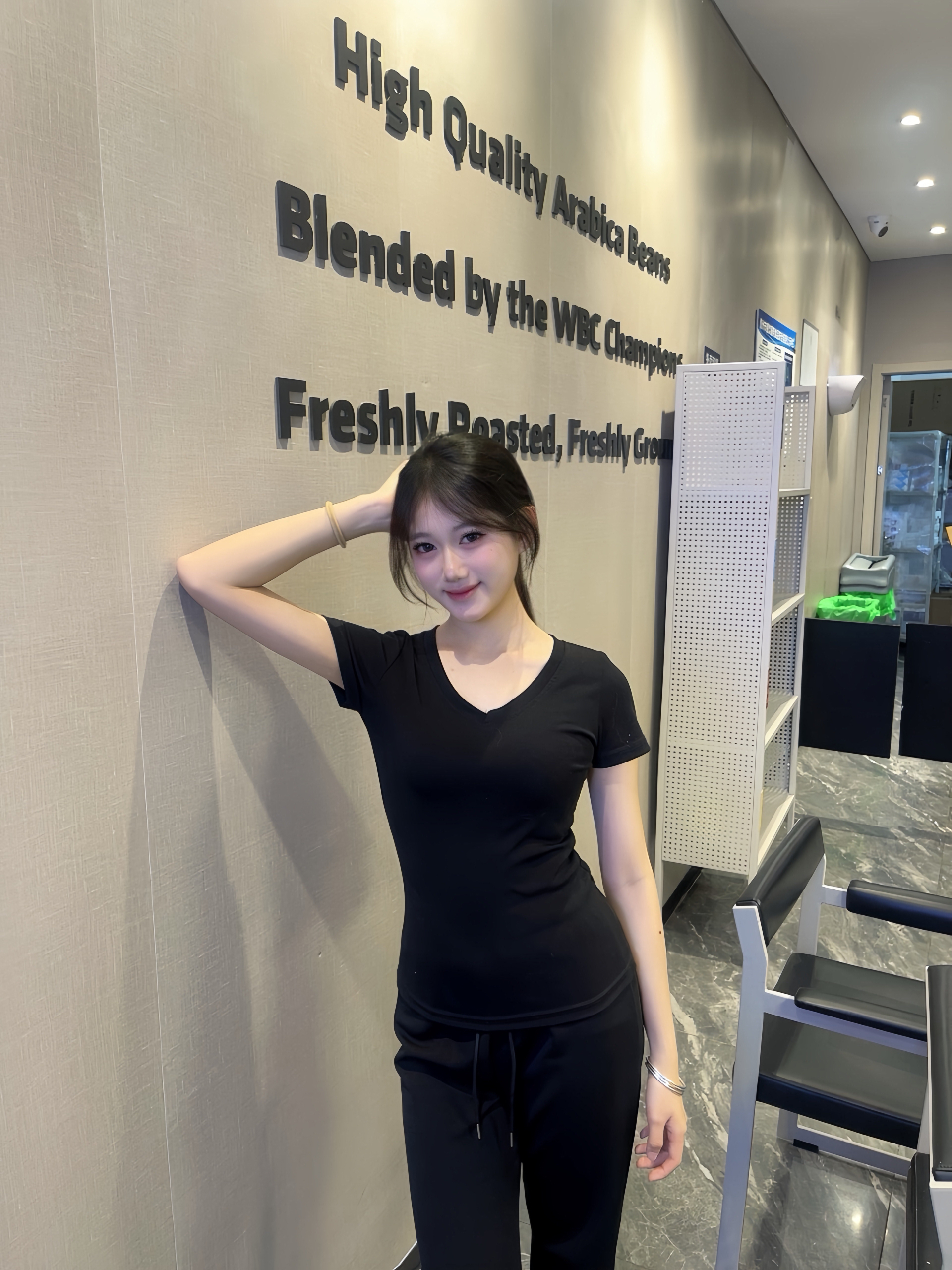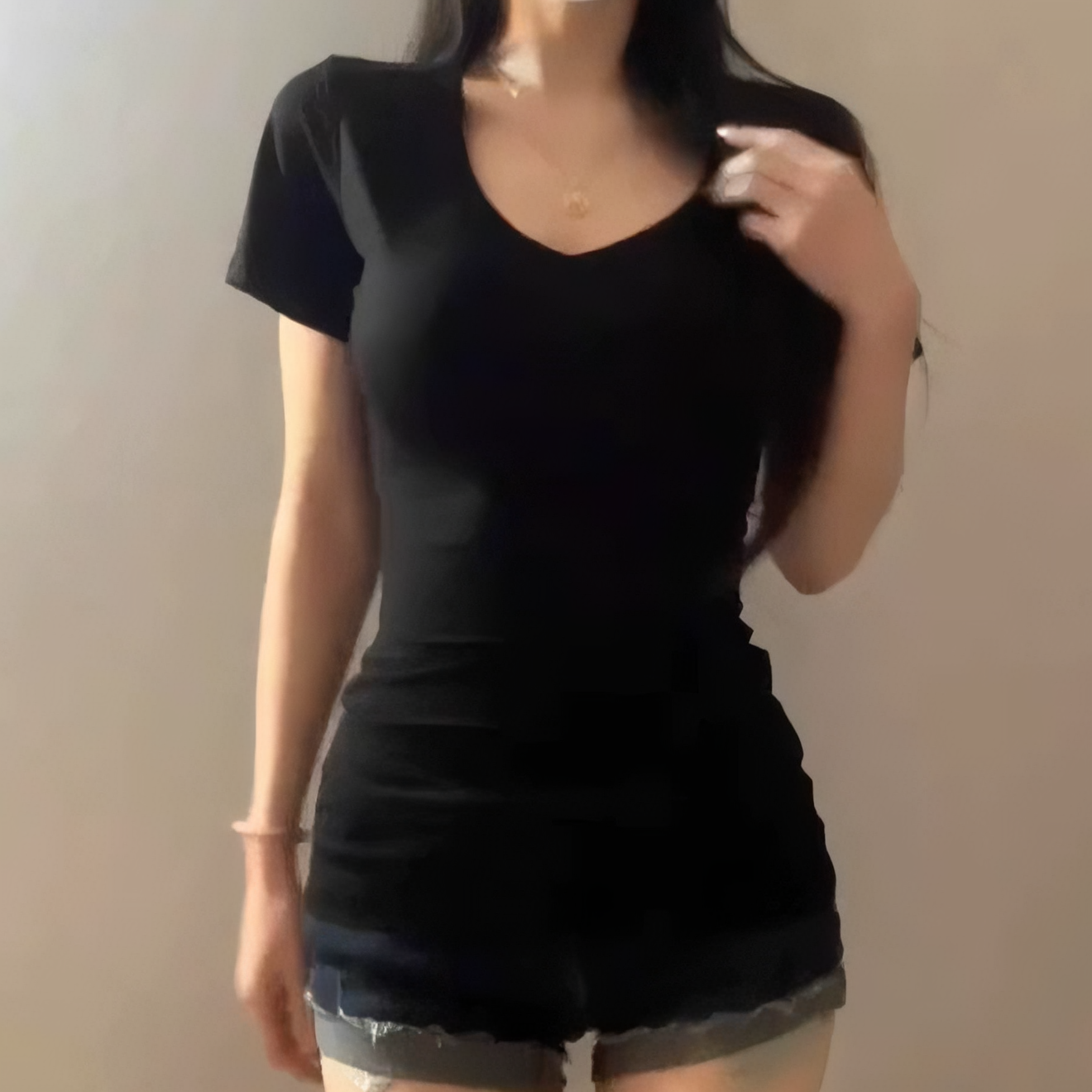 经典黑真的太藏肉了!这件V领短T能悄悄勾勒腰线,既显身材又不会有束缚感🖤面料柔软 穿着舒适 偏爱这种基础款的黑色穿搭,没有多余装饰,靠版型撑起质感。柔软的面料贴肤又透气,随便往墙边一站,都能拍出利落的感觉,简简单单就很戳我。