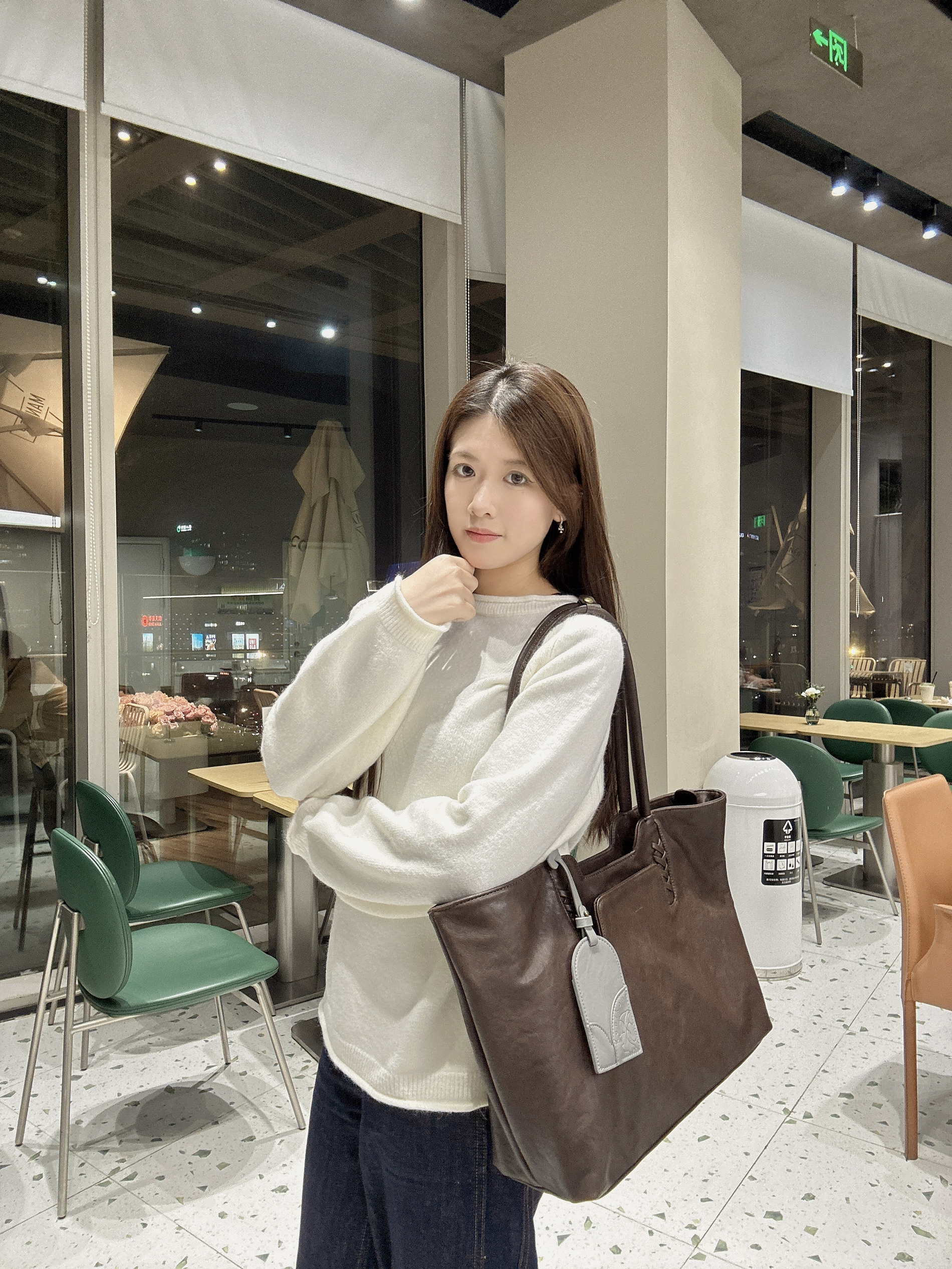 这个颜色真的很耐看 巧克力棕偏深 上身很有质感 🤎 不是那种亮皮 带一点自然的皮质光泽 包型很挺 装东西也不容易塌 容量对通勤很友好 电脑 文件 水杯都能一起放 📄💻 皮质摸起来偏软 拎着不会硌手 肩带长度刚好 单肩背也不会滑 整体很干净 不需要刻意搭配 日常上班 出门都能直接拎 属于越用越顺手的那种 ✨