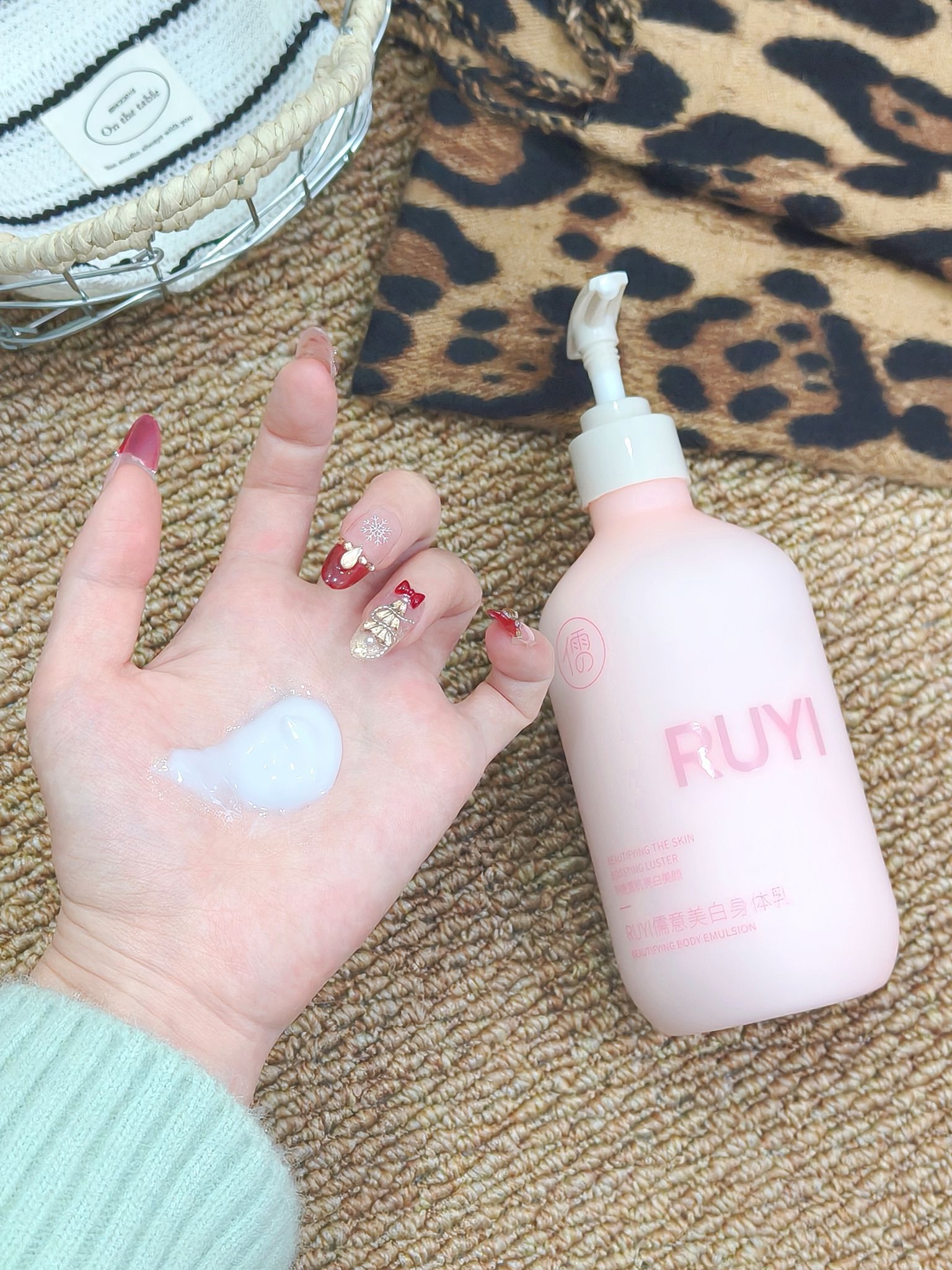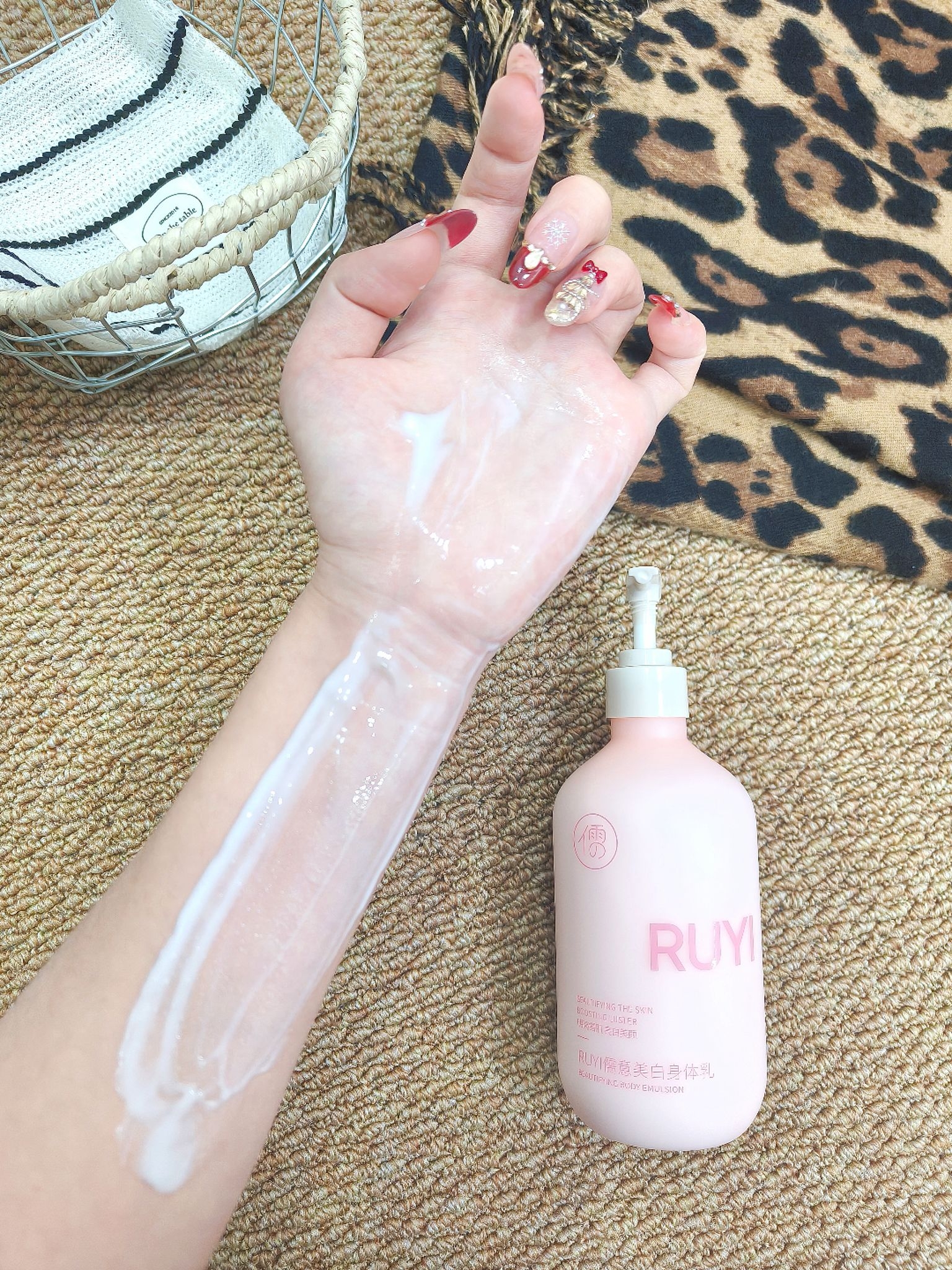 大干皮姐妹请集合 一到秋冬腿上就起皮 答应我一定要试试这个儒意烟酰胺美白身体乳 第一次泵出来以为是爽肤水 流动性强到离谱 抹开水水嫩嫩很快吸收 第二天早上皮肤还是滑溜溜的 像刚剥壳的鸡蛋 香味是那种淡淡的白桃乌龙香 洗完澡涂完钻进被窝 感觉自己像块行走的水蜜桃软糖 坚持用不仅变白了不少,皮肤也水润啦 现在穿短裤敢自信露腿了
