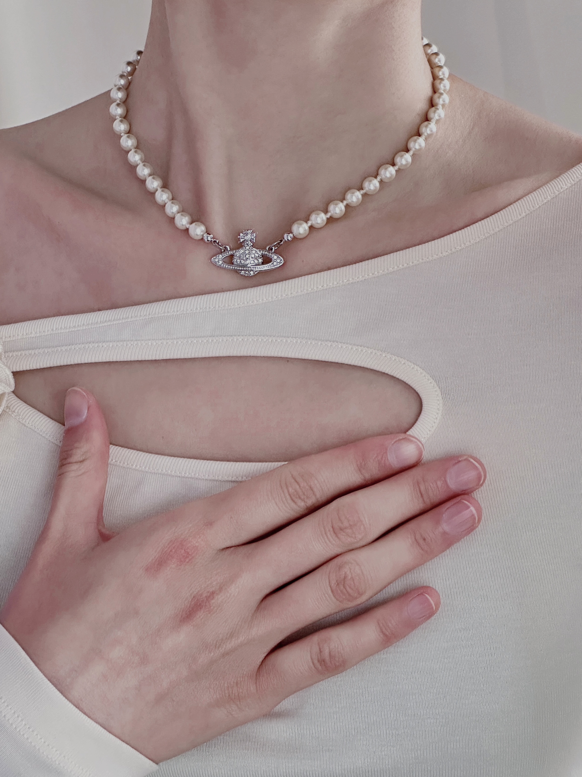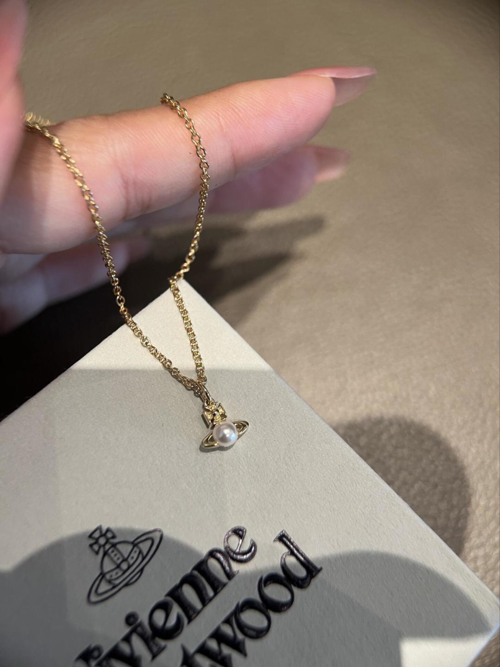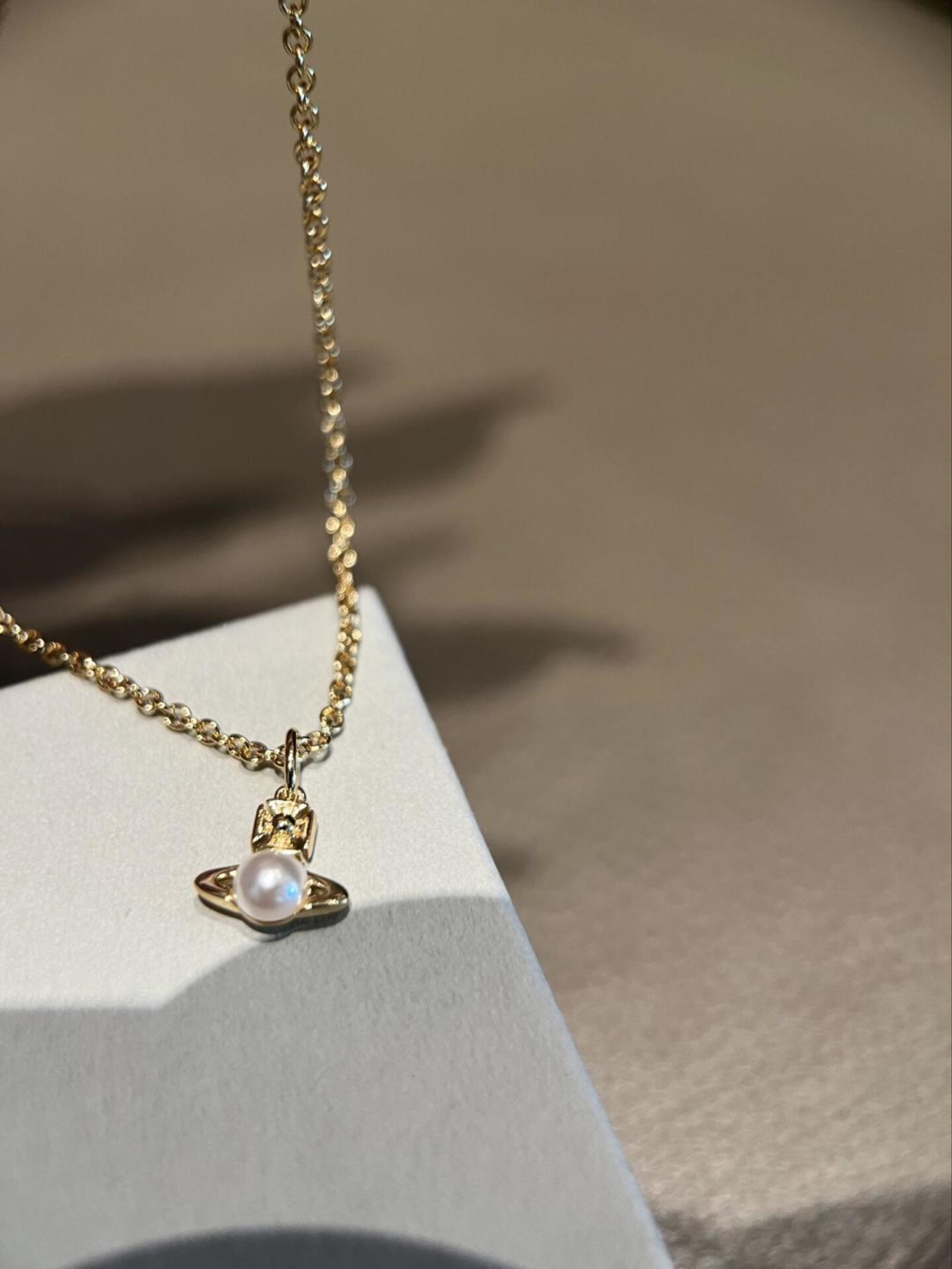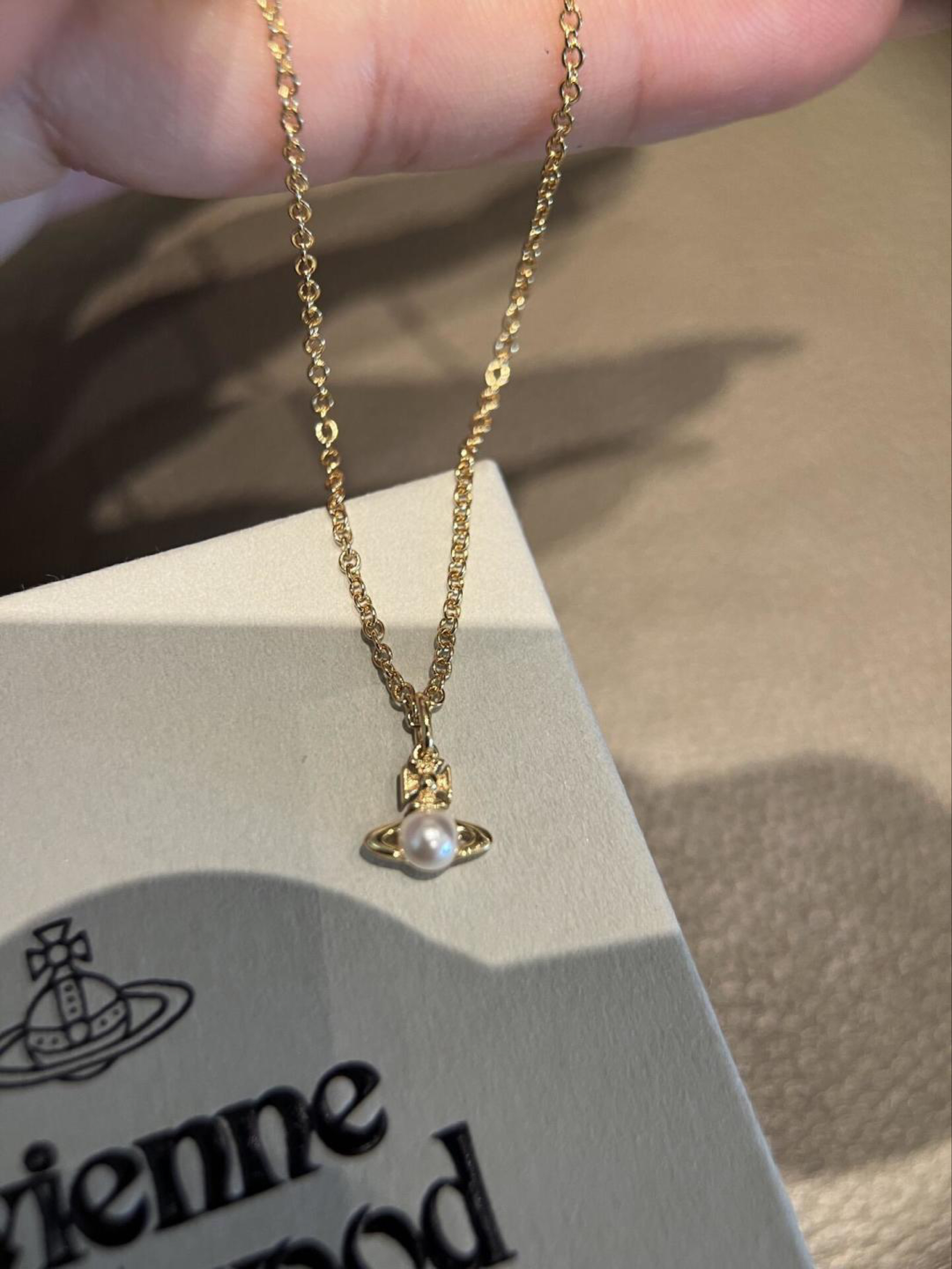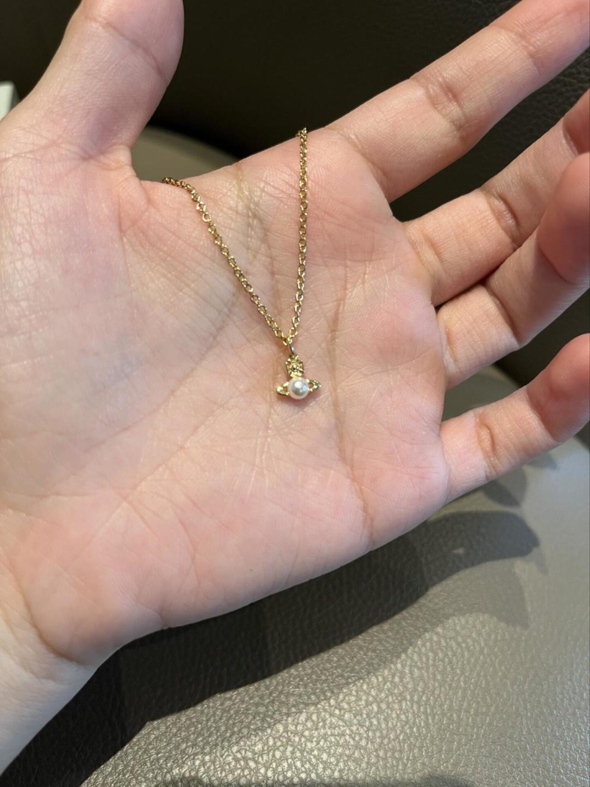 这款项链来自 vivienne westwood/维维安·韦斯特伍德 经典🪐系列 采用复古金色链条+天然淡水珍珠 搭配标志性土星吊坠,精致小巧 日常佩戴或叠戴都很出彩 土星象征无限与自由,珍珠增添优雅气质 无论休闲还是正式场合都能轻松驾驭 展现独特品味#