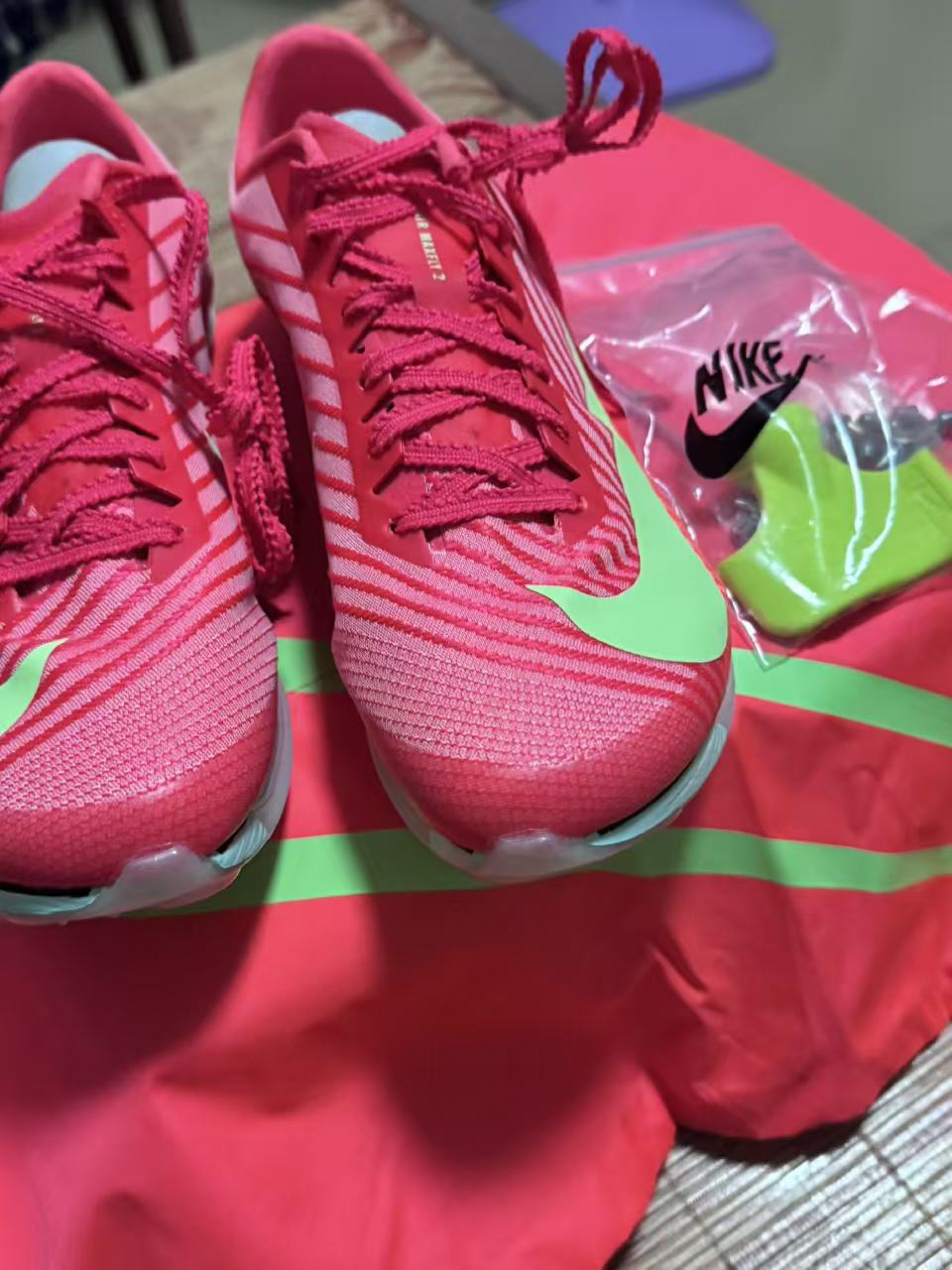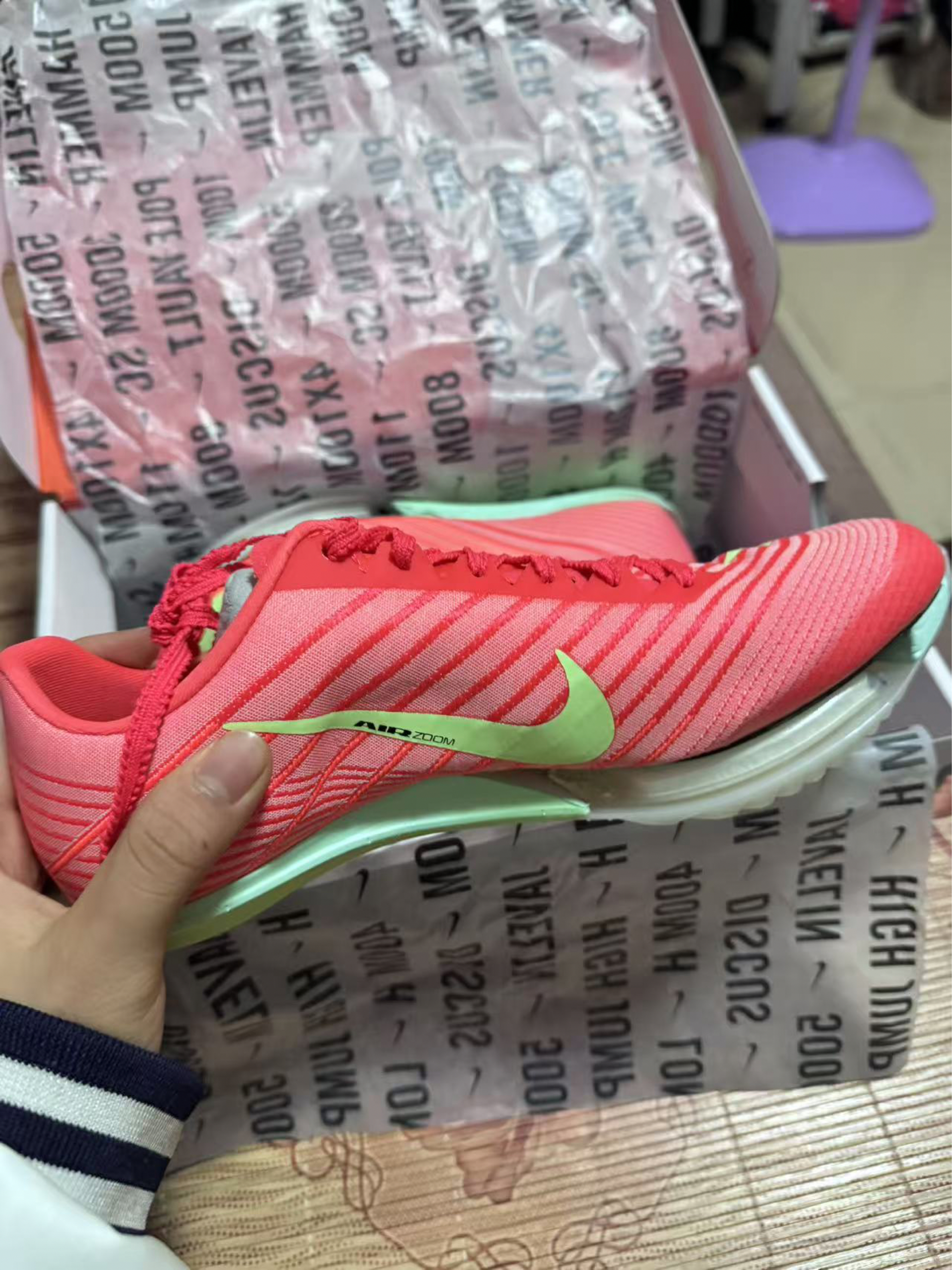 本篇笔记关联了【苏炳添同款 】 Nike Air Zoom Maxfly 2 Proto 跑鞋 缓震回弹田径碳板运动短跑 亮深红/水洗珊瑚红/爆炸绿黄/泡沫薄荷绿/黑紫/微黄绿等商品,为用户提供真实的使用体验和购买参考。