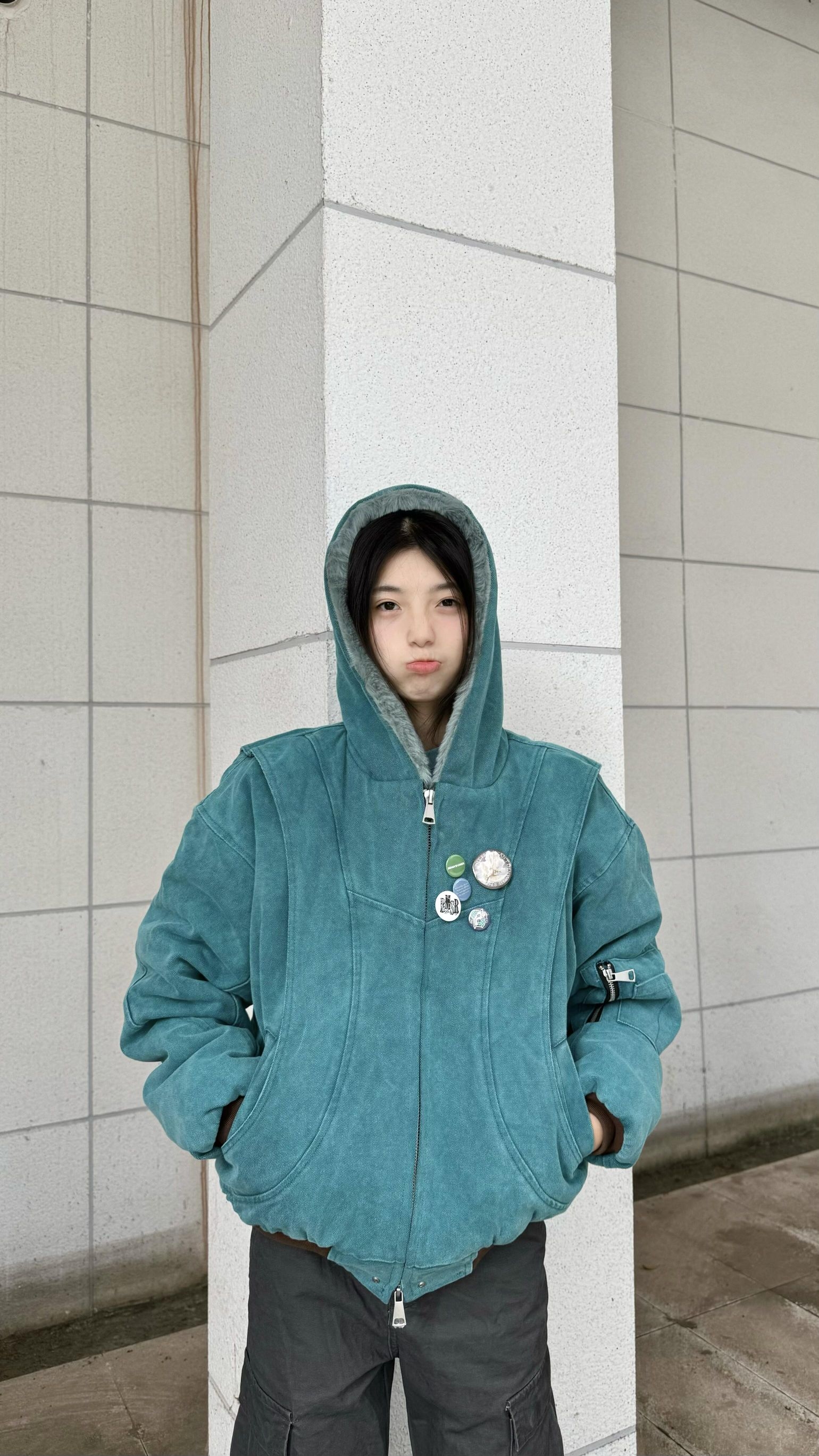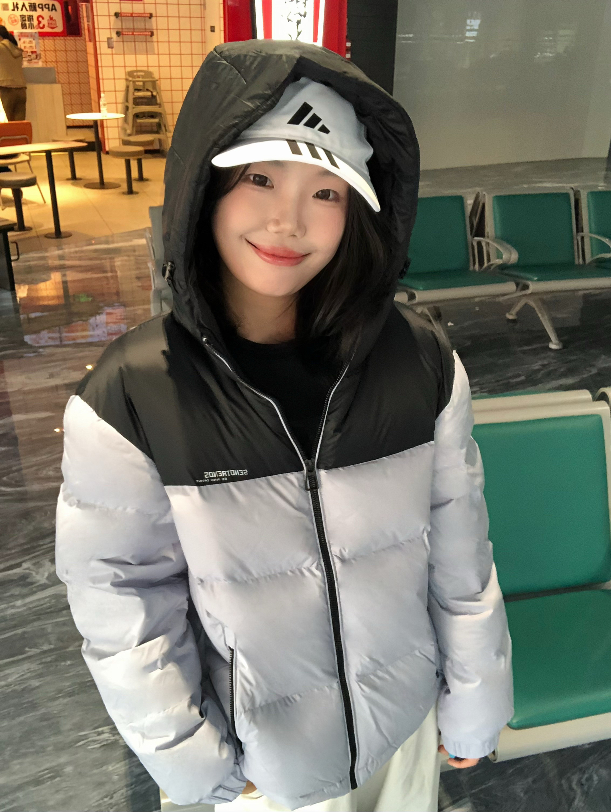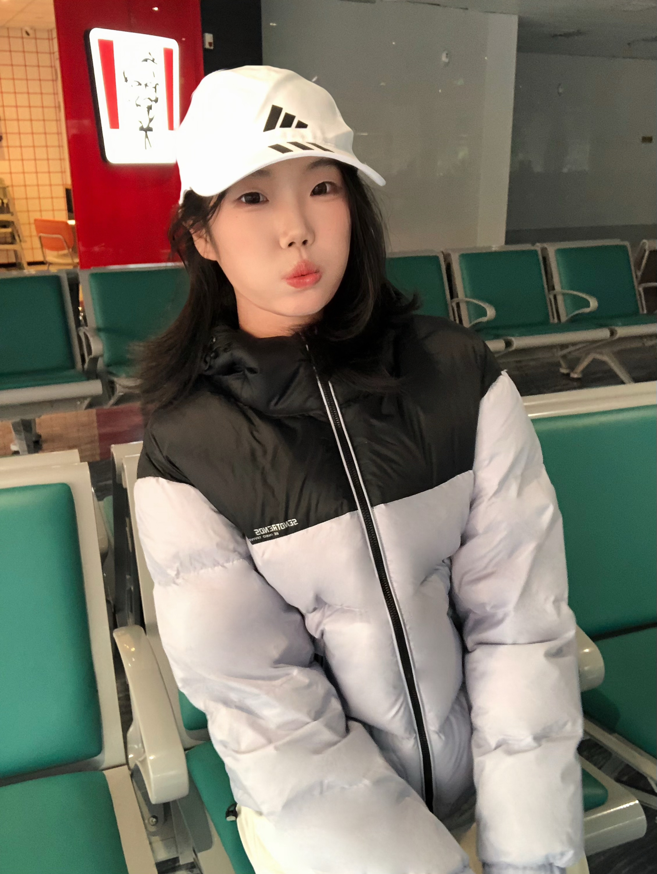 再冷也要搞穿搭 黑紫拼接羽绒搭配阿迪棒球帽 保暖不失潮流 羽绒上身轻薄不压身 163/100M