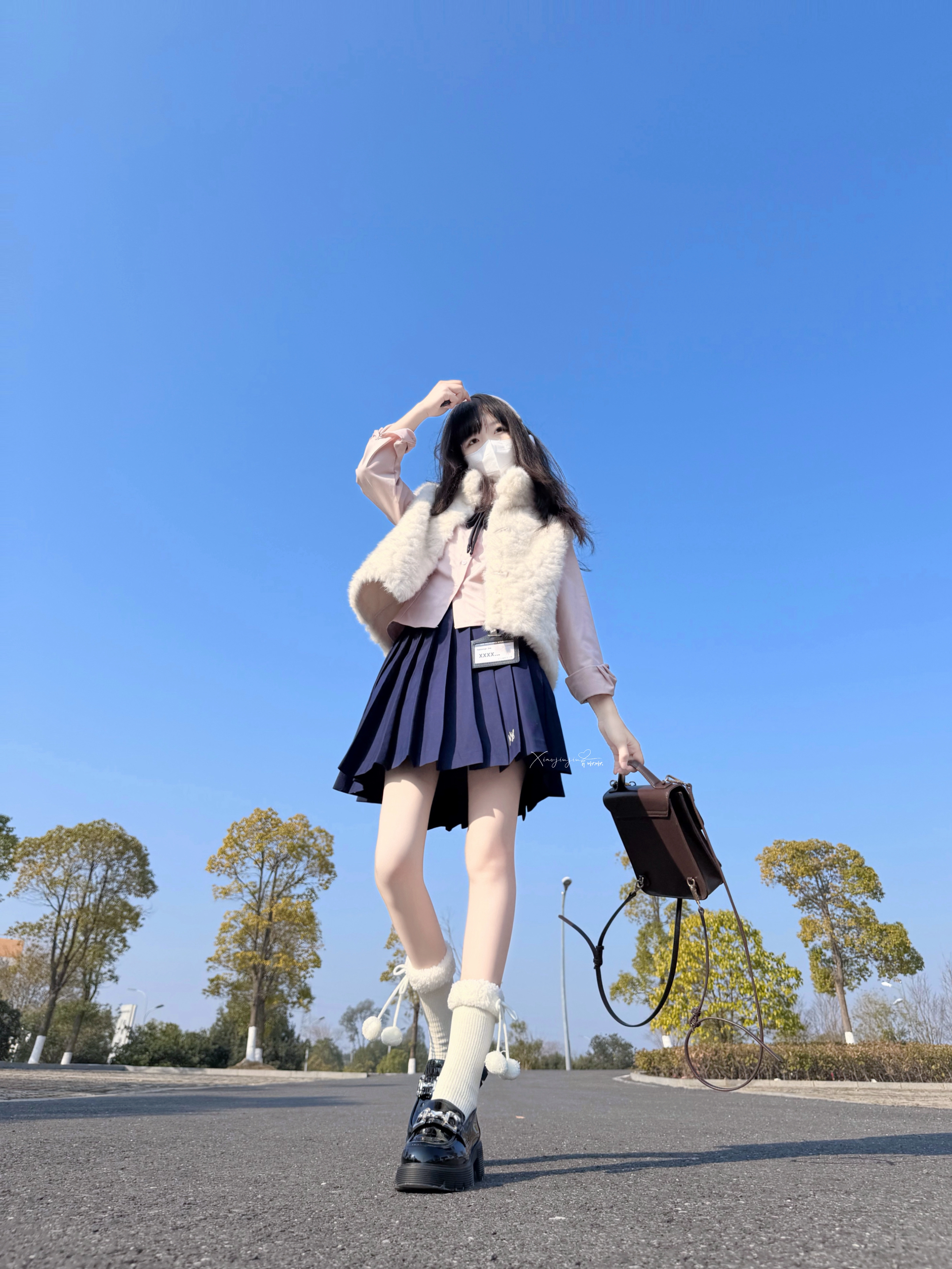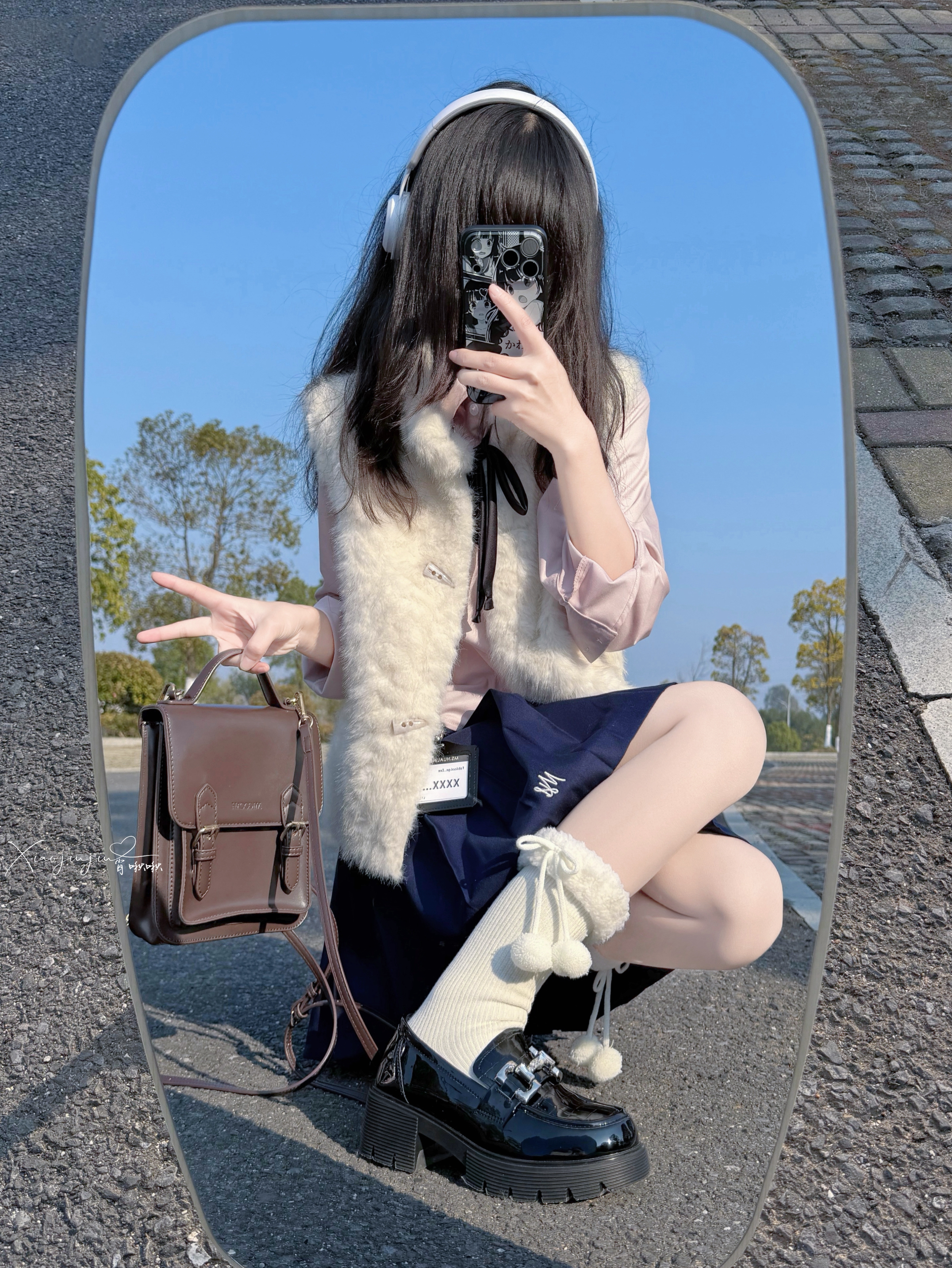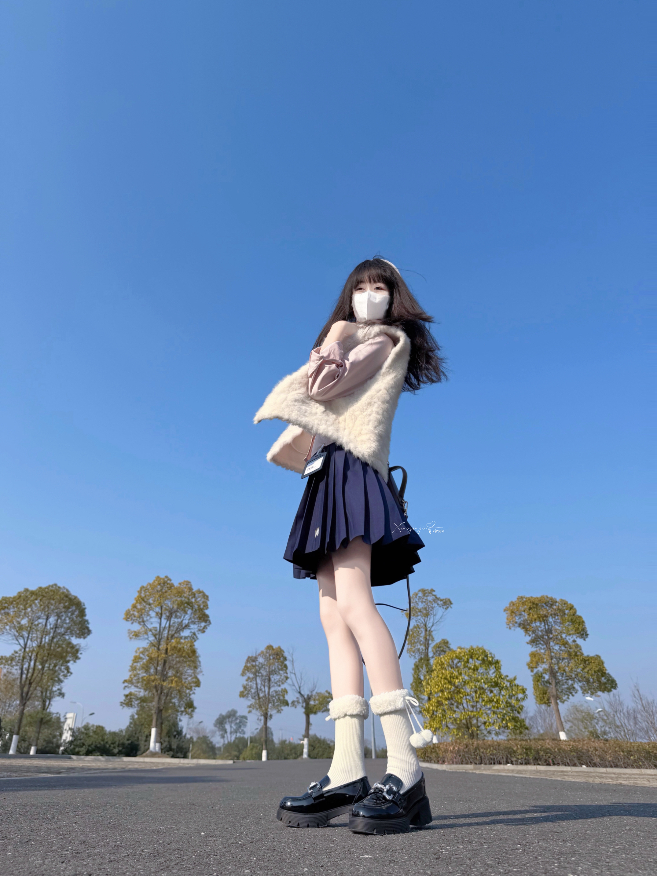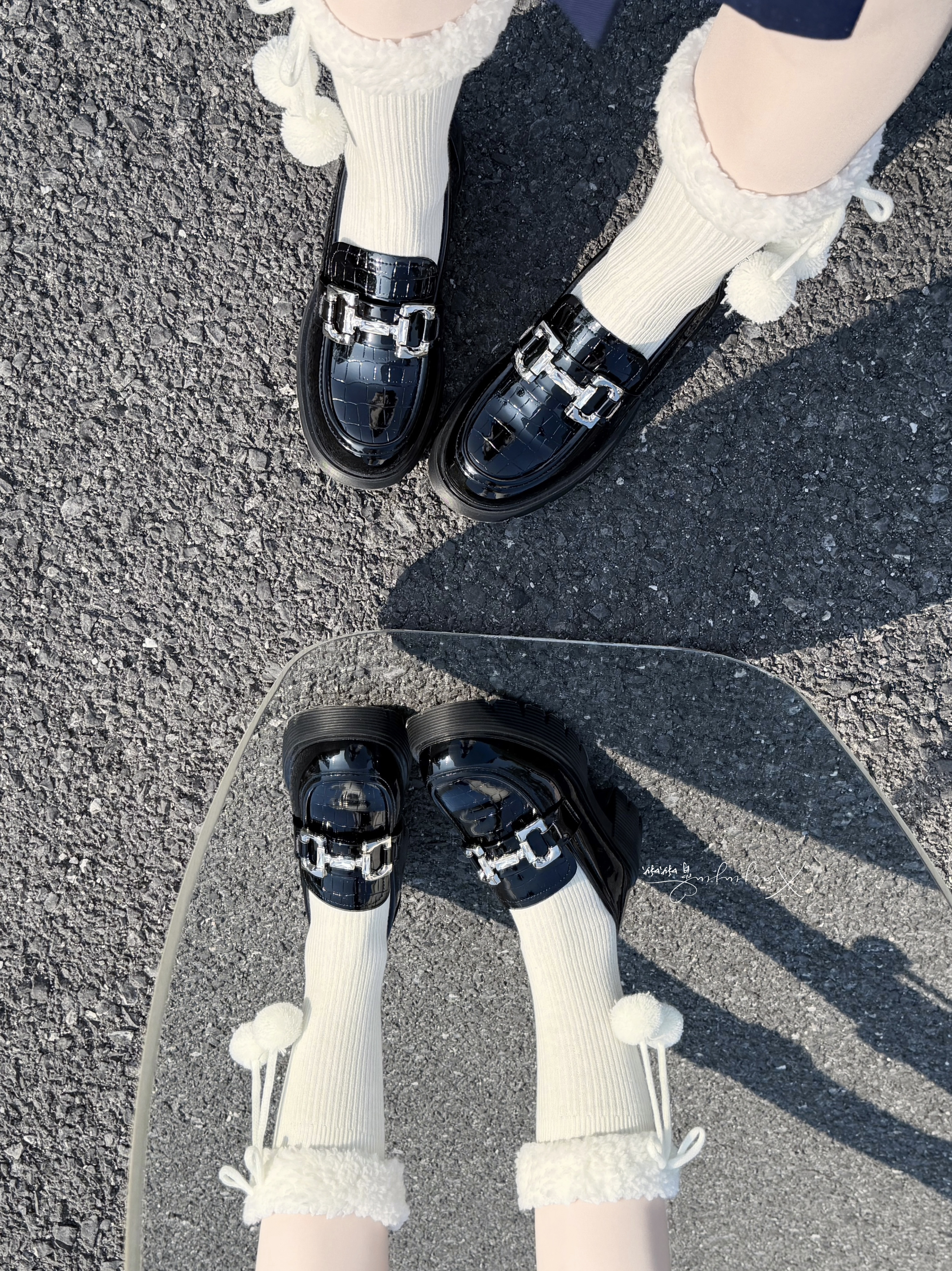 今天也是阳光灿烂的一天☀️ 早上啾啾要出门上早自习,起晚了 搭配了黑色小皮鞋👞和绀色半身裙 是青春氧气感女孩👧 鞋子表面仿蛇皮纹路,带点跟,穿起来舒服~ 一路狂奔,老师还没有到 顺利逃过一劫~😌