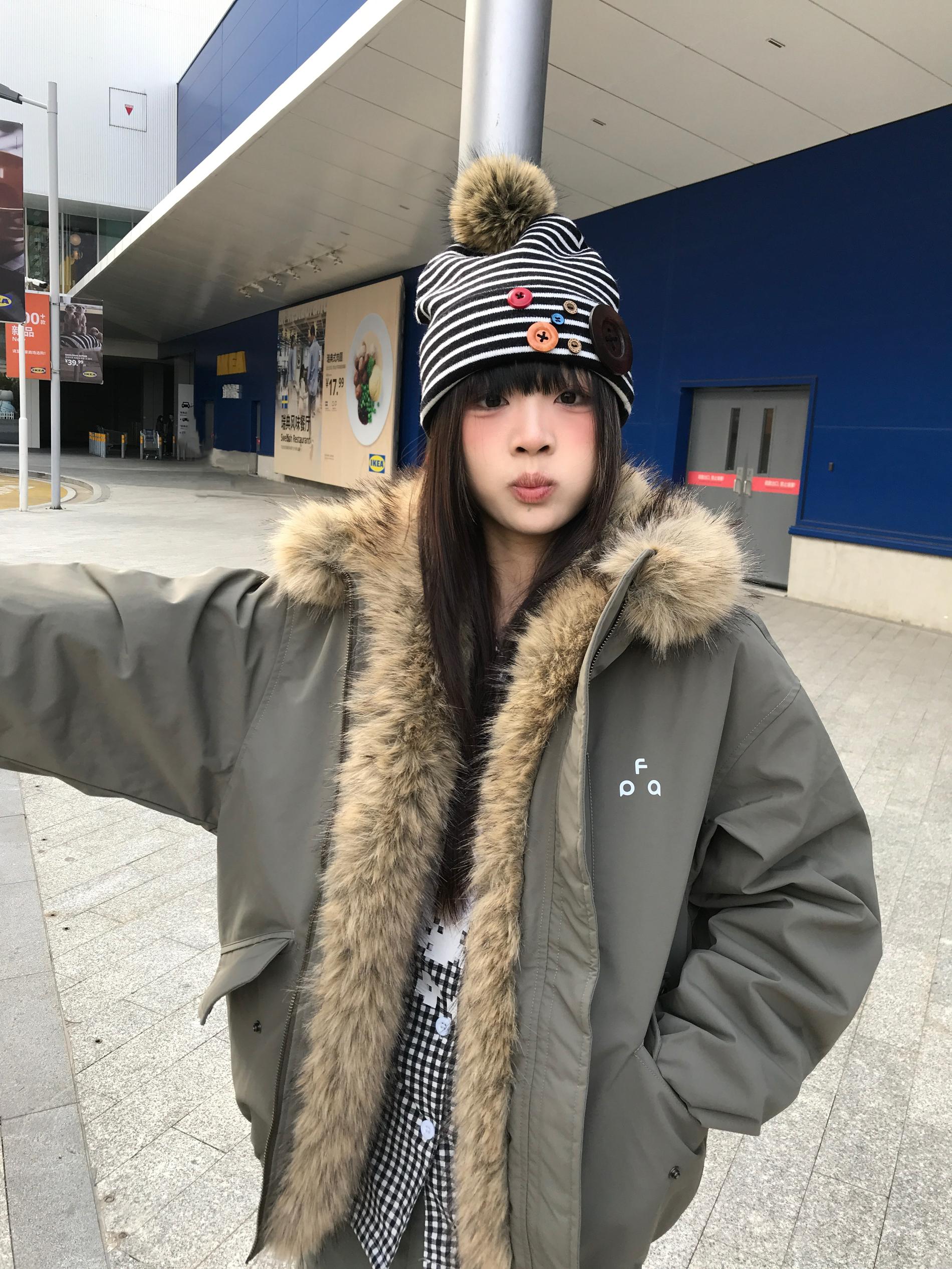 座山雕真的是秋冬必不可少的外套 这件美拉德座山雕一上身氛围感就来了 搭配针织帽➕同色系裤子超简单的潮流感穿搭 而且保暖性特别好,冬天超抗风 内里是羽绒一点也不压人,穿了一天也不累呀 上身毛毛超柔软舒适一点也不扎人! 选座山雕真的首推这件!版型质没得挑