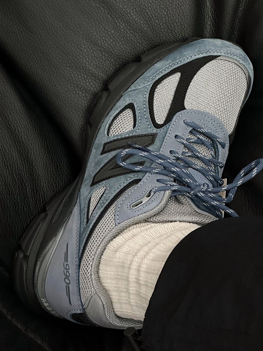 最近挖到宝😚新入的NB990灰蓝配色真的爱!鞋面织物+合成革,质感在线还透气~ 昨天穿它去公园晒太阳☀️,配浅棕针织衫+卡其阔腿裤,朋友说我这身好有秋冬氛围感,还问鞋子链接😏 走了大半天脚都不觉得累,超舒服! 小建议:尺码正常选✅;浅色鞋面易脏,用软毛刷🧼擦;搭休闲/运动装都可💕