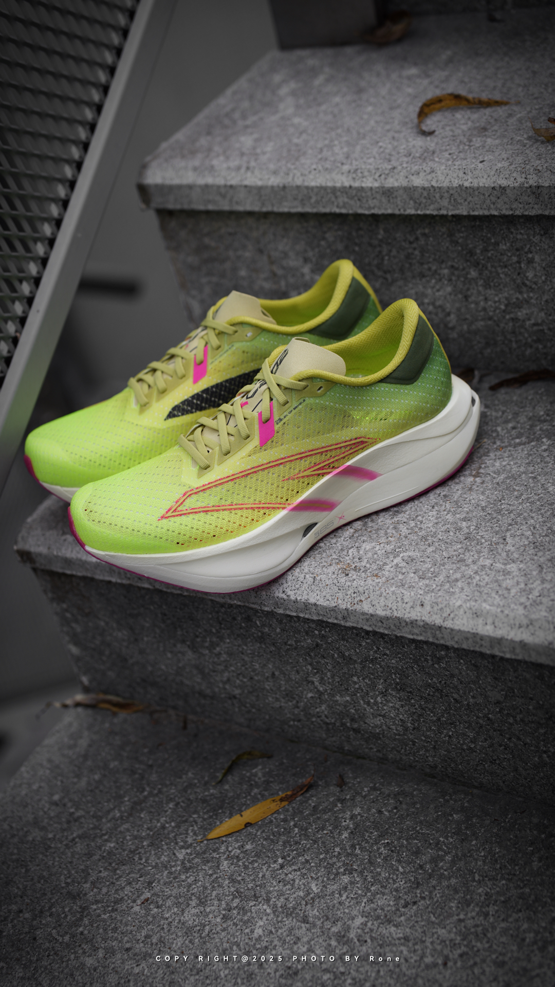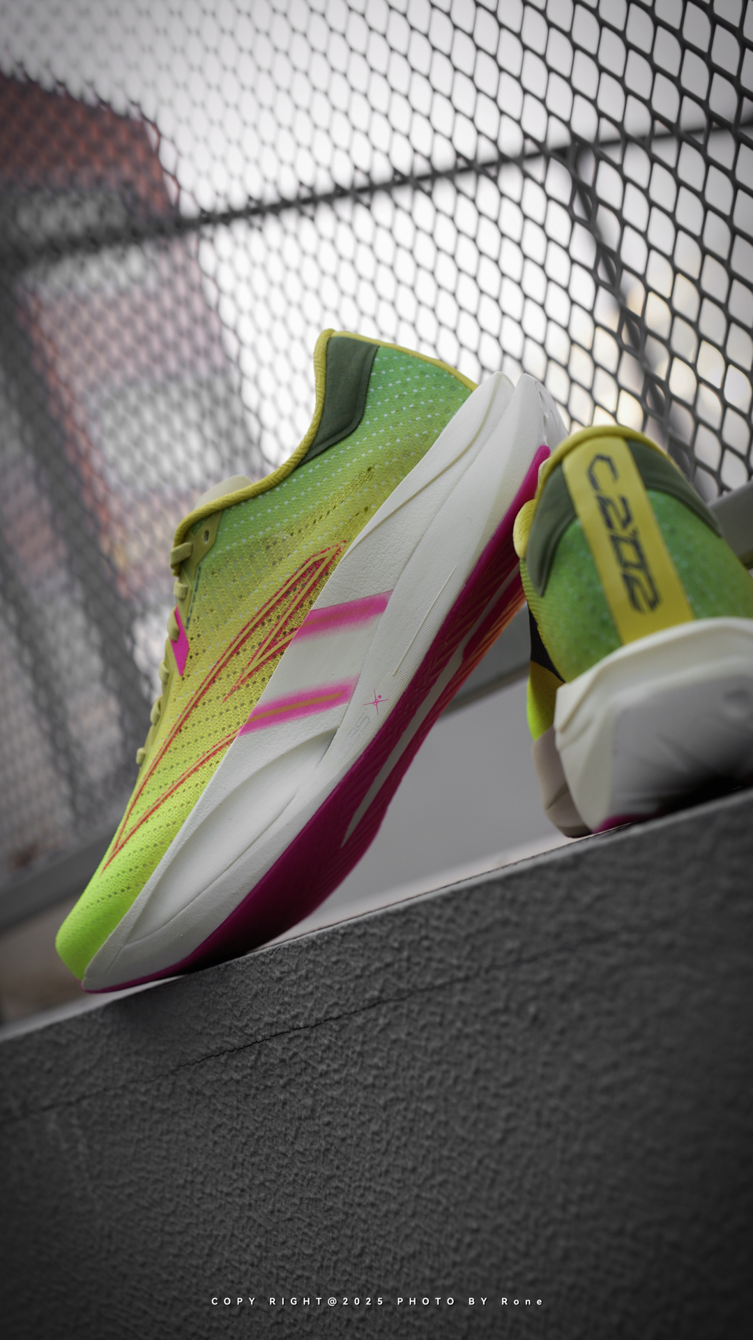 第一眼看到这双C202 7.0,我就被它大胆的配色吸引住了!荧光绿渐变到番石榴黄,再配上甜菜红和激光感Logo,亮眼又不夸张,在操场上一眼就能认出来。 上脚跑了几次后,这双鞋的脚感真的令我满意,双层氮中底软弹适中,推进感明显,跑起来不会拖沓。我第一次见到后跟外露的碳板设计,视觉效果超酷! 鞋面透气性不错,整体做工细节也挺讲究,是一双为真正想跑得更快、更轻松的跑者准备的武器。 #2025年度最顶...