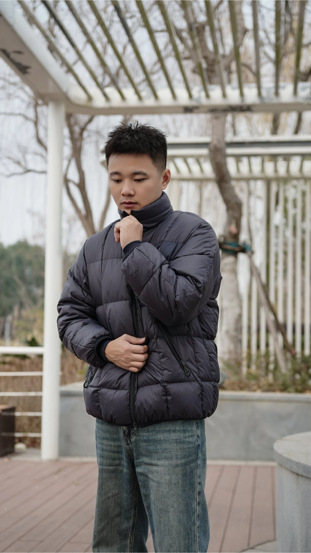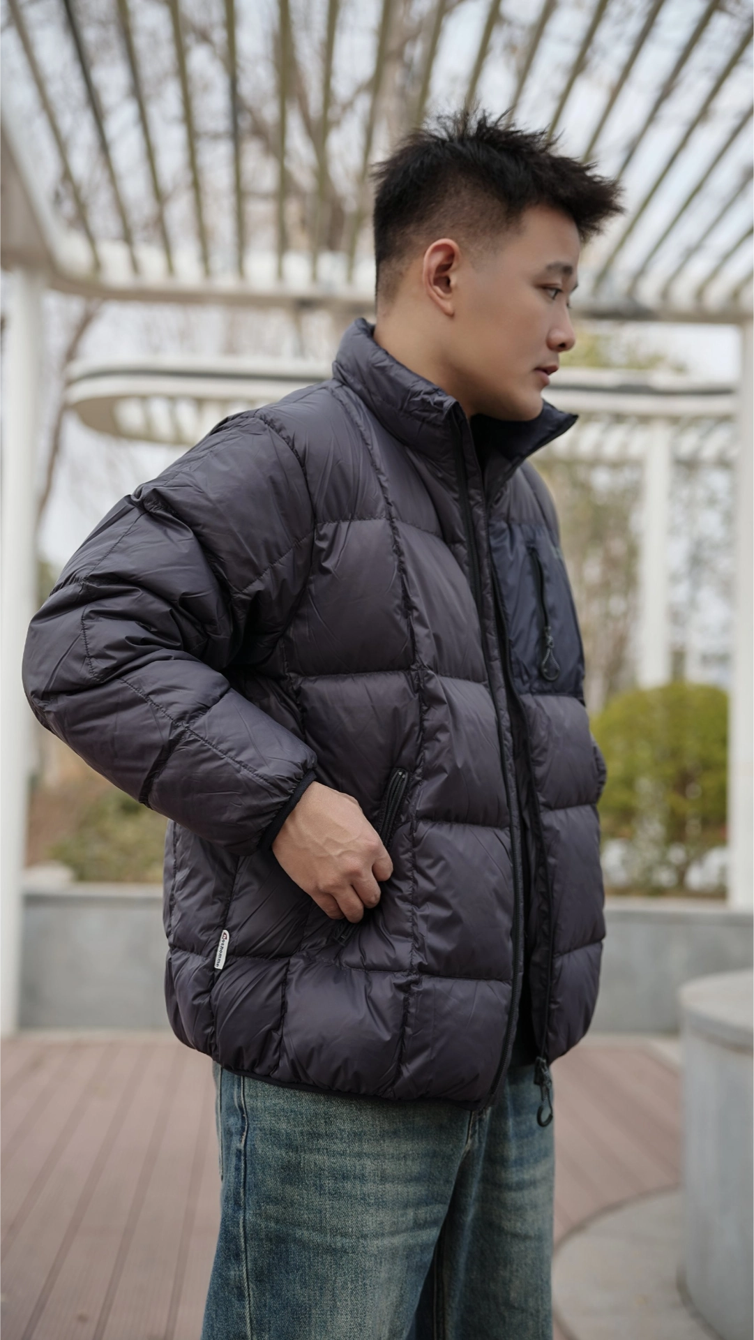 这件#NOTHOMME 立领羽绒服外层锦纶,手感爽滑,轻薄还耐磨,骨感很足。表层带Teflon三防涂层,遇水会形成荷叶凝珠的效果。内层380T尼龙胆布,不用担心跑绒了~ 方形格绗缝搭配微撞色设计,简约吸睛。90% 800蓬白鸭绒填充,立领充绒饱满,保暖防风不压身。罗纹防风袖口还做了包边加固,日常穿实用又省心~上身效果也是很简约百搭的。 #宝藏立领羽绒服 #冬天就要穿简单点 #NOTHOMME户...