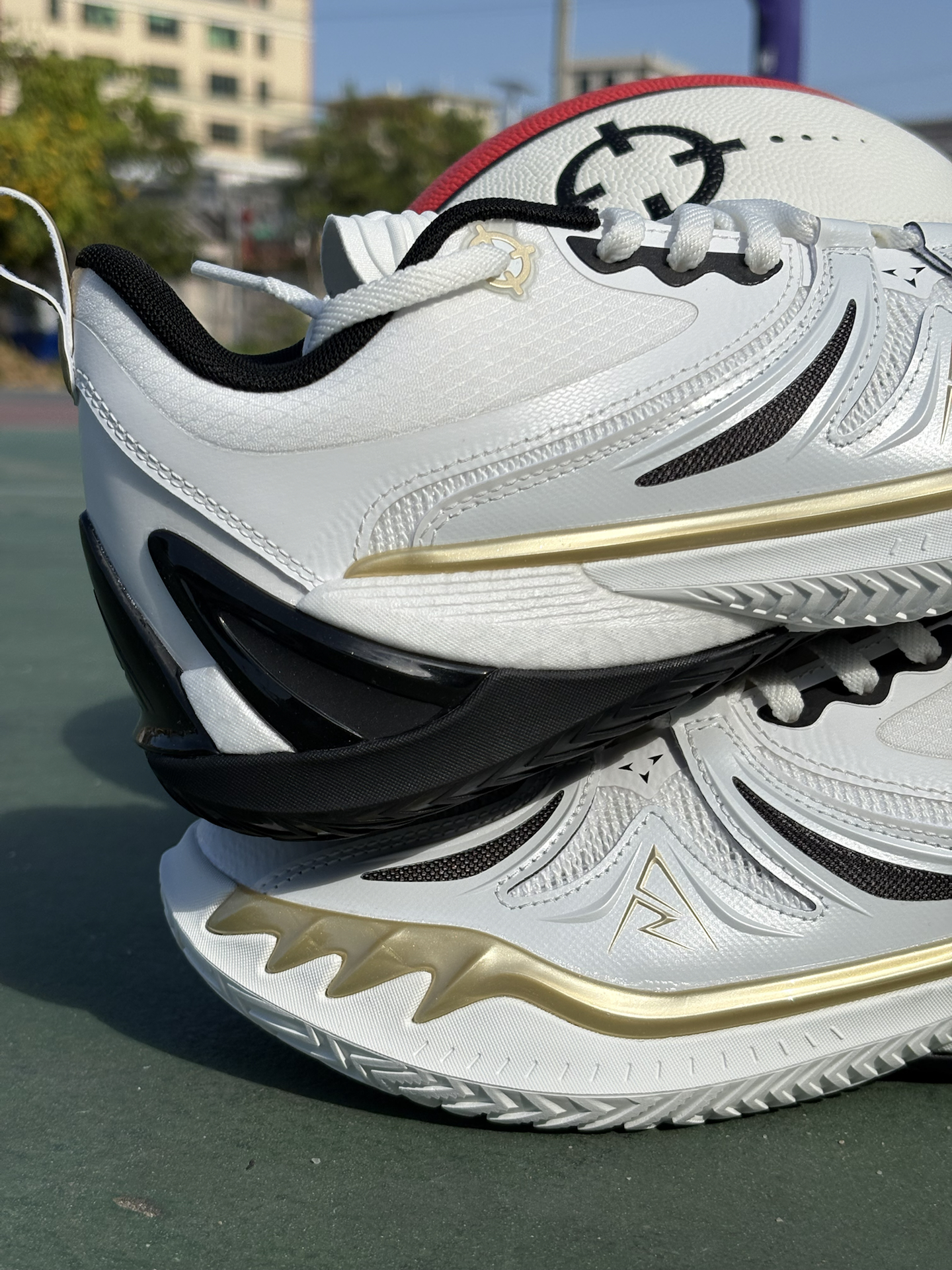 今天给大家分享这款 #准者 RIGORER 里夫斯三代,白色的配色颜值真的超级高! 这双鞋我也上脚实战了很多次了,鞋面的强度做的还是蛮OK的,而且外侧的小李飞刀TPU片,给整双鞋都提供了不错的支持,中底咻科技脚感也是比较好的,对于我在室外场地打的话,它的耐磨性我觉得也是蛮不错😊的,整体的性价比也是比较高的! #2025年度鞋王 #2025年度好东西 #准者里夫斯三代 #要颜值有实力的实战鞋 #准...